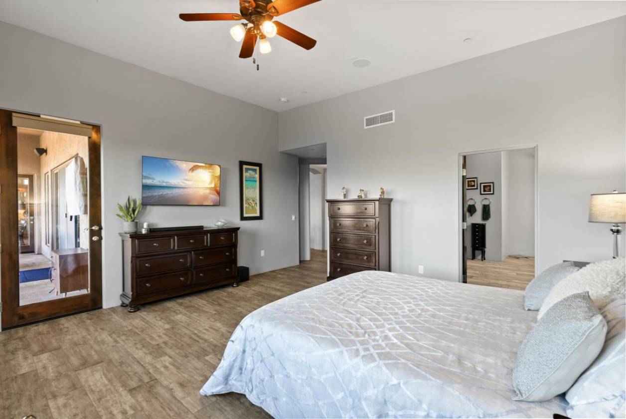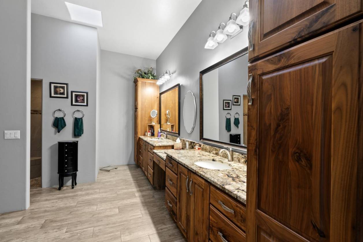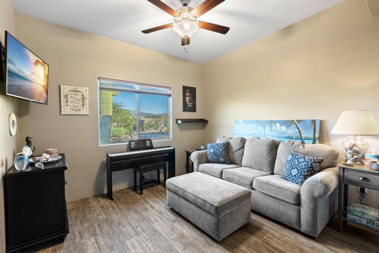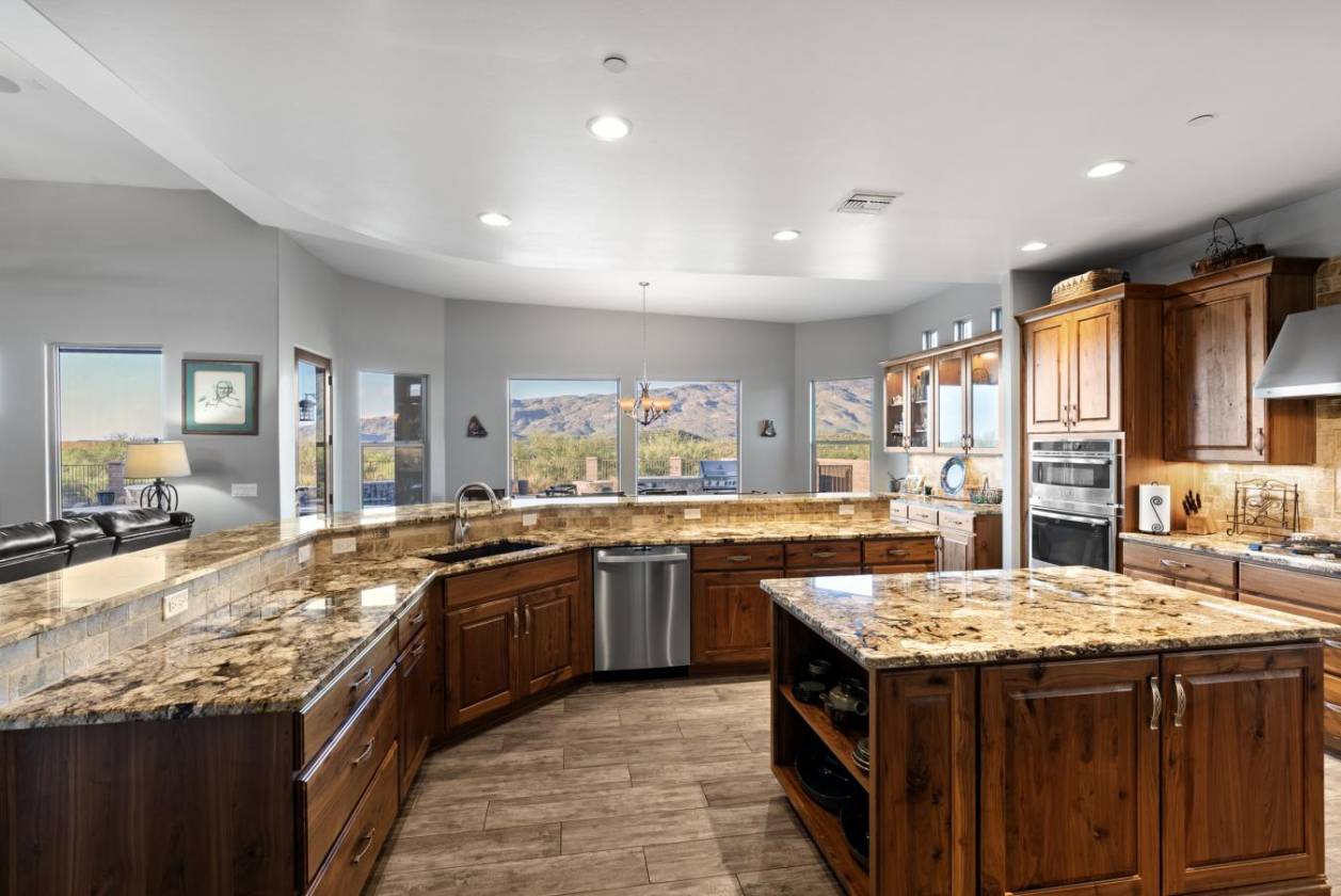 Experience true luxury in this Coyote Creek custom home featuring a heated saltwater pool and spa, travertine patio, and a full outdoor kitchen with dual-fuel BBQs, quartz counters, and fire pit. Inside, enjoy tile and natural stone finishes, granite counters, Monogram appliances, and surround sound in the living room, primary suite, and patio. The home includes a three-car garage with a fully integrated 2,000 sq ft climate-controlled shop and office. Paid solar, 400-amp service, and upgraded systems complete this energy-efficient desert retreat. *Inquire for full list of features.* Welcome to 15070 E Triangle Z Ranch Place, a showcase of luxury, efficiency, and craftsmanship in the gated community of Coyote Creek in Vail, Arizona. This 2019-built custom home offers approximately 2,691 square feet of living space on a 1.67-acre lot, blending natural beauty with modern design. It stands among the finest properties in Southern Arizona, designed for those who value both elegance and purpose. The home welcomes you with a grand double-door entry and open-concept layout that connects indoor and outdoor living. Tile floors accented with natural stone finishes flow throughout the main areas, while expansive windows frame sweeping desert and mountain views. The great room features a gas fireplace and a built-in surround sound system that extends to the primary suite and covered patio, creating a seamless entertainment experience throughout. The kitchen is the heart of the home and a true chef's space. Solid wood cabinetry, granite countertops, and professional-grade Monogram appliances make this space both functional and beautiful. The 16-foot breakfast bar with soft-close drawers, spice racks, and pull-out storage adds convenience, while the large refrigerator remains with the home. The open layout connects to the dining area and patio for effortless entertaining. The primary suite offers resort-level comfort with remote-controlled shades, integrated audio, and a serene view of the pool and backyard. The en suite bath features dual vanities, a seated makeup area, a linen closet, and a custom snail-style walk-in shower designed with natural stone. Every element speaks to the home's focus on quality materials and thoughtful design. Additional bedrooms include a full guest room with a tile-surround bath and a private guest suite with a half bath. A separate den with French doors provides flexible use as a home office, media room, or library. The outdoor spaces are designed for both relaxation and entertainment. The heated saltwater pool and spa, completed in 2025, are surrounded by travertine decking, while the covered patio includes fans, an outdoor TV, and a complete sound system. The outdoor kitchen features both gas and Santa Maria-style wood BBQs, a built-in oven, quartz countertops, and abundant storage. A custom gas fire pit, fruit orchard, and mature desert landscaping complete the experience. The lot is partially fenced and designed to manage water flow efficiently, combining privacy with function. A defining feature of this home is the integrated three-car garage and 2,000-square-foot climate-controlled shop built within the home's structure. This exceptional space includes 200-amp service, multiple 220V outlets, extensive lighting, air systems, and four mini-split units. A private office with its own bathroom, ceiling fan, and TV wiring makes it ideal for home-based business, hobby work, or RV storage. The shop's oversized roll-up access and automatic locking system make it as secure as it is functional. The property's systems are designed for performance and peace of mind. Paid solar with 46 panels dramatically reduces utility costs. A 400-amp electrical panel supports high-demand equipment and appliances. The home features two HVAC systems, two furnaces, a new water heater installed in 2025, a water softener, and a completely upgraded septic system with dual leach lines and a new pump system valued at $20,000. The roof was professionally sealed and the exterior received a three-coat paint finish in 2024, ensuring the home is move-in ready for years to come. Located within the award-winning Vail School District, Coyote Creek is known for its wide-open desert views, equestrian amenities, and miles of scenic trails. The community's gated entry provides privacy and security, while its proximity to Tucson offers convenience without compromise. This property combines the independence of desert ranch living with the refinement of modern luxury. Whether you are an outdoor enthusiast, collector, or entrepreneur, this home offers something rare: beauty, function, and self-sufficiency all in one. It is powered by solar energy, built for longevity, and designed for living fully in the Arizona desert. 15070 E Triangle Z Ranch Place is more than a residence. It is a statement of craftsmanship, comfort, and intelligent design. Every finish, system, and feature has been selected for quality and performance.