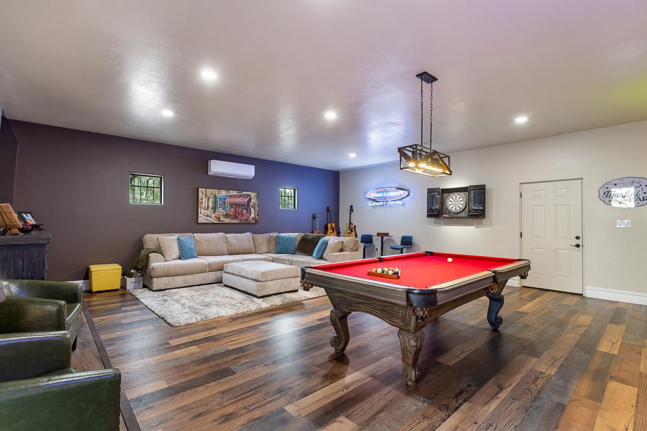 - Family room with stone fireplace