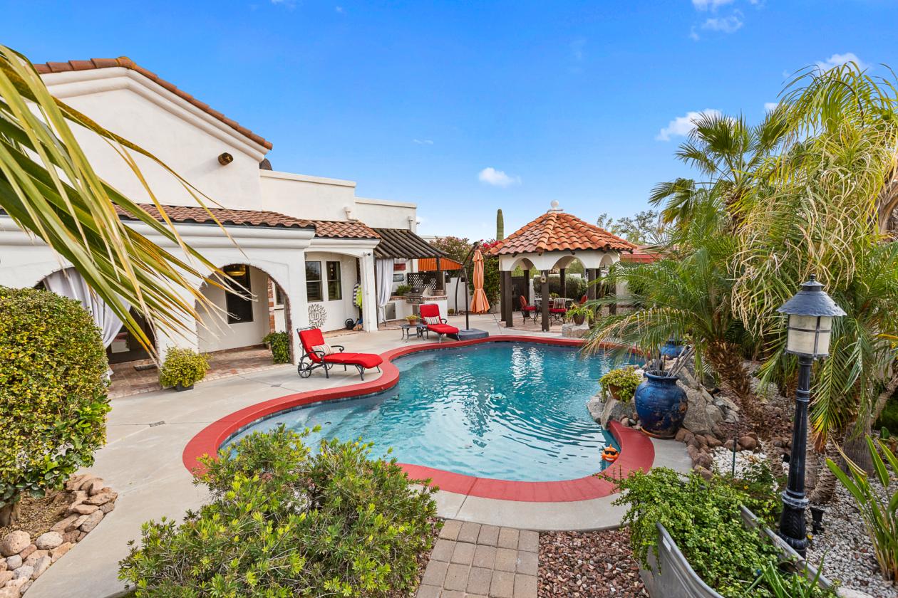 - Outdoor kitchen and resort‑style backyard setup