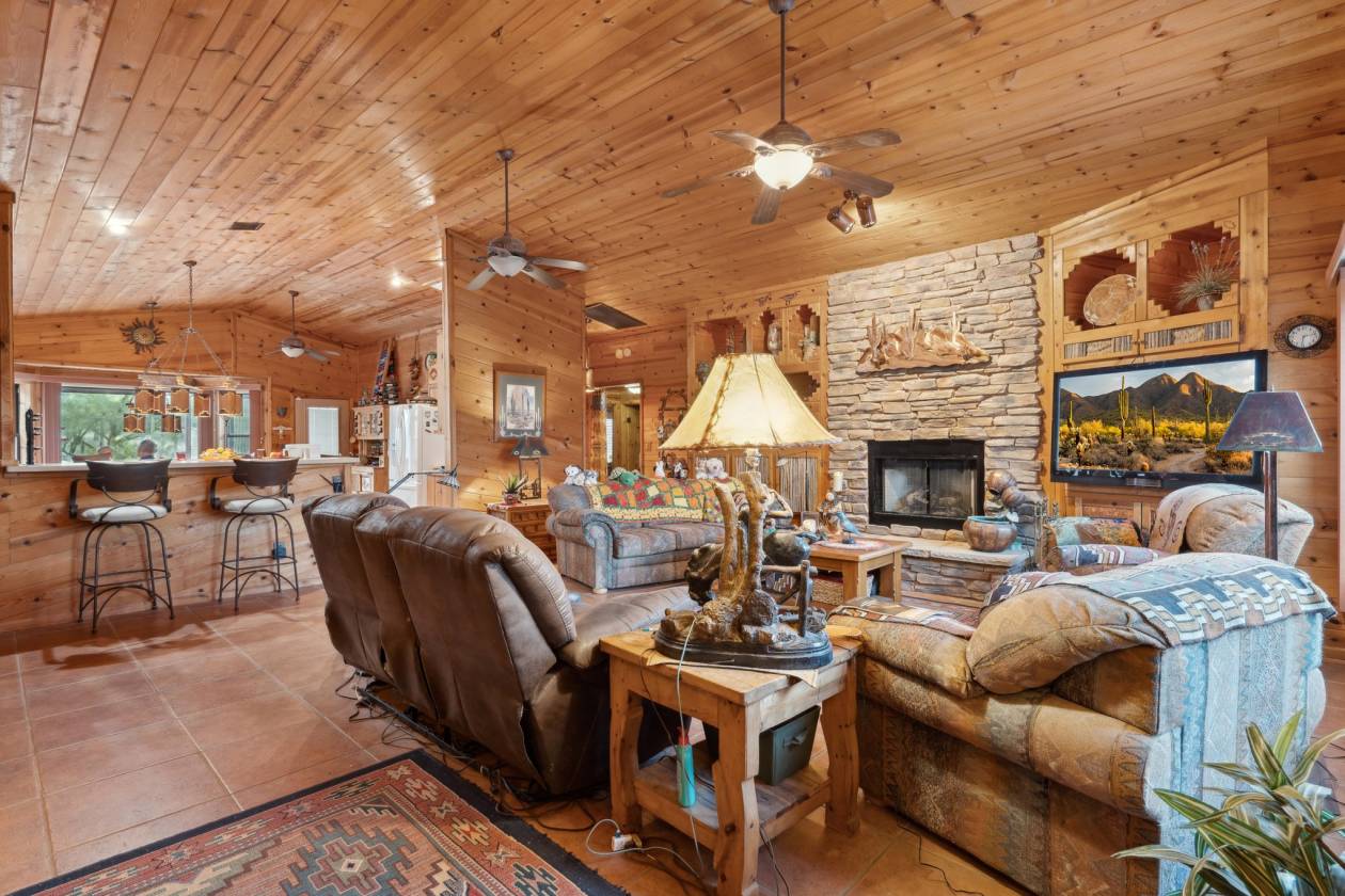 This 2800 sqft custom home is nestled in remote mountains of Hidden Valley on +/- 10 acres. Interior features include Knotty Pine and tile throughout entire home, beautiful kitchen with Corian countertops, dining nook, gas cook top and incredible views! 4 bedrooms and 2 full baths. Owned Solar!! Two car garage with large shop. Amazing back patio to enjoy all those pretty AZ sunsets! Mature landscaping surrounding home! Do not miss your chance to see this incredible property today!!
