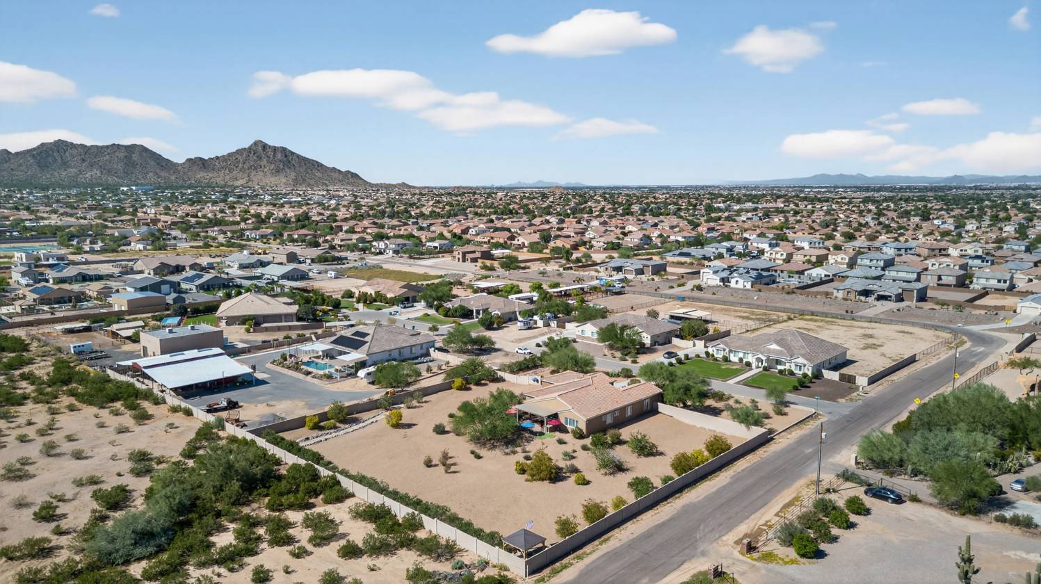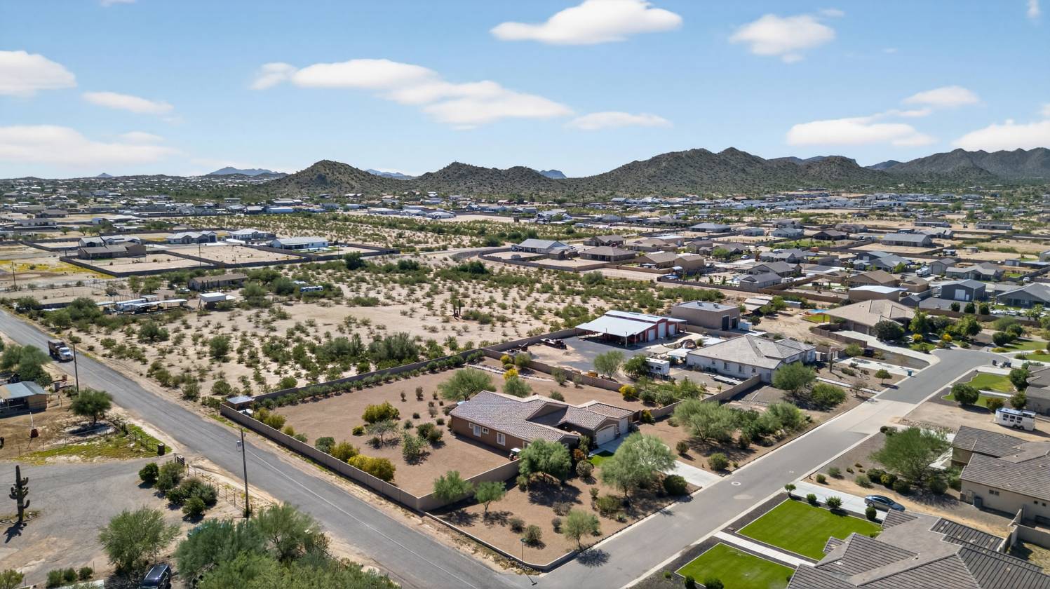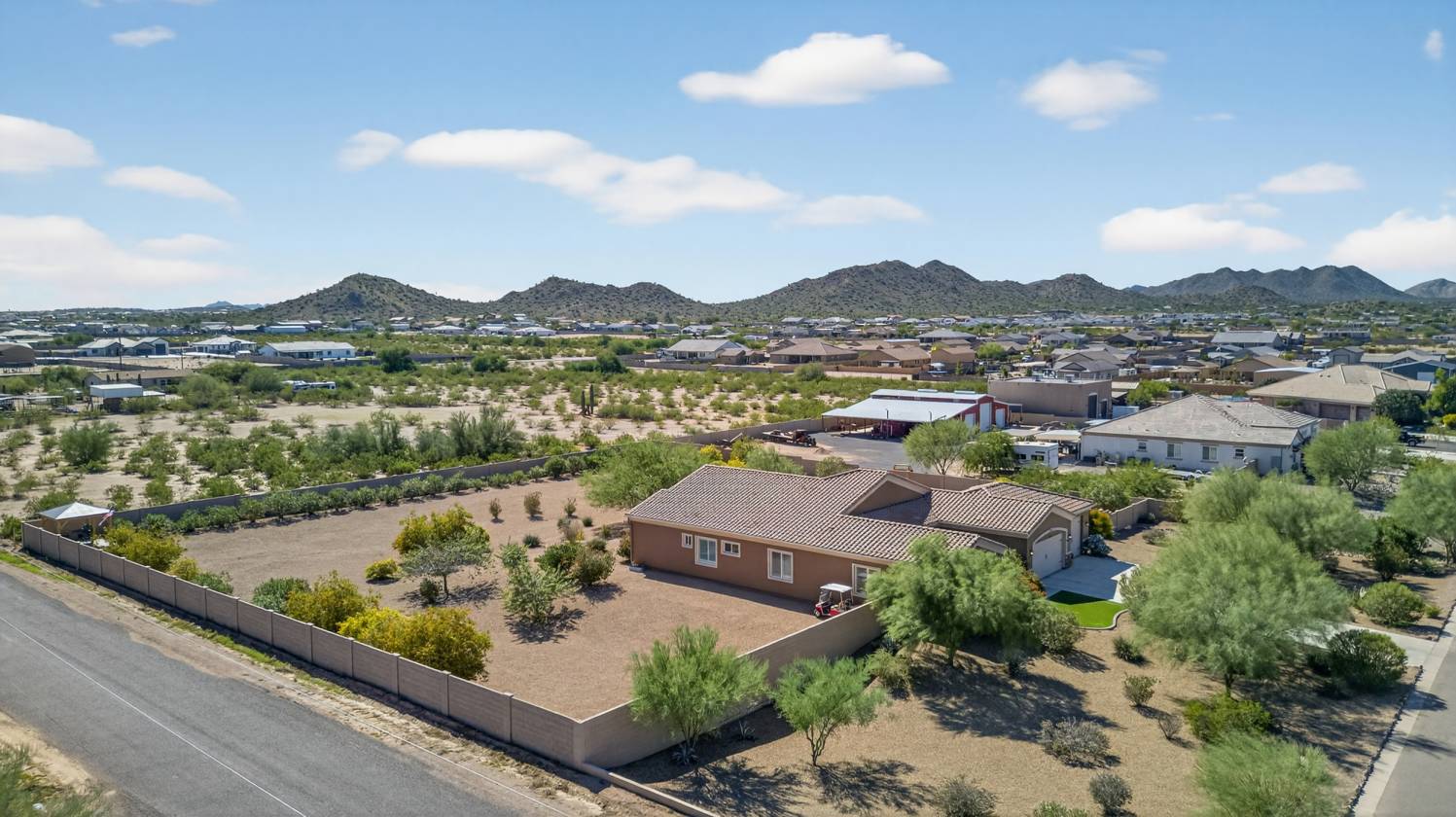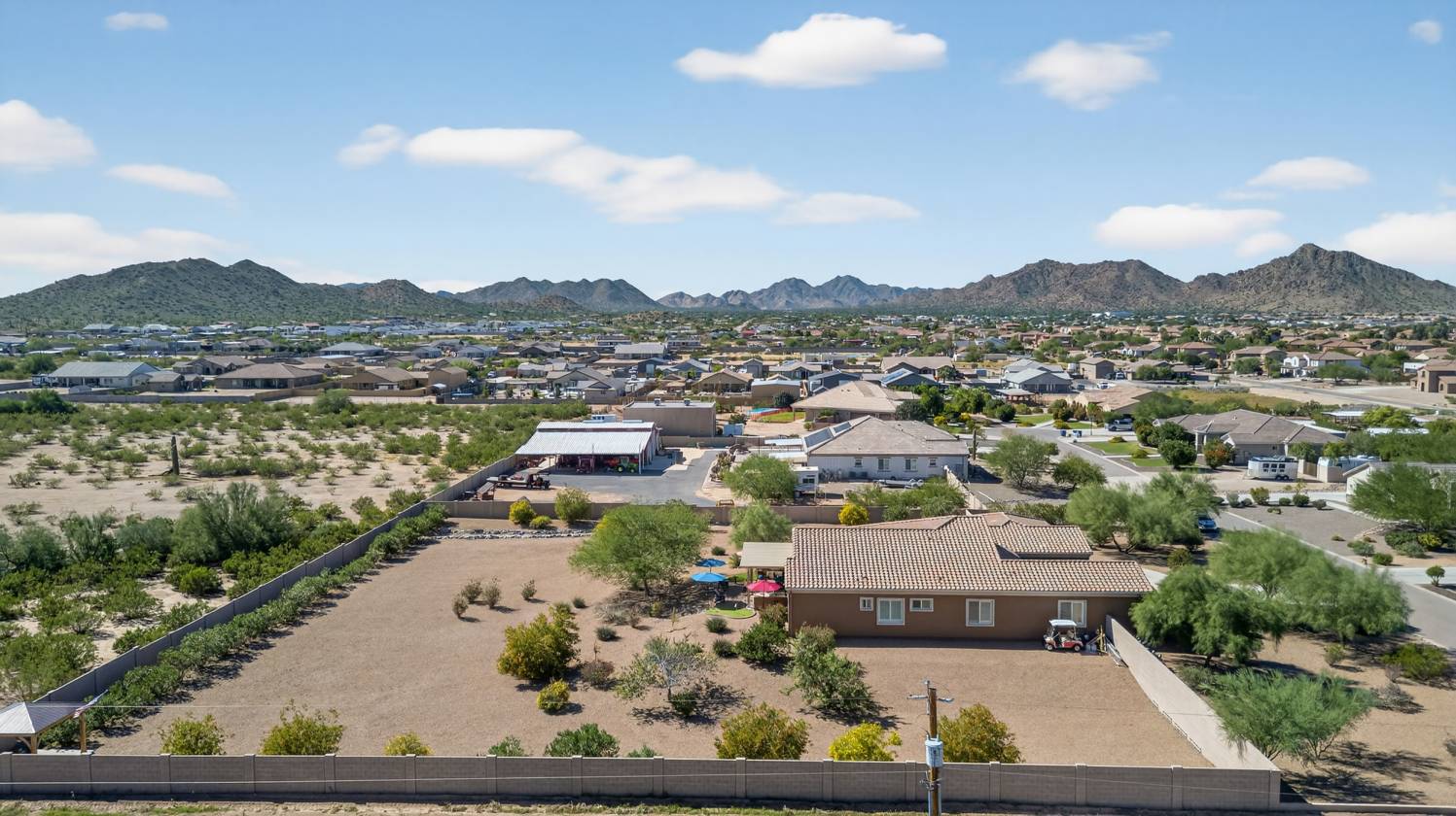 Breathtaking views of San Tan and Superstition Mountains surround this meticulously maintained, one owner, highly upgraded custom home. Restaurants and shops only minutes away. Sitting on 1.36 spacious acres, NO HOA and connected to water and sewer. NO SEPTIC! Enter inviting courtyard to an open and bright floor plan. Gourmet kitchen features granite counters, new ovens and oversized breakfast bar. Luxury travertine floors flow throughout. Sprawling back acreage, designed for entertaining and relaxation, under dark skies with mountain views. Paver patio has covered pergola, with built in BBQ island. Side RV gates open to low maintenance, private and secure acreage, drip irrigation, gazebo and gutters. This open space provides freedom to create your dream, whether horse property, auto workshop, or other creative business endeavors. Minutes away from San Tan Mtn. Regional Park. Bring all your toys!