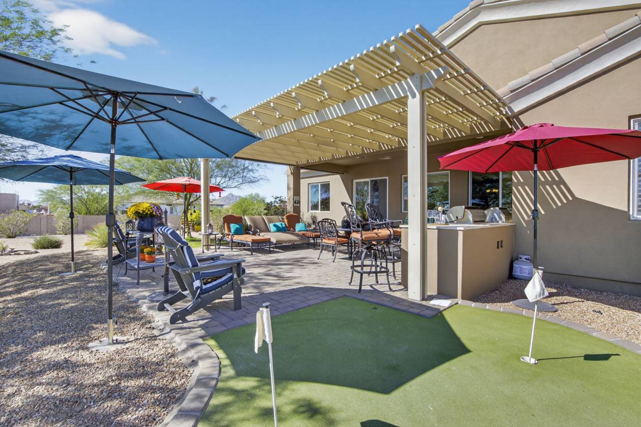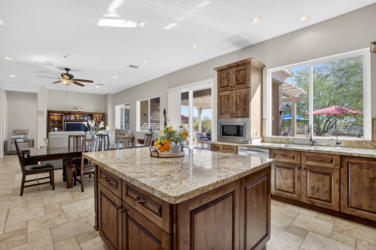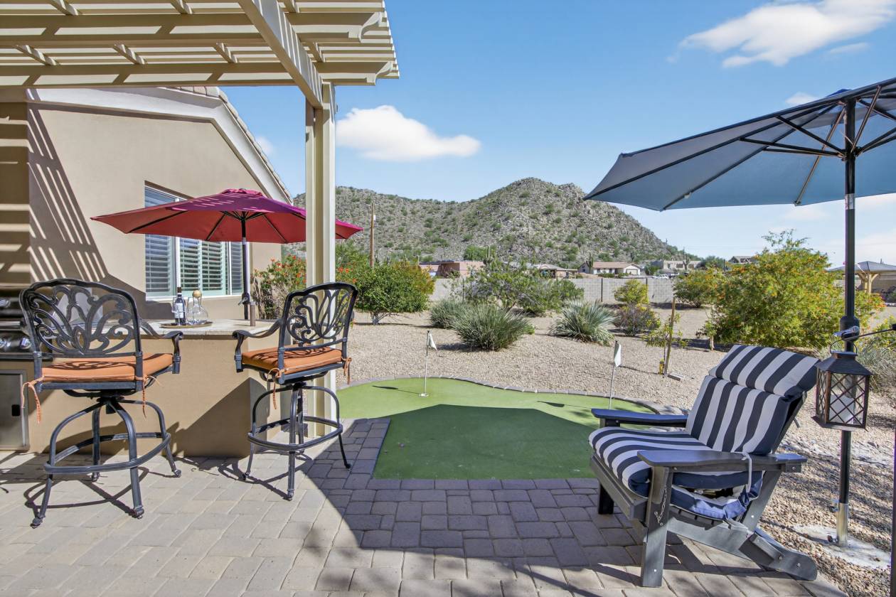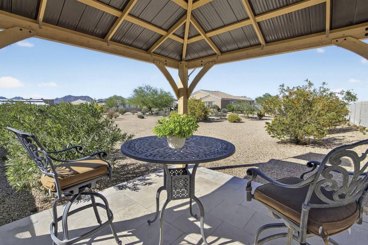 Breathtaking views of San Tan and Superstition Mountains surround this meticulously maintained, one owner, highly upgraded custom home. Restaurants and shops only minutes away. Sitting on 1.36 spacious acres, NO HOA and connected to water and sewer. NO SEPTIC! Enter inviting courtyard to an open and bright floor plan. Gourmet kitchen features granite counters, new ovens and oversized breakfast bar. Luxury travertine floors flow throughout. Sprawling back acreage, designed for entertaining and relaxation, under dark skies with mountain views. Paver patio has covered pergola, with built in BBQ island. Side RV gates open to low maintenance, private and secure acreage, drip irrigation, gazebo and gutters. This open space provides freedom to create your dream, whether horse property, auto workshop, or other creative business endeavors. Minutes away from San Tan Mtn. Regional Park. Bring all your toys!
