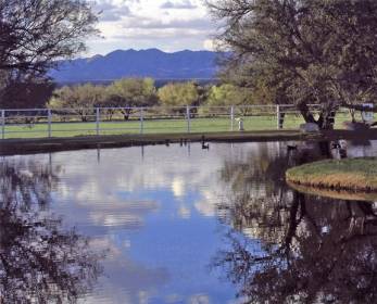 The 3,787 acre Montosa Canyon Ranch is the premier Gentleman's Ranch in Arizona. It is located 30 minutes south of Tucson in Santa Cruz County spreading out across 627 deeded acres of lush irrigated pastures and rich native grasslands. There are also 3,160 acres of State leased land adjacent to the deeded acreage creating a ranch that is second to none. The ranch is set amid the sweeping landscapes of southern Arizona between Green Valley and Tubac at an ideal 3,100-foot elevation where the days are warm and sunny and the nights cool and clear. With the towering Santa Rita and Tumacacori Mountains as its backdrop, the ranch has been developed to the very highest standards of quality artisan craftsmanship as an exceptional equestrian estate. The main house, guest house and show-barn are all of magnificent Spanish Colonial design. There are also a total of 3 barns, a large arena and a multi-purpose shop building. All of the farm and ranch equipment convey making this one-of-a-kind trophy ranch a legitimate turn-key operation. The water rights are excellent including Irrigation Grandfathered Water Rights that provide flood irrigation for the verdant pastures. There are 2 Irrigation wells that produce 1,500 GPM and 1,000 GPM respectively. There are also 3 other exempt wells that provide water for the residences and the livestock. With all if its majestic beauty, views, location and amenities, Montosa Canyon Ranch is truly the crown jewel of the Santa Cruz River Valley and Arizona. Montosa Canyon Ranch's location, views, and amenities make it an ideal Gentleman's Ranch, family retreat or corporate/church retreat. The property is in close proximity to major transportation and retail shopping. The property is located less than one mile from I-19, the major highway from Tucson to Nogales and less than 15 miles from Green Valley with excellent shopping, restaurants and golfing. It is also only 5 minutes from the famous resort town of Tubac known for the many art galleries and the Tubac Golf Resort and Spa. http://montosacanyonranch.com 627 Acres Deeded 47 Irrigated 3160 State of Arizona - Lease TOTAL 3,787 ACRES Wells: Irrigated North Well 1000 GPM South Well 1500 GPM Domestic Three (3) Windmills Two (2) Fencing: Boundary fencing on fee ground. Approx. 8000' Lineal feet of fencing - 7'4" steel post in 2' of cement, that have 2-3/8" O.D. Sch. 40 notched in place and welded with cap on main post, primed and painted white around main house, barn, horse pasture and hay barn. Domestic Water: Serviced by ranch well. Electric: Unisource Energy (underground electric by Unisource on the subject property). Pastures: Tall Fescue and Bermuda. Excellent for horses & cattle. The pastures are laser leveled and irrigated with 12" underground PVC that have 12" watermen irrigation valves for each set. Desert Ground: Small Mesquites have been removed and the ground as been re-seeded with six native grasses along with Lymons Love Grass. Improvements: Main House: Approx. 3595 sf. | Spanish Colonial, | 3 bedrooms | 3-1/2 baths | Mission tile roof w/ white stucco | Spanish tile floor | Beam ceilings | Tile counter tops | 3 Car Garage 2nd House: 1,232 sf. | 2 Bedrooms 2 Baths | 2 Car Garage | Mission tile roof | Spanish tile floor | Tile counter tops | Show Barn: 4 stall show barn - (2 stalls - 12' x 16' & 2 stalls - 12' x 12') | Lights and Fans in each stall | Connecting pasture w/covered full loafing shed | All masonry construction | Beams and Tongue & Groove wood | Mission tile roof | 8" x 16" Spanish pavers | 12' x 12' wash rack with hot & cold running water | Feed room | Tack Room - Guest room with bathroom Hay Barn: 30' x 60' with 16' covered overhangs on both sides. | 7 pens for horses and a covered, lighted squeeze chute. | Barn is constructed with 10' well casings | Pipe that is integrately connected steel beam roofing structure. | Red metal roof Barn: 30' x 16' Built with 10' well casing pipe | Steel Barn Roofing structure | Steel Roof CONTACT MARTY RYAN 520.429.0746 marty@martylryan.com Visit www.montosacanyonranch.com for full details. Please see the video on page 5 of the pdf brochure. Montosa Canyon Ranch All Rights Reserved