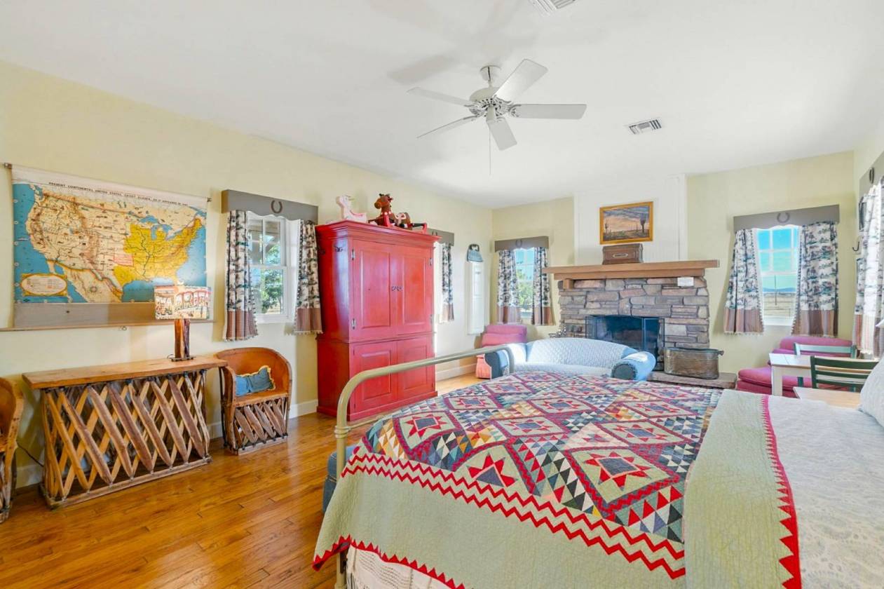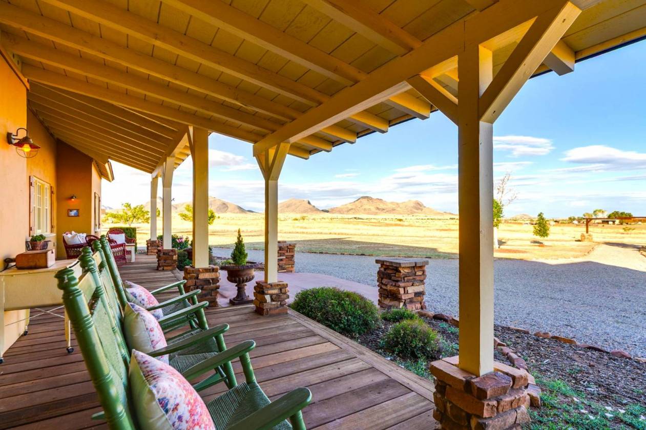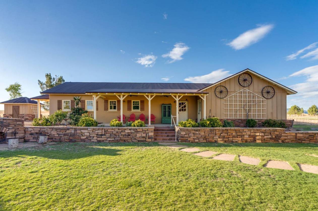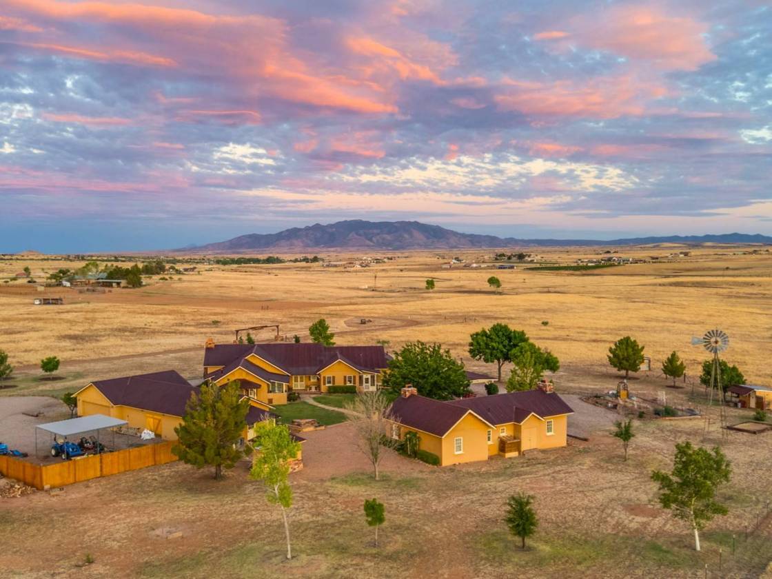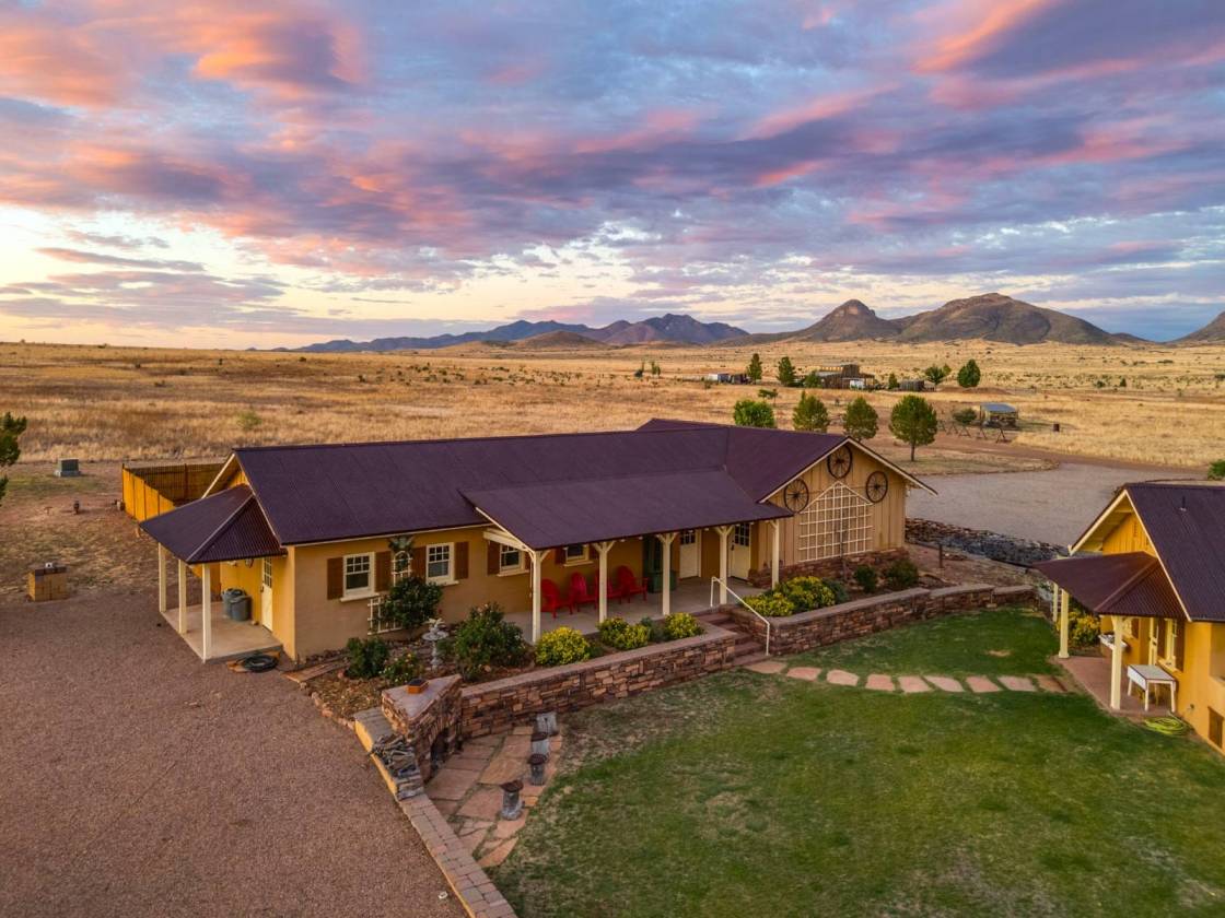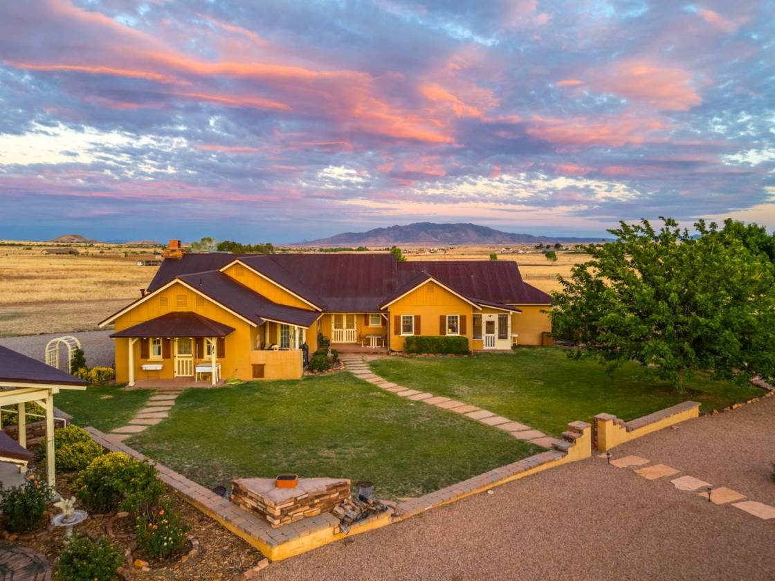 - Blue Skies and Mountains at the LUCKY S RANCH! Beautiful Craftsmanship Home, Bunk House, Workshop, 2 car Garage on 10 AC Bordering AZ State Land. 360* Mountain Views and end of the road privacy on wonderful Blue Sky Lane in Elgin, Arizona. Stunning Four Masonry fireplaces crafted by local master stonemason and distinctive wood ceiling and rustic beamed trusses are some features that transform this home into your personal oasis under the Arizona Blue Sky. The main home is 3200 sq ft with 4 covered porches and a sleeping screened porch to enjoy the cool summer nights. The home features a well-designed layout that includes a comfortable family room with an authentic Rumford fireplace, oak flooring, a formal dining area, a master suite, a guest suite, and a powder room. Farm style kitchen and breakfast nook, propane cooktop cook station, farm sink, large walk-in pantry, a craft room or office and large laundry room off kitchen, leading you right out to the back yard where you can enjoy the wonderful outdoor patios, porches, ramada and outdoor fireplace, perfect for family or formal gatherings. The Bunkhouse is 1100 sq ft of charm, and each bedroom has its own personal beautiful stone fireplace and bathroom. Enjoy the quiet covered porch and view. Bunkhouse has been used as a special space for guests and charming Airbnb. The workshop is 1200 sq ft with bathroom, laundry set up plus an attached 2 Car garage. The structures are built to last with 12" thick masonry block exterior walls grouted solid and Corten metal roofing.