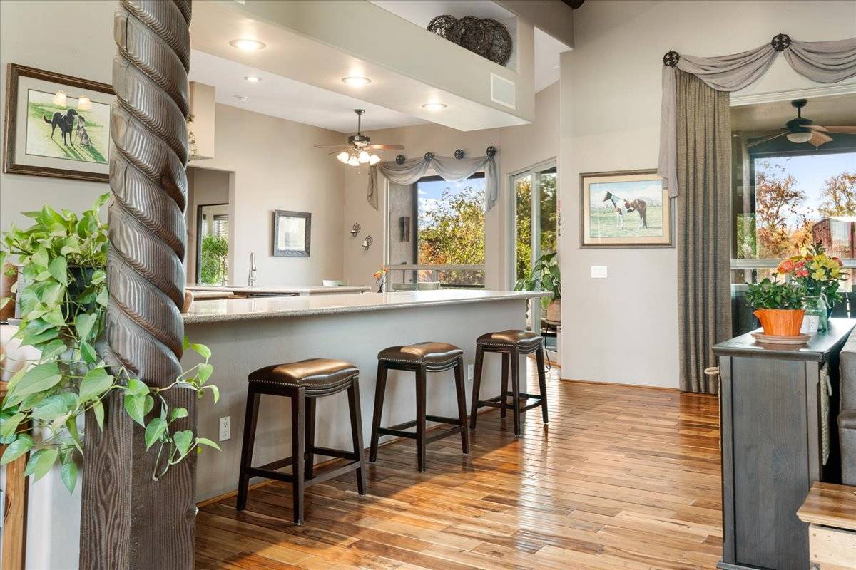 Discover refined country living on this breathtakingly beautiful 16.21 acre riverfront property complete with a exceptional equestrian amenities and two beautiful homes. Main residence has 4 bedrooms and 3 bathrooms with a well appointed kitchen and wet bar, a lovely screened in patio, as well as a 3 car garage. Guest house features 2 bedrooms and 1 bathroom including a laundry room. The equestrian facilities include a 6 stall barn with a bathroom and laundry facilities , hay storage 20 X 66 X 18 tall, premier riding arena, irrigated pastures, and complete perimeter fencing. Raised garden beds, dozens of fruit and nut trees, and a 25 hen chicken coop. This property combines 3 parcels. APN 404-01-052s=8.45 acres, APN 404-01-052l=3 acres, APN 404-01-142d=4.76 acres.
