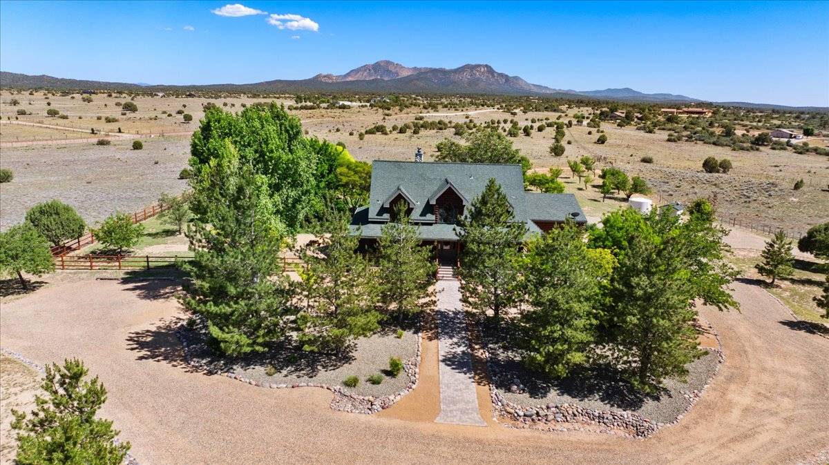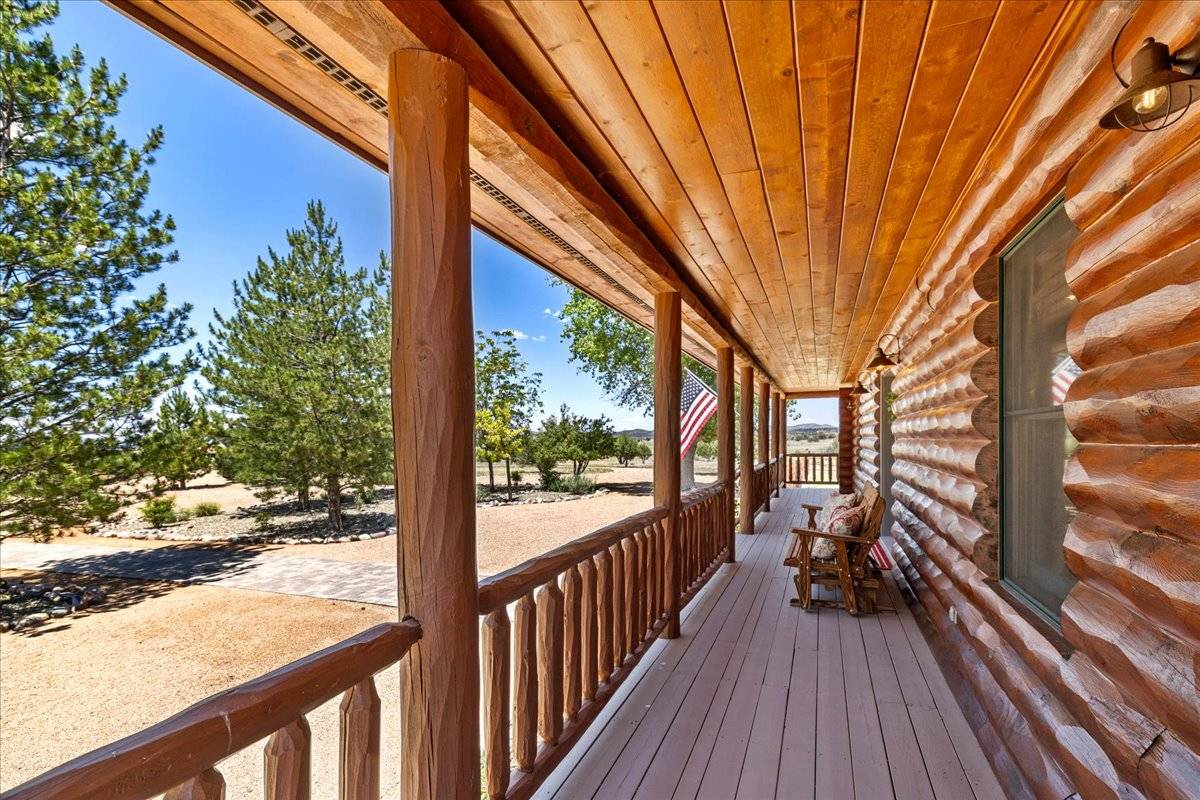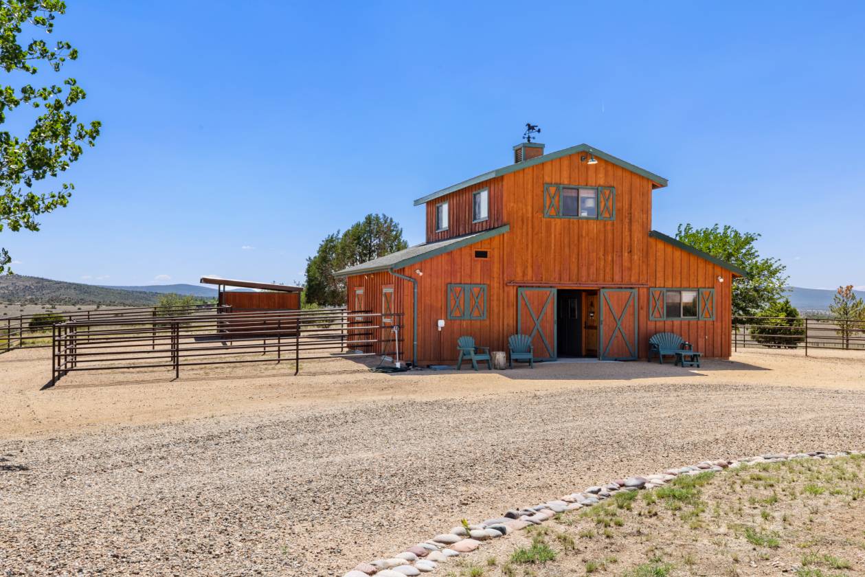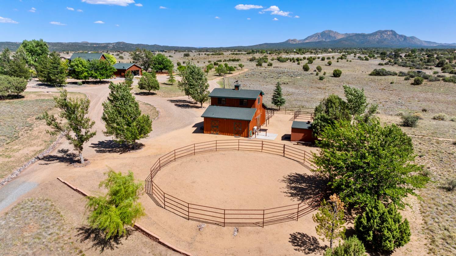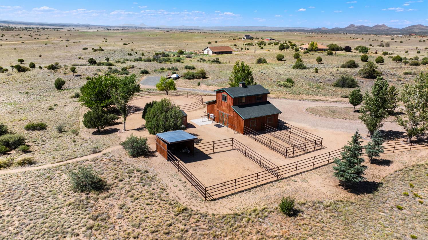 Set on over 36 acres in one of Arizona’s best water areas, this custom log estate captures sweeping 360° mountain views and the essence of high-desert living. For the equestrian enthusiast, the property features a 3-stall barn, round pen, tack room, wash racks, automatic waterers, mare motel, and an 864 SF guest bunk-house. Direct trail access opens to thousands of acres of Prescott National Forest, offering endless riding adventures. The residence showcases rare double split-log construction with traditional saddle-notch joinery—an artful blend of strength and rustic elegance. Designed for effortless comfort, the live on one level floor plan includes a second floor guest suite and an additional bedroom. Inside, dramatic vaulted ceilings, a striking river rock fireplace, and a gourmet kitchen with Viking and Sub-Zero appliances create an atmosphere of understated sophistication. The primary suite offers a serene escape with every comfort considered. Abundant water, a robust well, 5,000-gallon storage tank, zoned HVAC, and fruit-bearing apple, peach, and pear trees complete this self-sustaining sanctuary. An adjoining 36 acres is also available, presenting a rare opportunity to create a 72+ acre private estate—an unparalleled fusion of beauty, privacy, and true high-desert luxury.