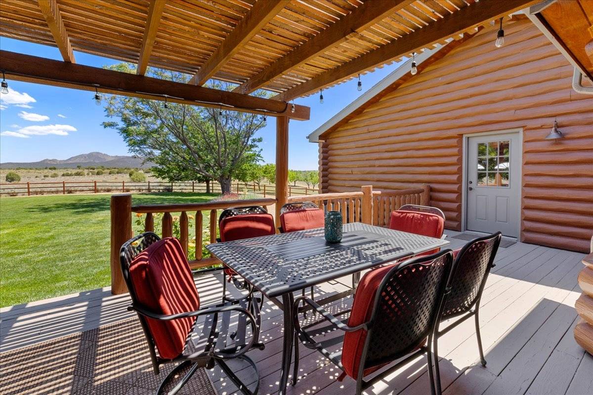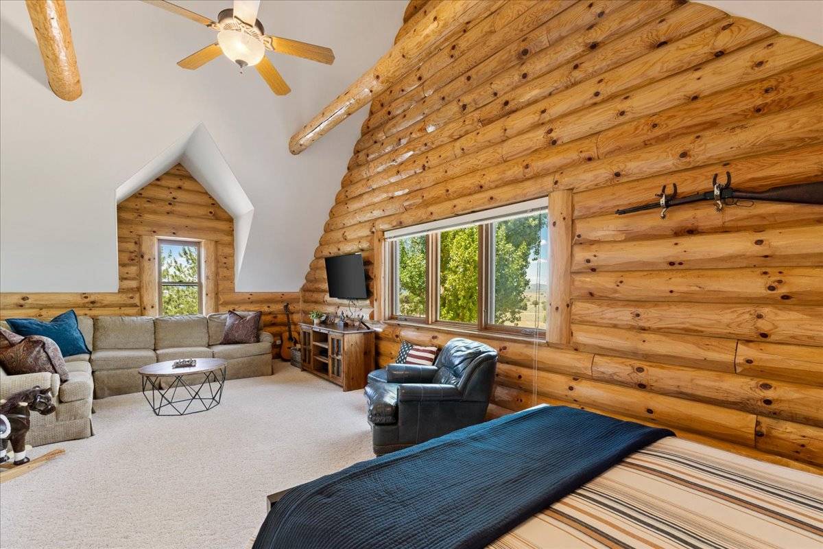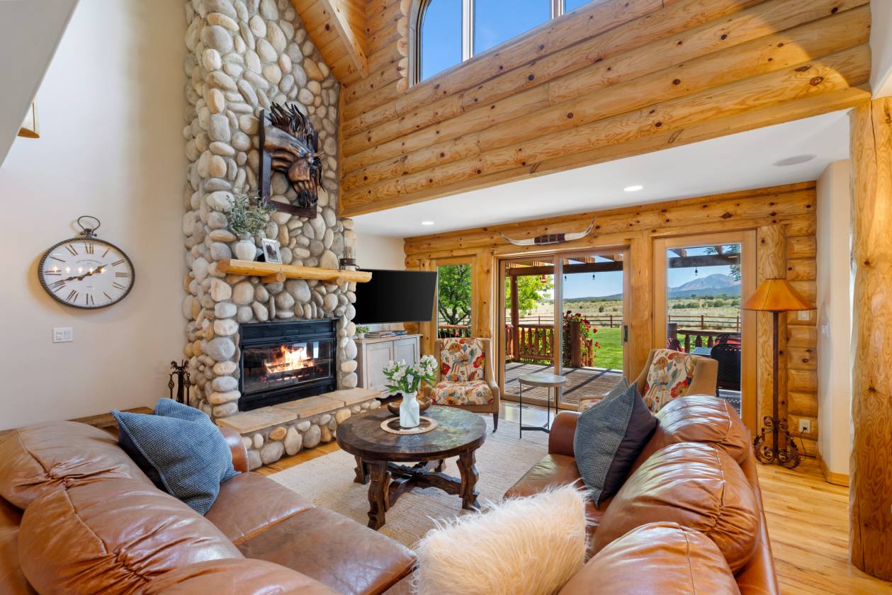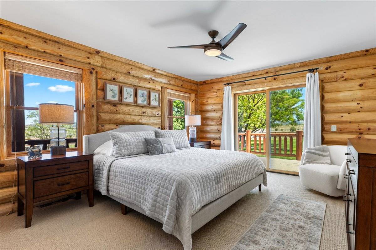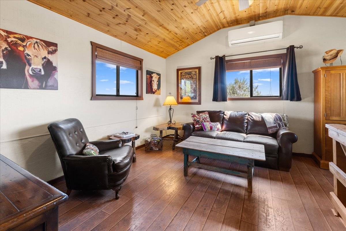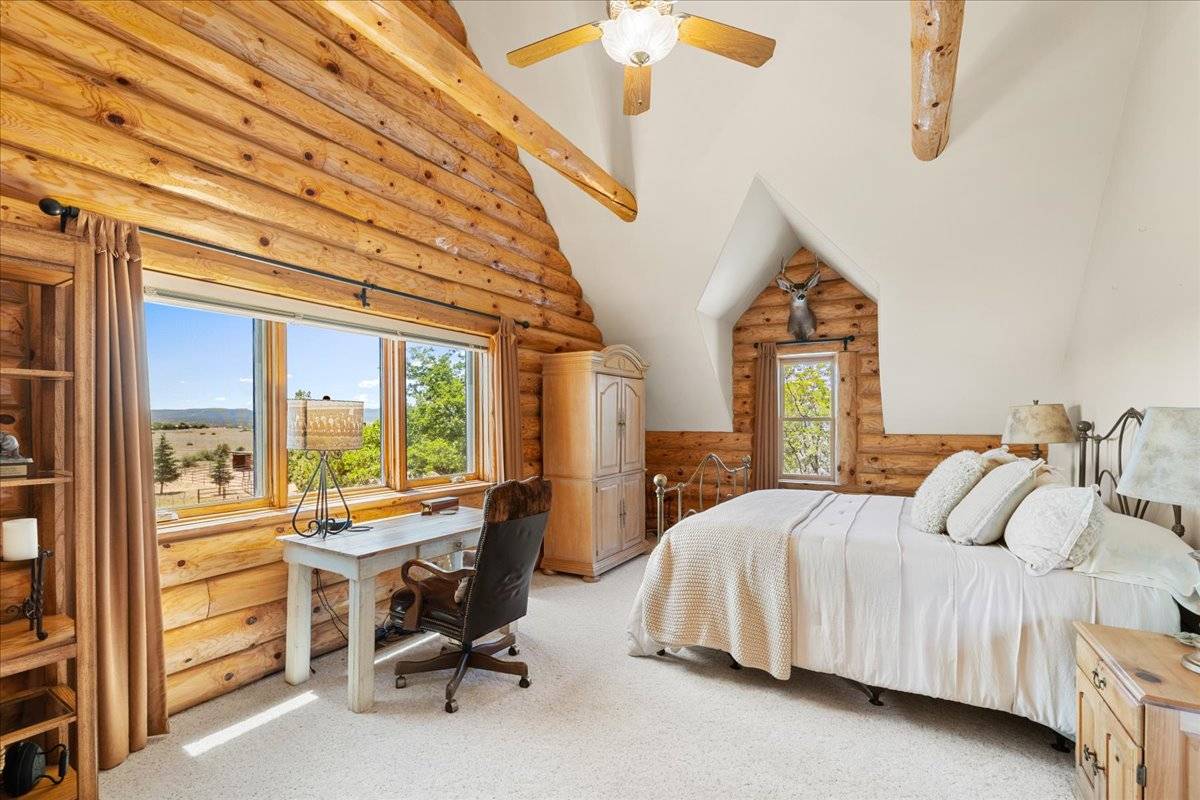 Set on over 36 acres in one of Arizona’s best water areas, this custom log estate captures sweeping 360° mountain views and the essence of high-desert living. For the equestrian enthusiast, the property features a 3-stall barn, round pen, tack room, wash racks, automatic waterers, mare motel, and an 864 SF guest bunk-house. Direct trail access opens to thousands of acres of Prescott National Forest, offering endless riding adventures. The residence showcases rare double split-log construction with traditional saddle-notch joinery—an artful blend of strength and rustic elegance. Designed for effortless comfort, the live on one level floor plan includes a second floor guest suite and an additional bedroom. Inside, dramatic vaulted ceilings, a striking river rock fireplace, and a gourmet kitchen with Viking and Sub-Zero appliances create an atmosphere of understated sophistication. The primary suite offers a serene escape with every comfort considered. Abundant water, a robust well, 5,000-gallon storage tank, zoned HVAC, and fruit-bearing apple, peach, and pear trees complete this self-sustaining sanctuary. An adjoining 36 acres is also available, presenting a rare opportunity to create a 72+ acre private estate—an unparalleled fusion of beauty, privacy, and true high-desert luxury.