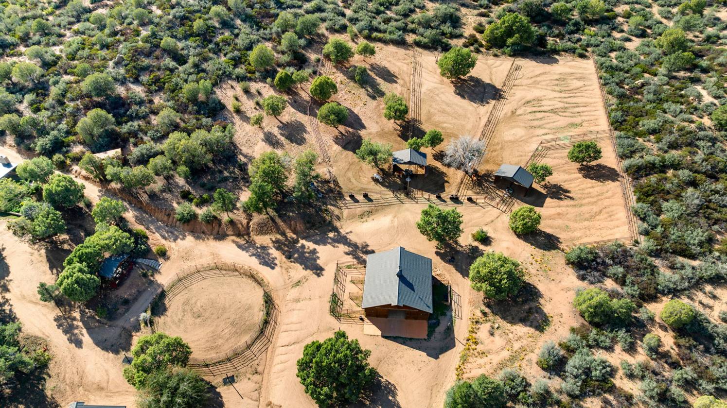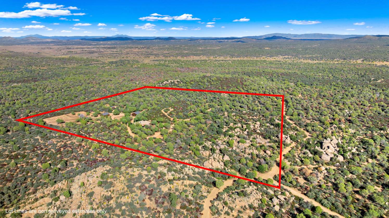 Exceptional Horse Property on over 40 acres bordering National Forest with an exceptionally maintained 2-bedroom (+ office) home, with barn, hay barn, workshop, and high producing well awaits you in gated Rancho Diamante, just west of Prescott. Immerse yourself in nature with unbelievable privacy and views of Granite Mountain with incredible boulders, landscaping & lighting. The home features 2 bedrooms plus an office, 1.5 baths, oversized family room, with open kitchen & living room adjacent to a grand outdoor patio with built-in Viking BBQ & cooktop, plus pizza oven and outdoor sink. 2 Central AC/Heating units plus 2 evaporative coolers, and on-demand water heater provide the ultimate optionality in comfortable living. This remarkable property boasts a beautiful stucco house with incredible 1300 SF Barn Pro's wood barn with 4 rubber-matted stalls, wash stall, and tack room, large, enclosed hay barn, 4 large pipe-fenced horse corrals with Nelson Waterers and 60-foot Round Pen. A matching 1300 SF Barn Pro's clear-span workshop has a large garage door with concrete apron, 220v/110v and compressed air piping throughout inside and outside, plus covered parking for tractor, gator or ATV. Incredible outdoor living with horse facility observation deck, Granite Mountain view deck, second story view deck, all set on gentle rolling hills with massive boulder walls amongst the Juniper & Pinion trees. Miles of hiking and horseback riding trails throughout scenic Prescott National Forest (direct gate access) and the 3000-acre private ranch. Four mild but dramatic seasons provide comfortable living with variety and interest. Over 40 acres of nature including ~6 acres with ranch fencing. Optional cattle lease for low agricultural status property taxes.