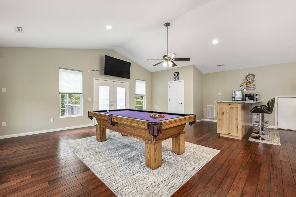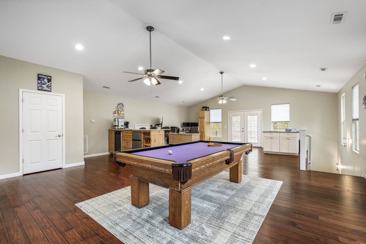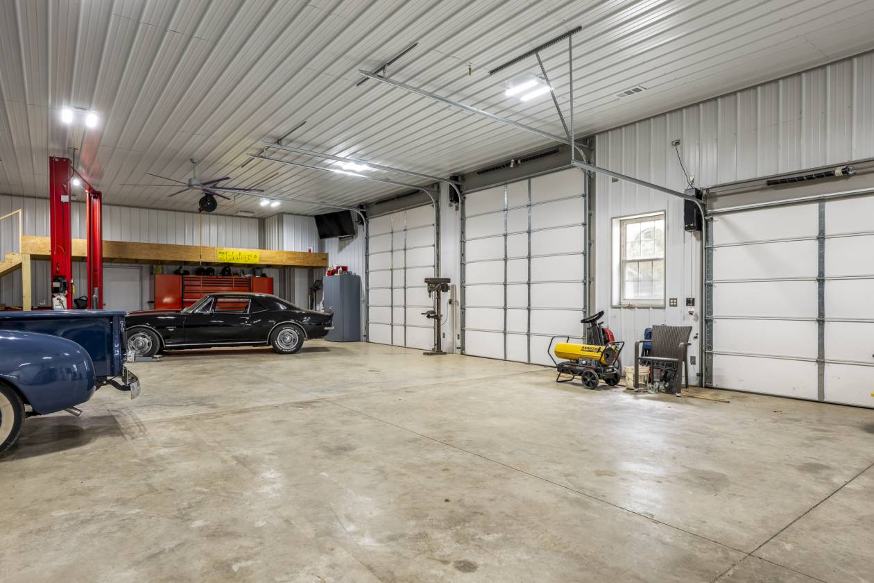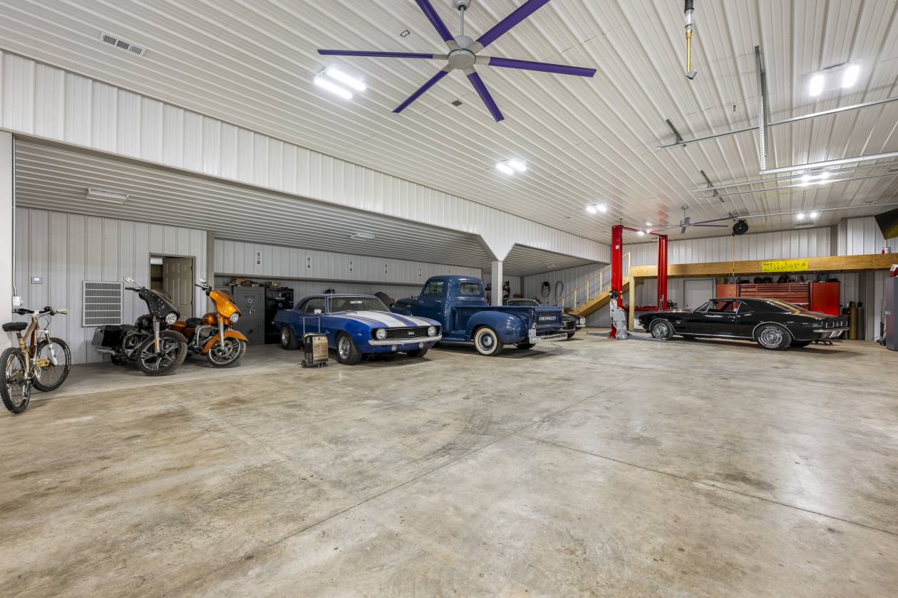 The 3,500-sq-ft heated and cooled shop has been expanded and upgraded with a half bath, creating the ideal space for a workshop, car collection, or hobby area.