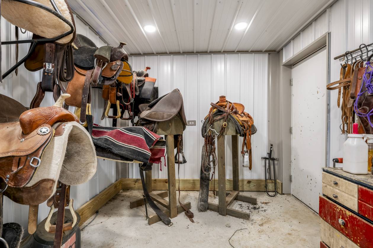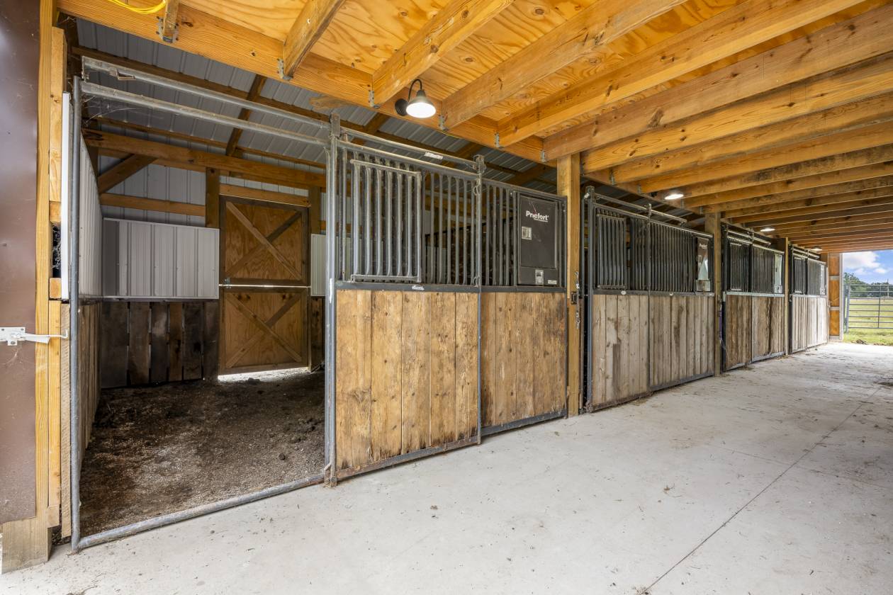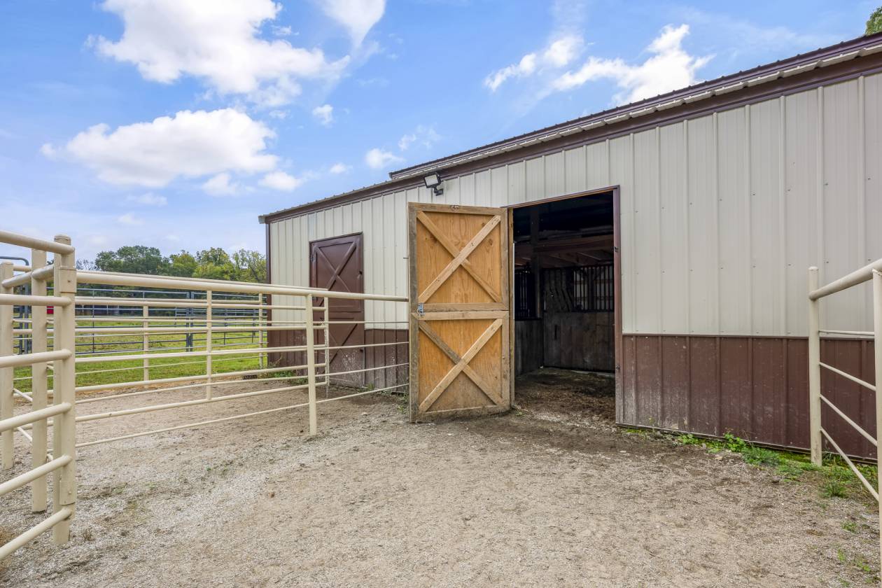 The new 2024 barn was thoughtfully built with four stalls, a tack room, and a spacious hay room—perfect for those who want a ready-to-use setup. Nearby, a new hay barn provides extra storage for equipment and feed.