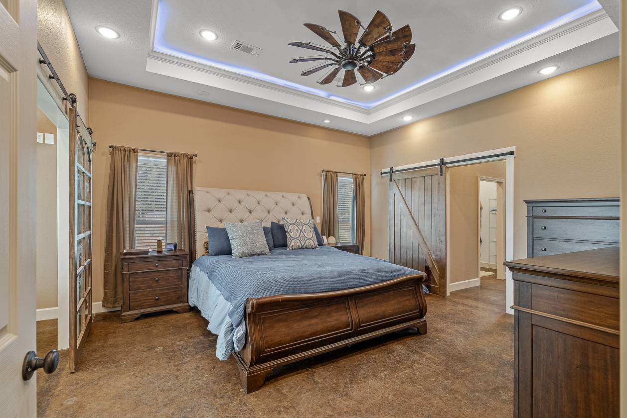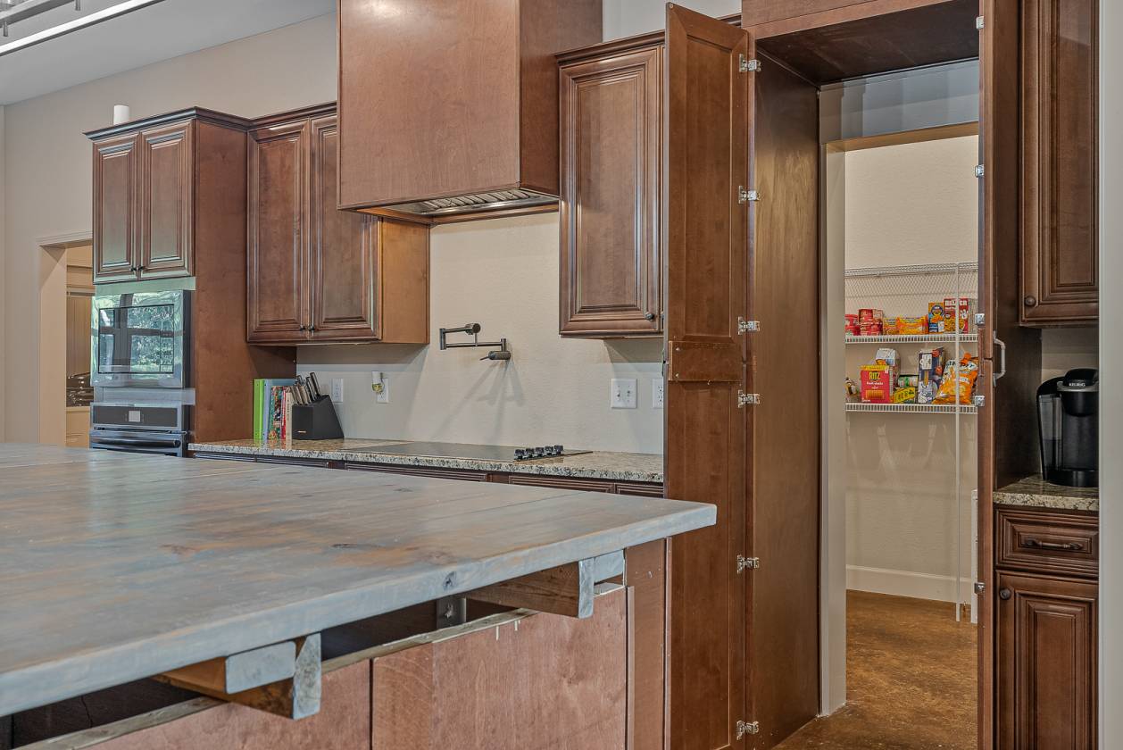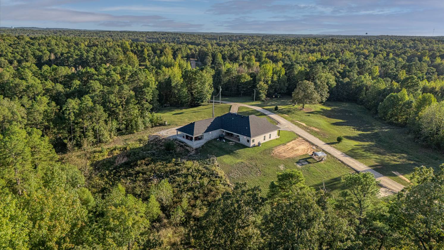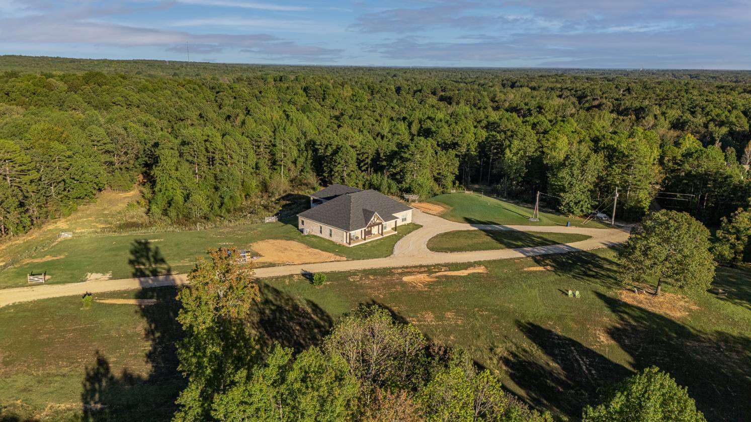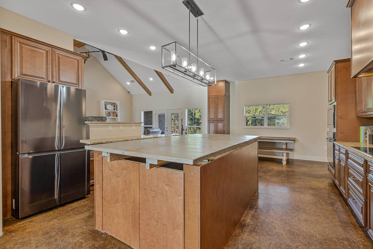 Welcome to Woodland Hills Estates - a stunning custom-built home on approx. 20 acres in a country setting just outside city limits. Built in 2024, this open-layout home features 10-ft ceilings throughout, creating a bright, spacious feel. Enjoy unmatched privacy with plenty of room to roam, yet stay minutes from town. Designed with comfort and security in mind, the home includes a hidden entrance in the kitchen island that leads to a downstairs safe room with a separate gun vault and lift-assist stairs. A unique blend of modern living and country charm.