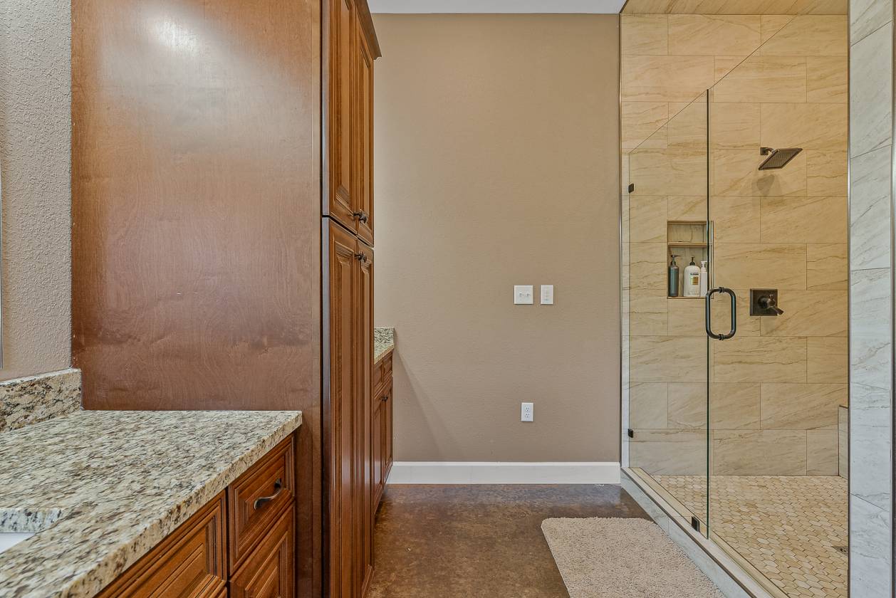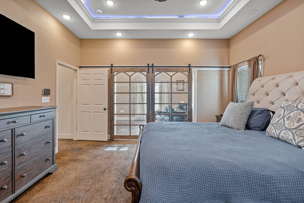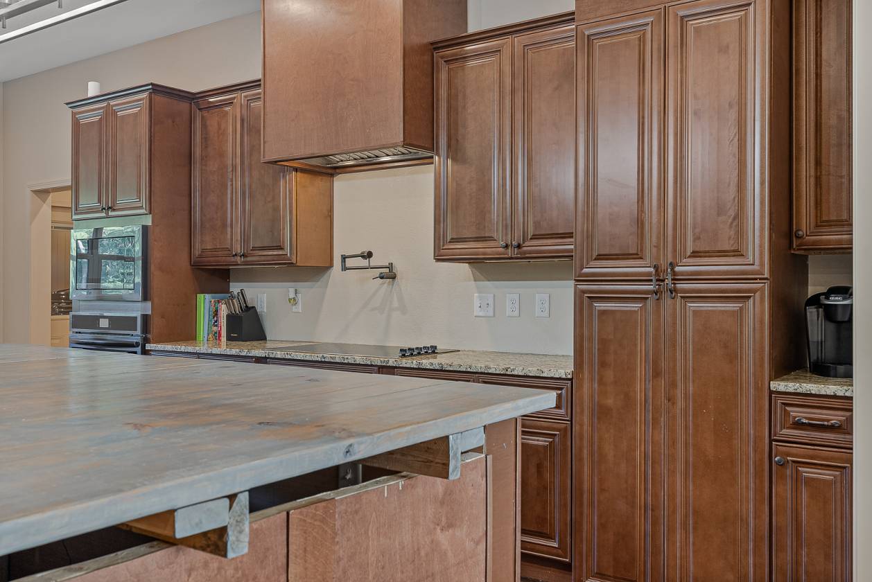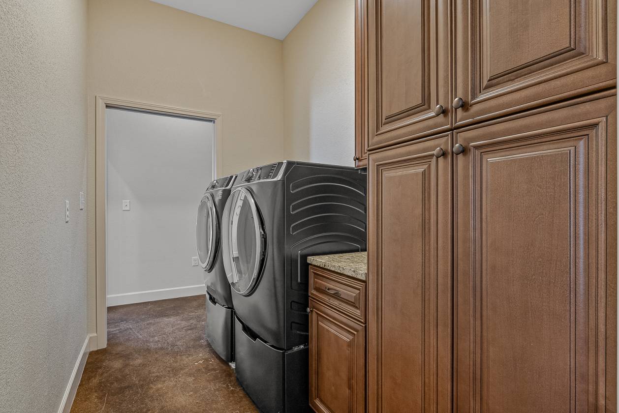 Welcome to Woodland Hills Estates - a stunning custom-built home on approx. 20 acres in a country setting just outside city limits. Built in 2024, this open-layout home features 10-ft ceilings throughout, creating a bright, spacious feel. Enjoy unmatched privacy with plenty of room to roam, yet stay minutes from town. Designed with comfort and security in mind, the home includes a hidden entrance in the kitchen island that leads to a downstairs safe room with a separate gun vault and lift-assist stairs. A unique blend of modern living and country charm.