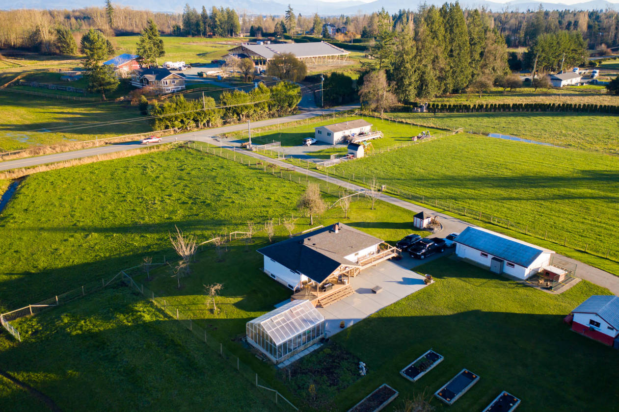 55.55 acres of prime farmland! Historic family farm bordering the connector trail to Campbell Valley Park with unobstructed views of Mount Baker and rear road access on no-thru street.. Beautiful 2016-3 bed/2 bath open concept dbl wide mobile home. Features designer finishings and is lovingly maintained and feels like new. Bonus home – Original 3 bedroom farmhouse has main floor living and basement with plenty of space for all your hobbies and canning storage. All infrastructure recently updated underground wiring, power, gas. Spectacular building site awaits your dream and vision: create a private estate, winery, wellness retreat, a robust farming business, equestrian centre, farm store or education centre. This is the place to bring your dreams to life.