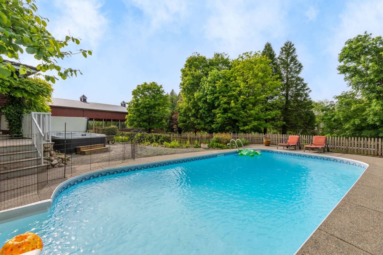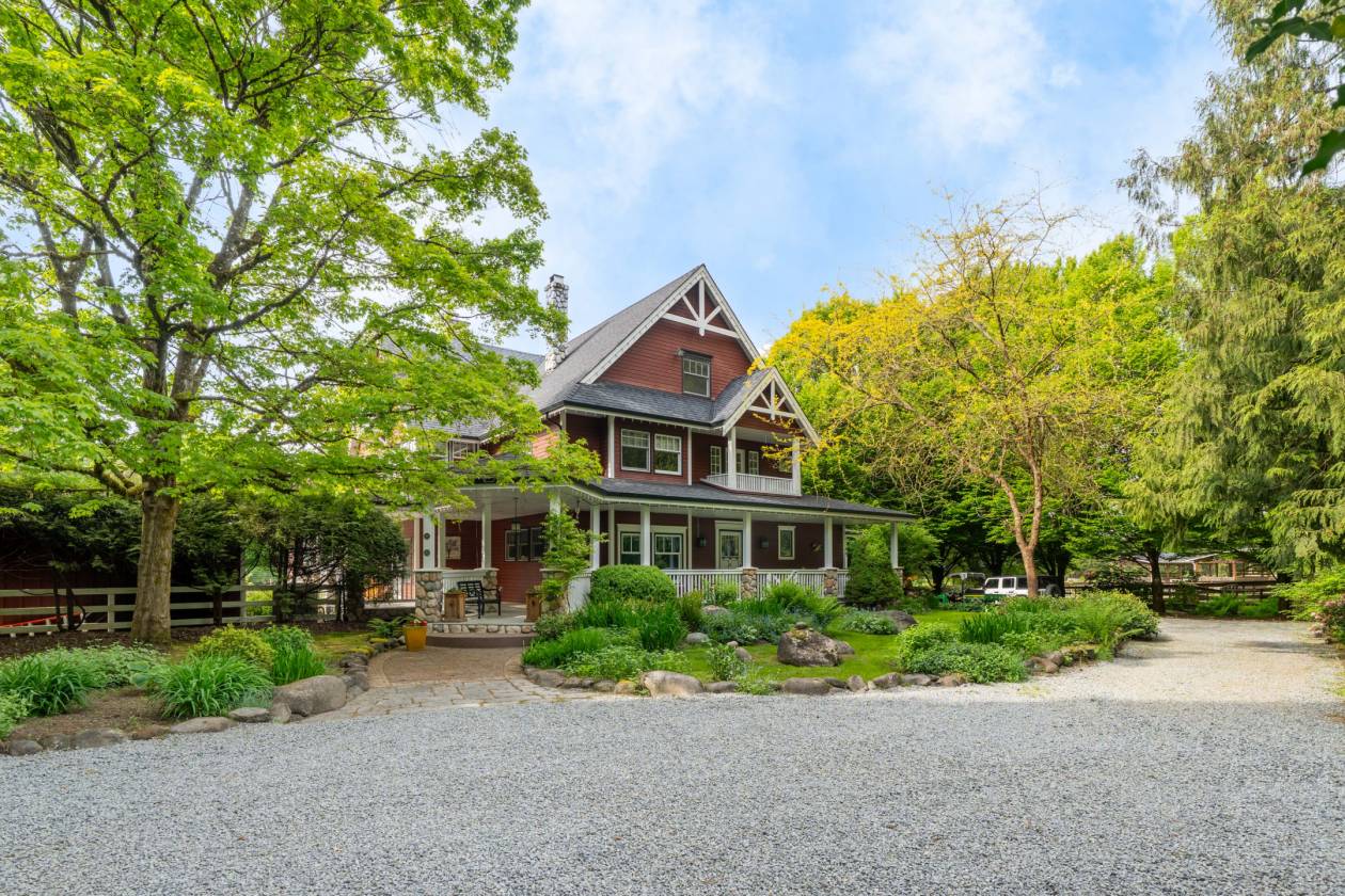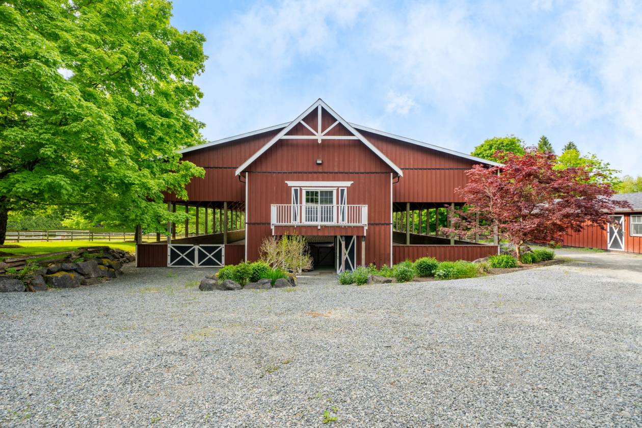 Cobblestone Farm - a premier equestrian property in Glen Valley, just 10 min from Thunderbird Show Park. Spanning 8.3 acres, it features a pristine hunter/jumper facility w/ a renovated country house, a Gambrel-style barn for 15 horses & extensive turnout. A charming brook crossed by multiple bridges that enhances the serene landscape. The fully renovated home offers a unique layout w/ covered verandahs, grand foyer, spacious living areas & a luxurious master suite. High-end appliances, outdoor pool, & a hidden loft to add to its charm. The barn includes oversized stalls, heated facilities, & a legal loft apartment. Add'l amenities include a 5-horse exerciser, covered indoor arena, oversized outdoor ring, & shelters/paddocks. Thoughtfully designed for horse welfare, an extremely rare find.