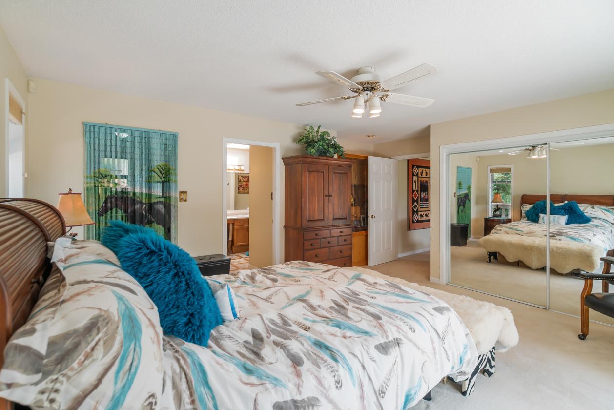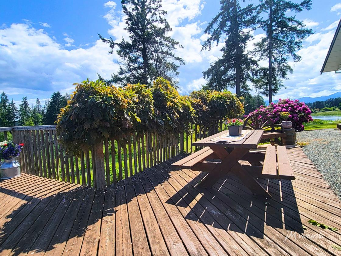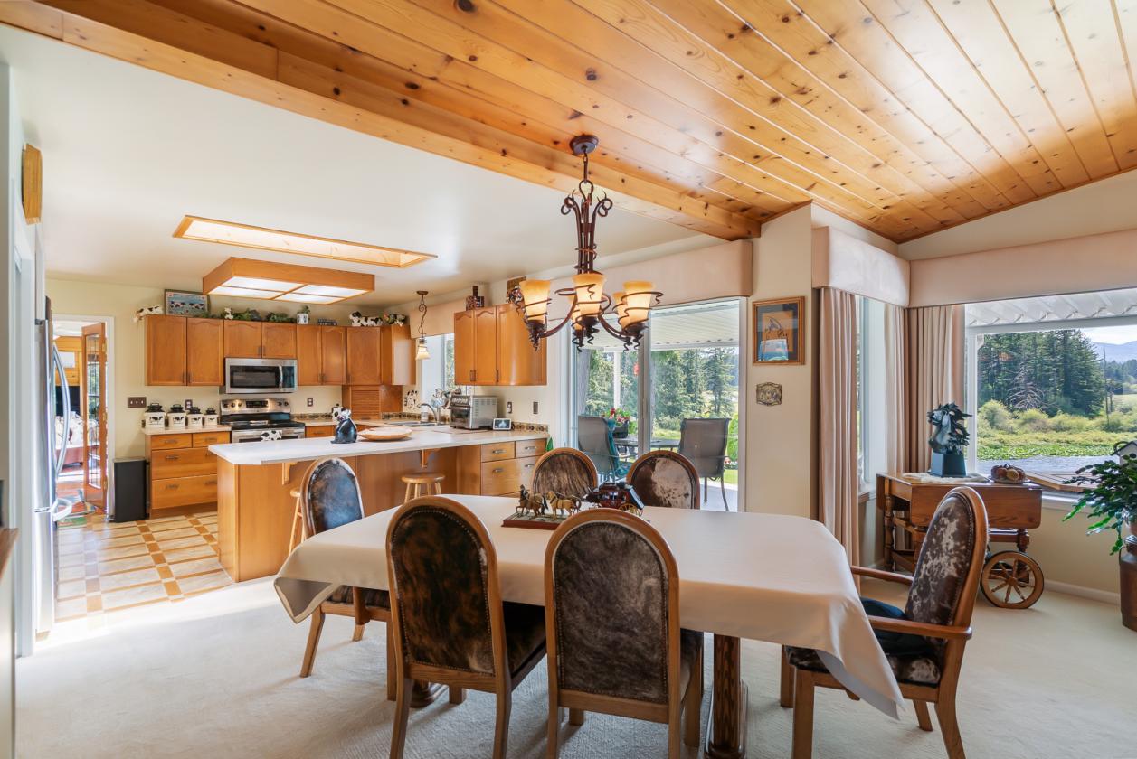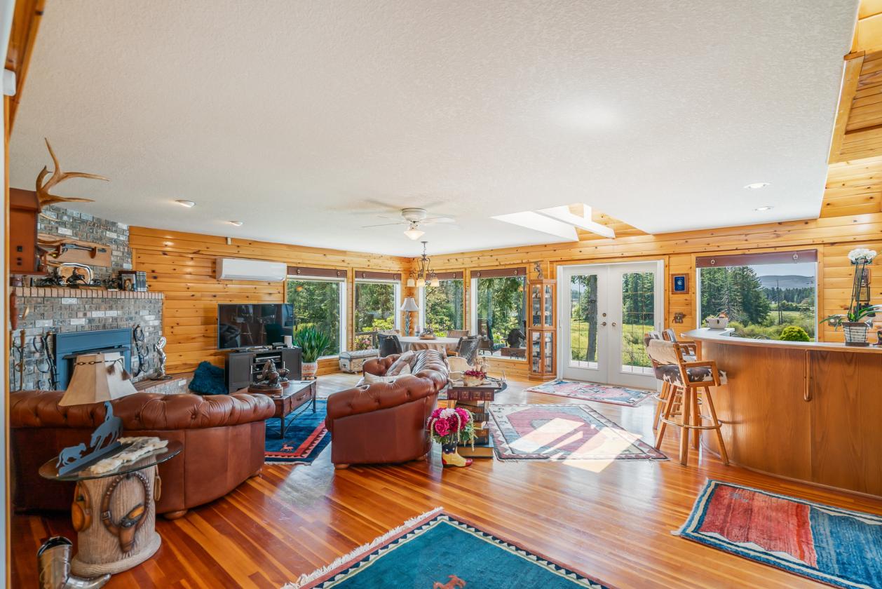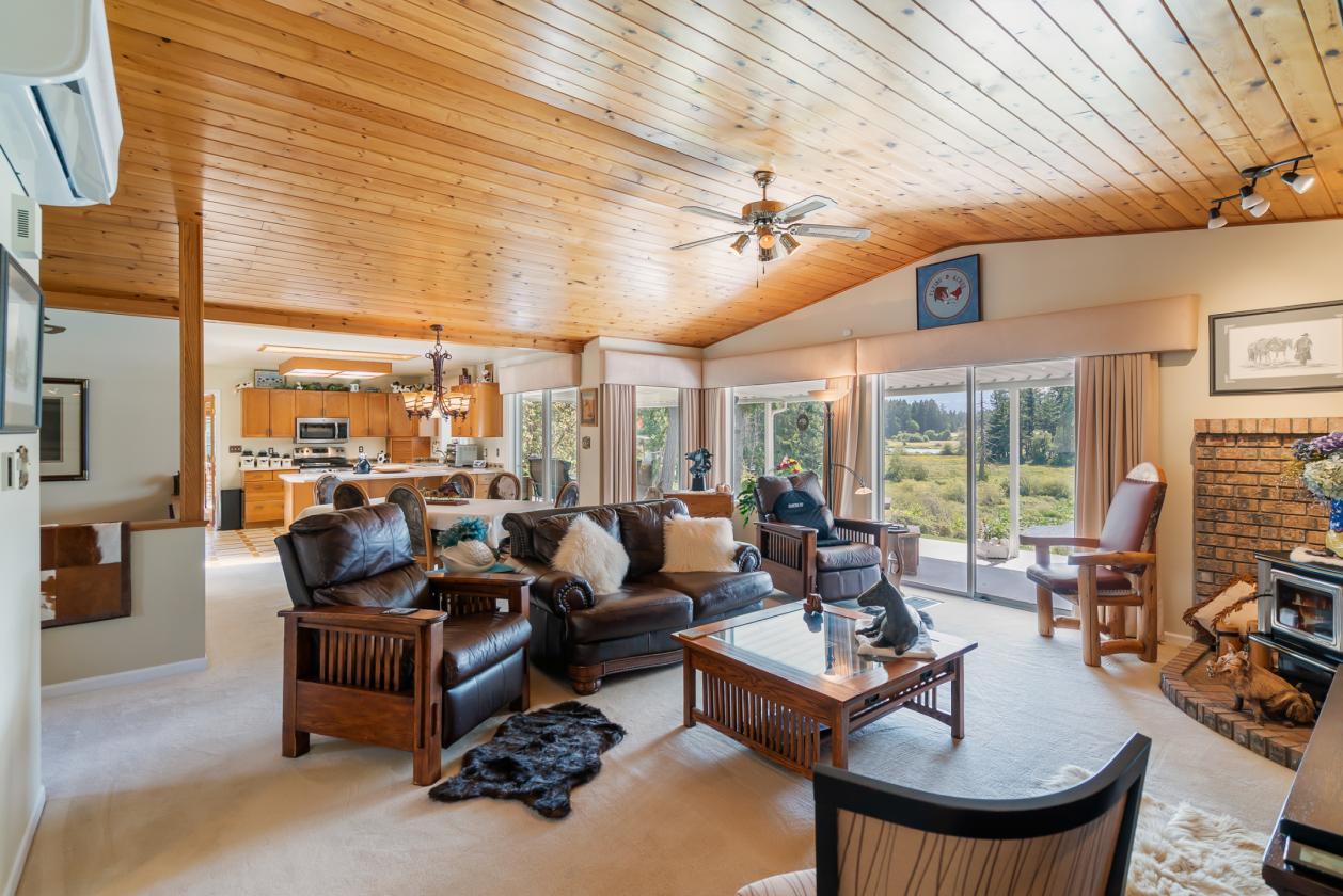 - The 3658 sq. Ft main residence is a warm, inviting, bright & spacious, country style home with lots of wood accents, and large picture windows showcasing the lake, sunsets and sunrises and stunningly beautiful views of the lake, mountains & the property. The warmth of a wood burning insert, plus two woodstoves, along with electric heat & a heat pump add to the warmth of the home You can enjoy the outdoors all year long from the covered area of the extra large deck overlooking the lake. The home has 3 bedrooms, + a rec room and a bedroom downstairs with potential to make it & the bedroom into suite or Airbnb as they each have their own exterior door . The 2 bed, bright, 2 bath cottage is ideal for guests, extended family or addition income. There is also a workshop which could be used as flex space, perhaps for a lounge and/or another tack room.