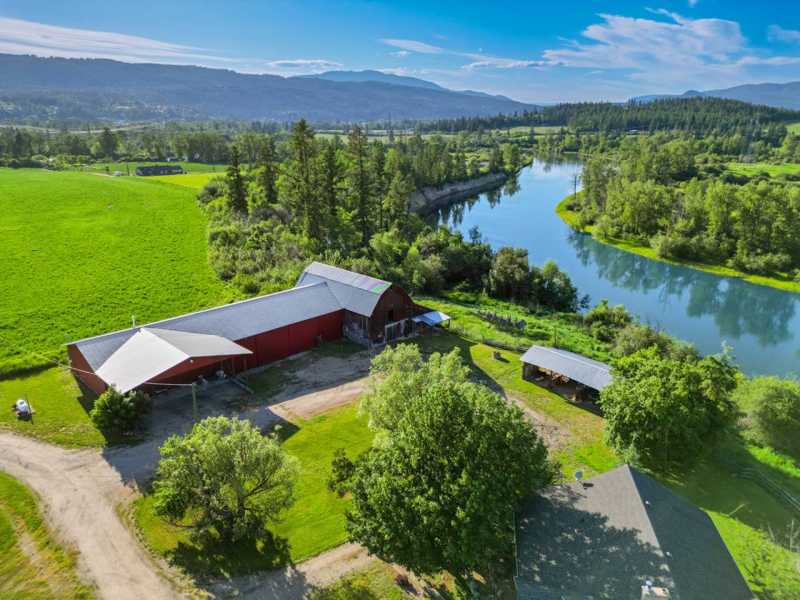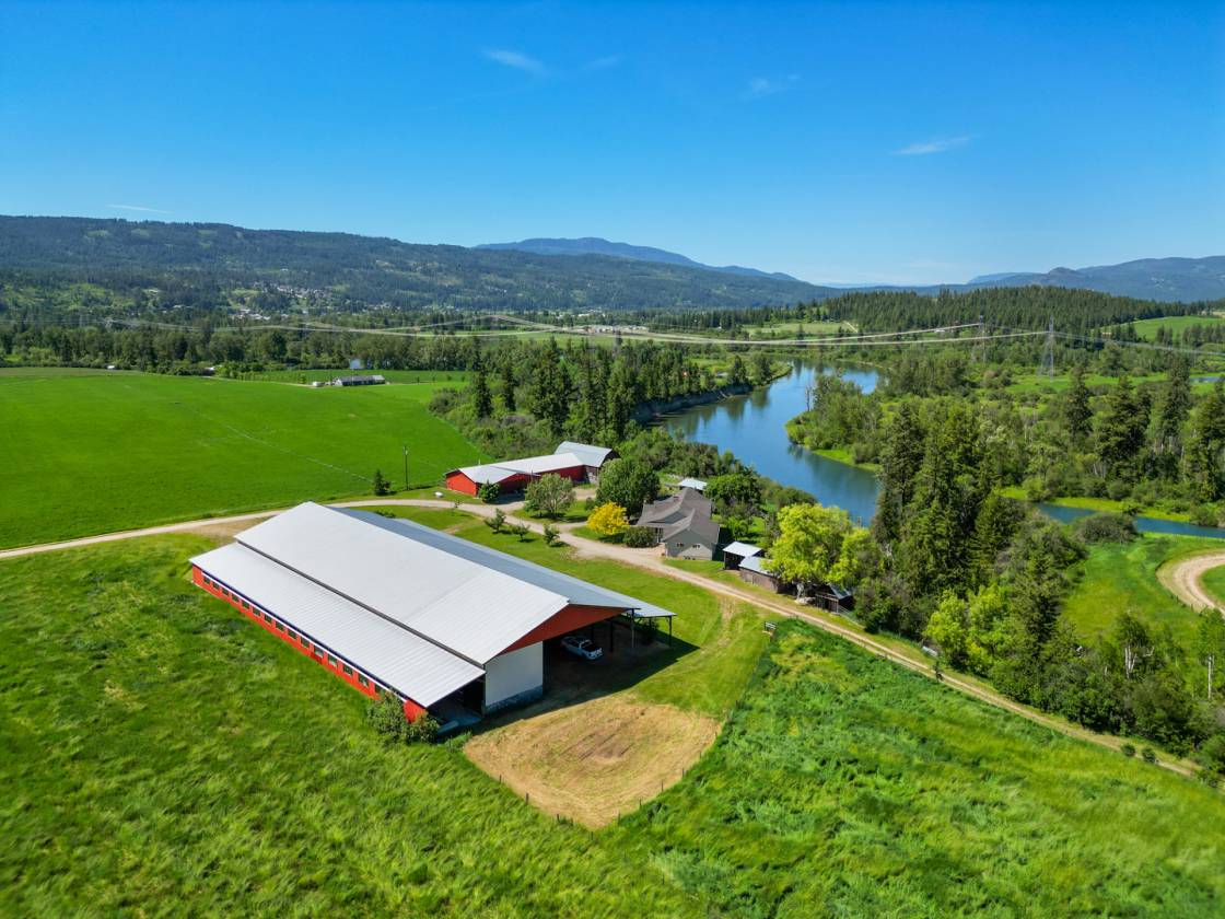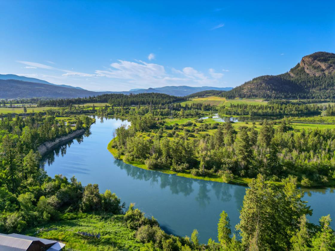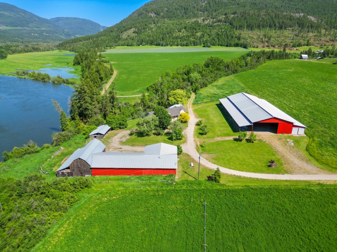 Exceedingly rare legacy holding - over 320 acres of prime farmland fronting on the Shuswap River, just 5 minutes from downtown Enderby and 30 minutes from Vernon Hospital. This exceptional estate offers scale, natural beauty, agricultural productivity, and equestrian potential—all in a highly accessible yet private setting, removed from major highways and thoroughfares. A spacious walk out rancher with potential for nearly 4600 sf & 429 sq ft attached garage, offers comfortable living with room to grow. Outbuildings include a 4000 sf shop with an attached vintage prairie barn and pole barn (approx 207' x 122' ft), ideal for variety of farming ventures, hay storage, or equestrian use. More than 100 acres of cleared, arable fields with an additional 75 acres available seasonally, primarily in hay production. Ricardo Creek also meanders through. The balance of the property is treed, much of it still accessible, and a significant portion of the hillside lies outside of the Agricultural Land Reserve (ALR). Rolling pastures framed by breathtaking river and mountain views, will leave you thinking you are gazing at a National Geographic spread. The majority of the property is in the ALR, which allows for a 2,000 sq ft secondary homes on parcels of this size, making it ideal for multi-generational living or future expansion. This is a once-in-a-generation opportunity to acquire a property of this scale, calibre, and proximity to services. Backs onto thousands of acres of crown land.
