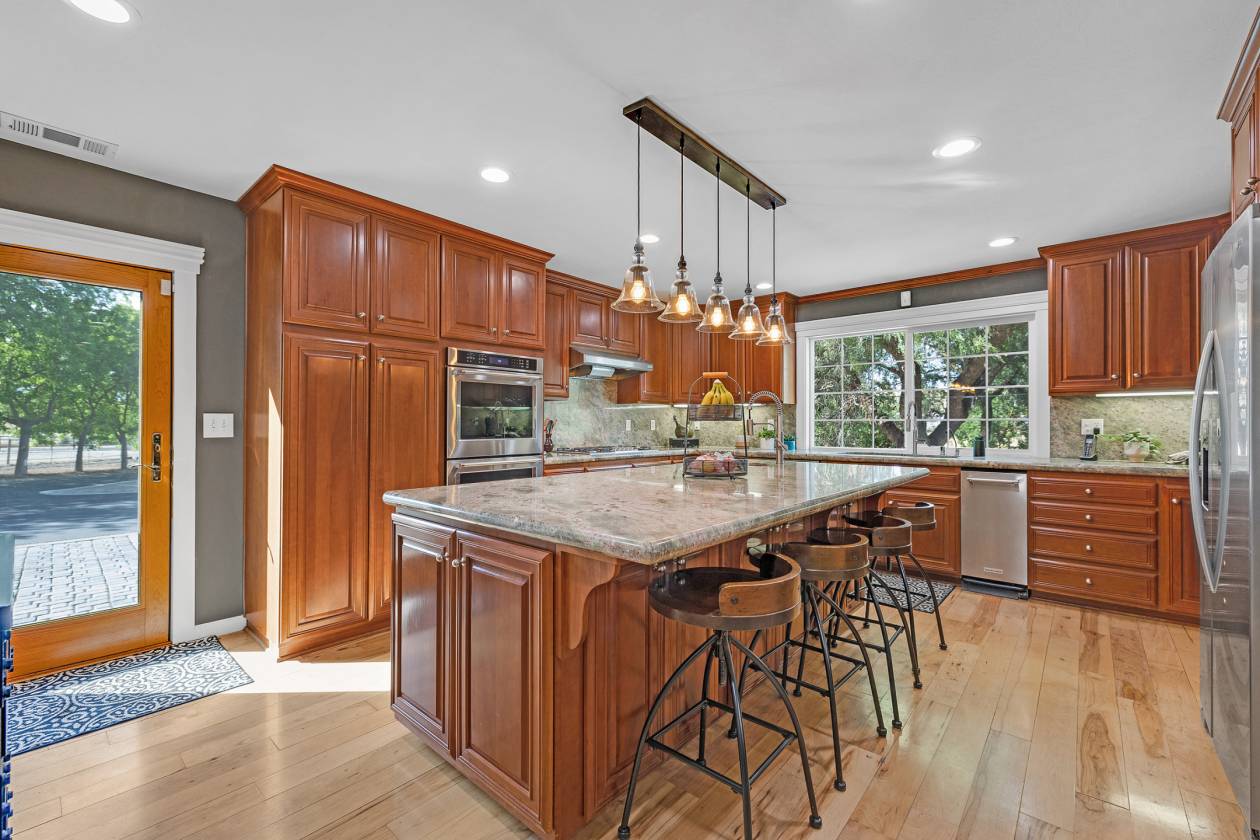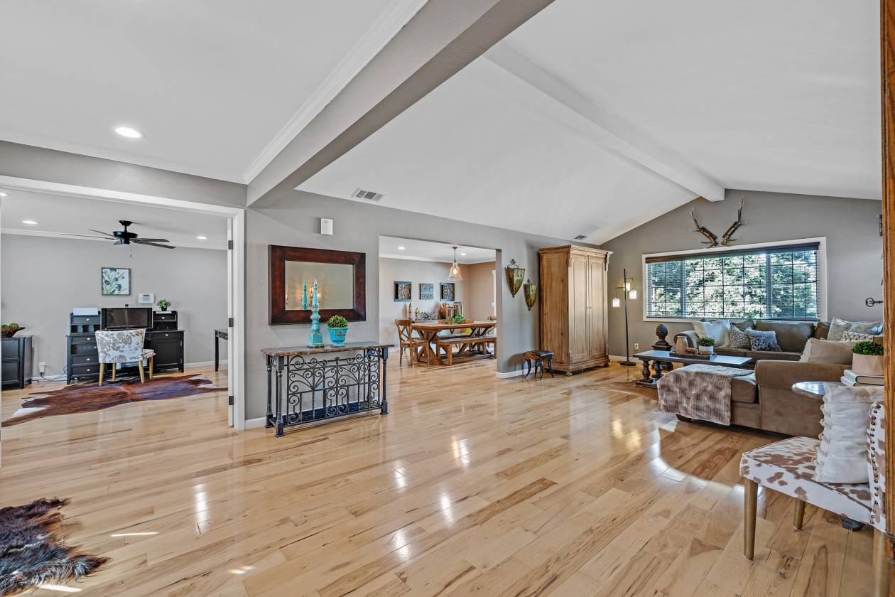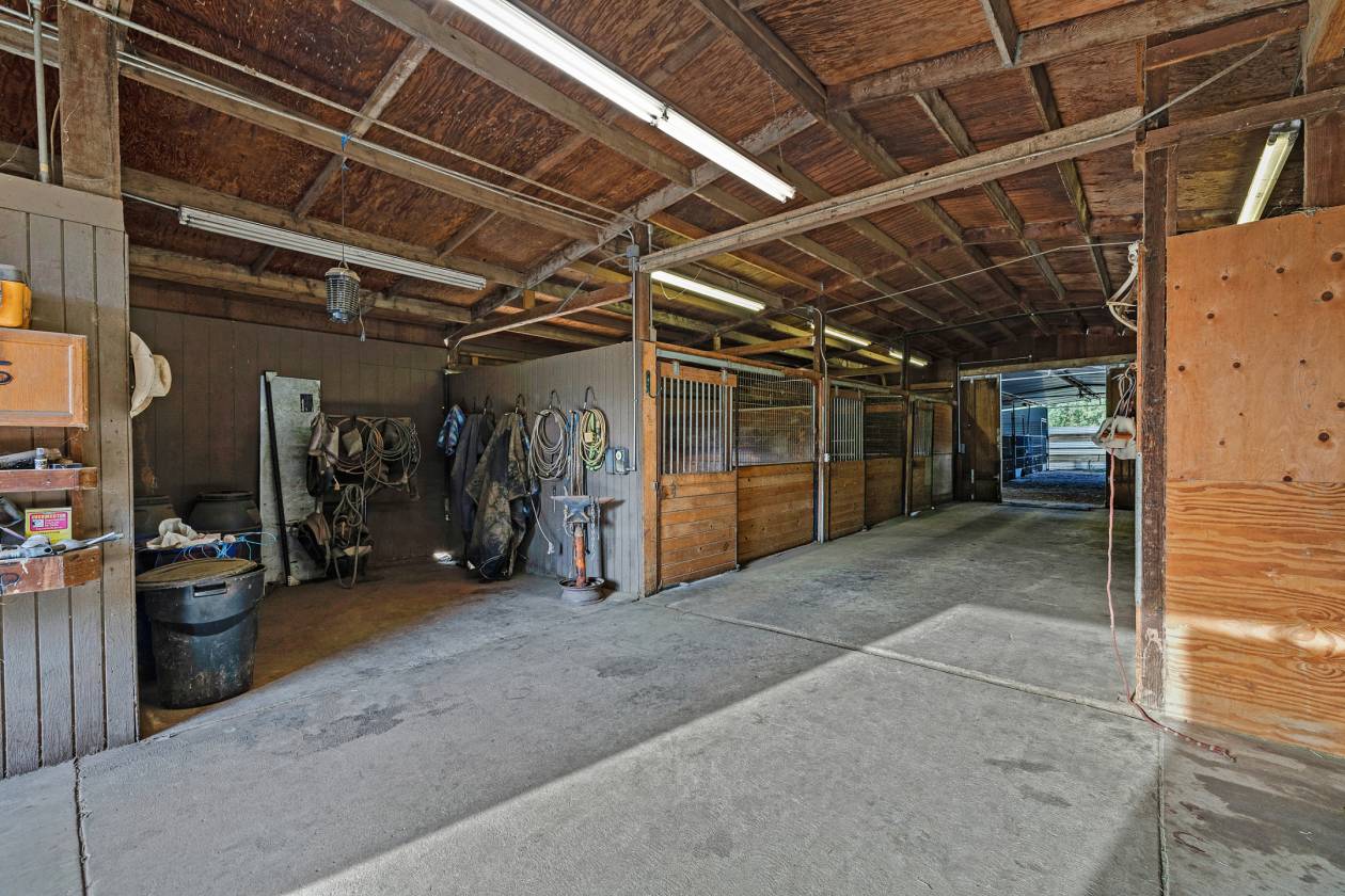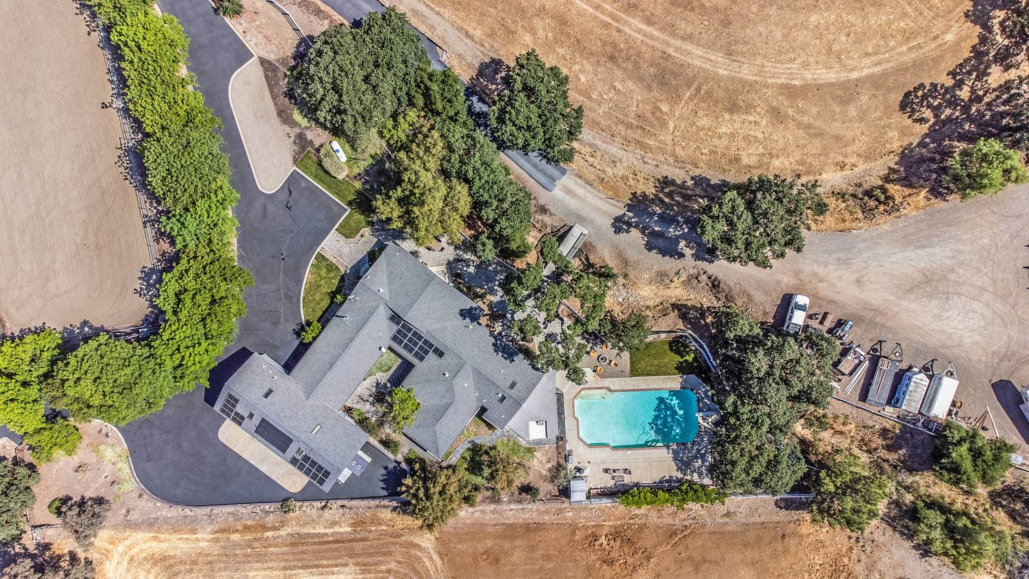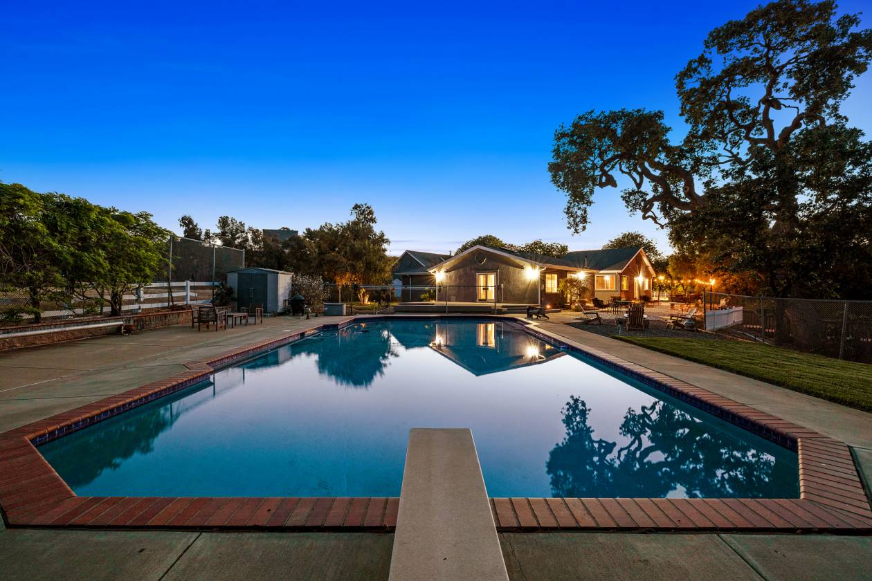 Welcome to the Majestic Big Horn Ranch! This flat 5 acre ranch boasts a 3,400 sqft luxury home with a grand pool, sweeping patios, heritage oak trees, and a seasonal creek. The ranch also enjoys a 10-stall barn, lit riding arena, 40 x 60 shop, and a 2 acre pasture for grazing, roping, farming, ADU, or whatever you can imagine using a flat 2 acres for. At the heart of the home is a masterly designed granite and stainless steel kitchen with large center island and adjacent family room and dining room. No doubt the coveted gathering place for friends and family. Retiring to the primary suite is like escaping to your own private day spa retreat; large bedroom with fireplace, sitting area and views of the pasture, oaks and pool. The marble bathroom is host to a steam shower, large soaking tub, sitting area, wardrobe room and light streaming windows and skylights filling the room with the splendor of the outdoors. With four secondary bedrooms, four full bathrooms, office, four-car garage, 10,000 gal water storage, 30 gal-per minute well production, PV solar and a John Deere backup generator, all situated only 13 minutes from the flag pole in the center of town, the Big Horn Ranch is the quintessential Livermore Valley family compound.