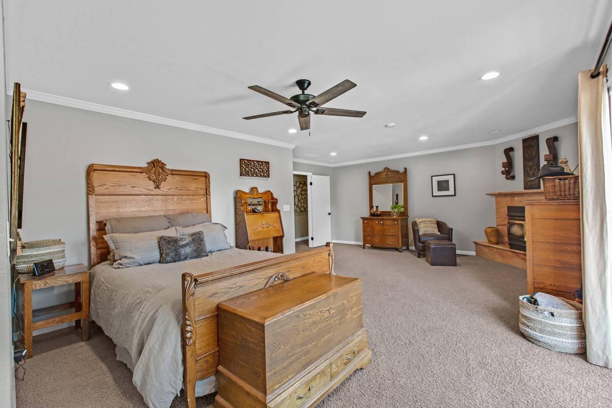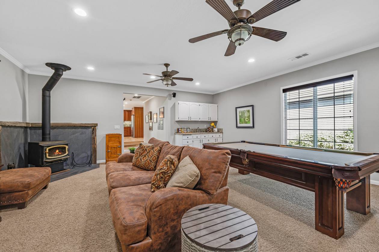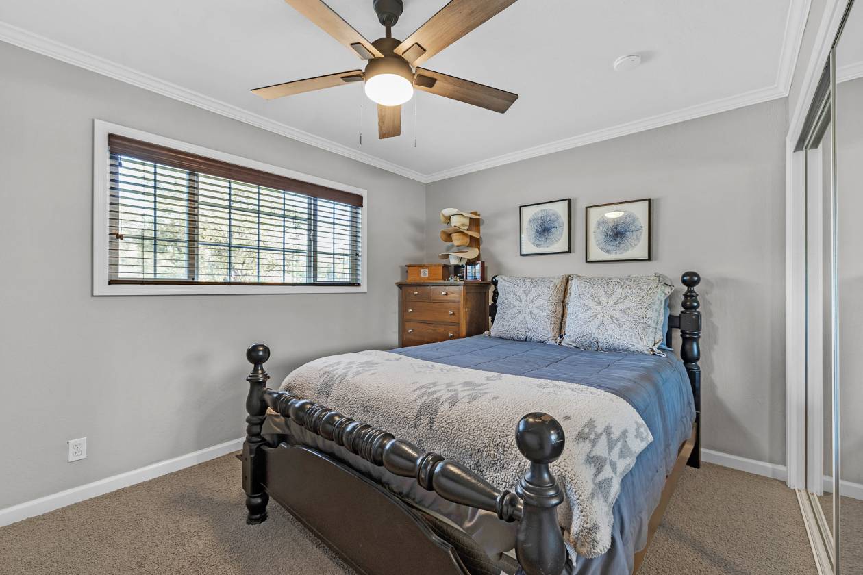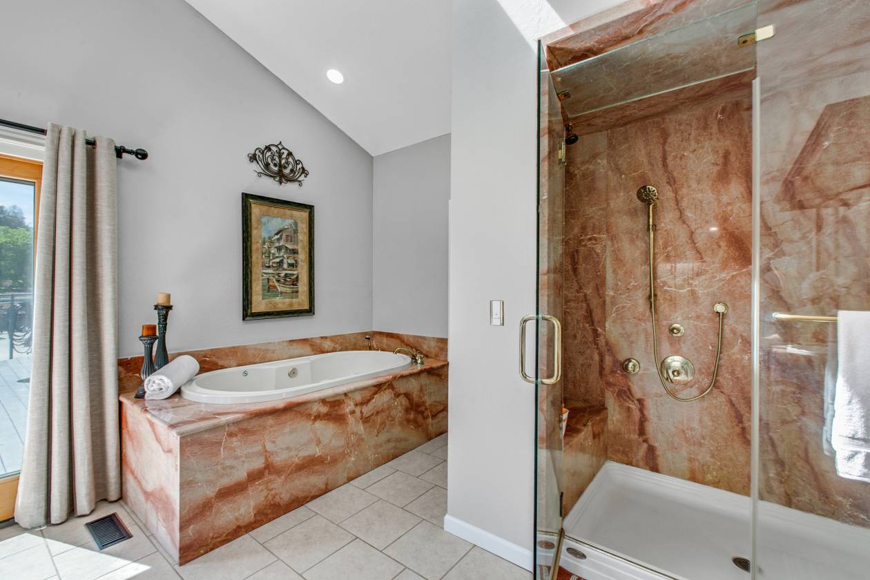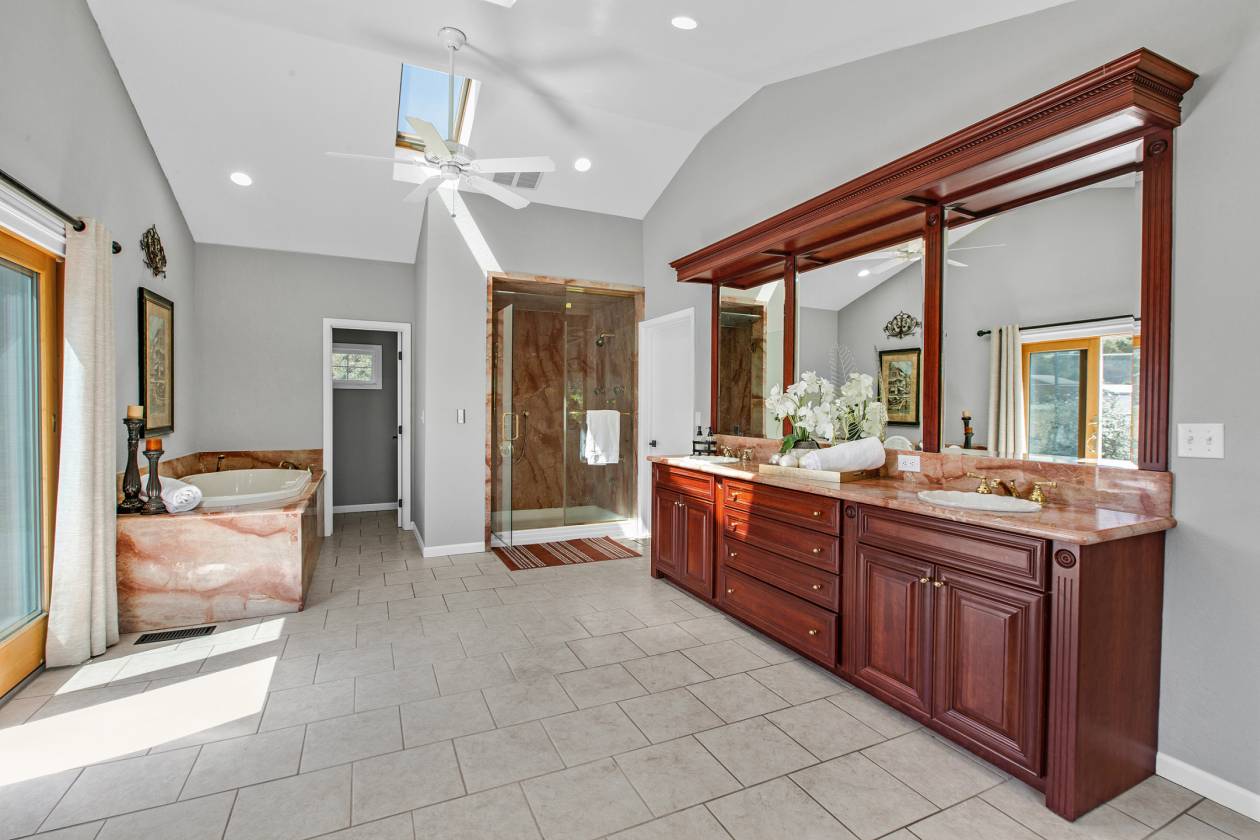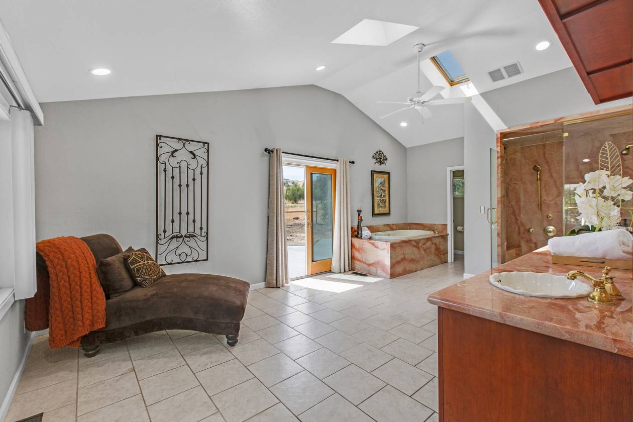 Welcome to the Majestic Big Horn Ranch! This flat 5 acre ranch boasts a 3,400 sqft luxury home with a grand pool, sweeping patios, heritage oak trees, and a seasonal creek. The ranch also enjoys a 10-stall barn, lit riding arena, 40 x 60 shop, and a 2 acre pasture for grazing, roping, farming, ADU, or whatever you can imagine using a flat 2 acres for. At the heart of the home is a masterly designed granite and stainless steel kitchen with large center island and adjacent family room and dining room. No doubt the coveted gathering place for friends and family. Retiring to the primary suite is like escaping to your own private day spa retreat; large bedroom with fireplace, sitting area and views of the pasture, oaks and pool. The marble bathroom is host to a steam shower, large soaking tub, sitting area, wardrobe room and light streaming windows and skylights filling the room with the splendor of the outdoors. With four secondary bedrooms, four full bathrooms, office, four-car garage, 10,000 gal water storage, 30 gal-per minute well production, PV solar and a John Deere backup generator, all situated only 13 minutes from the flag pole in the center of town, the Big Horn Ranch is the quintessential Livermore Valley family compound.