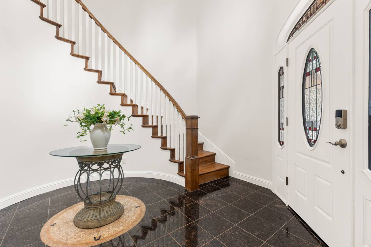 Welcome home to your beautiful mountain retreat on 5 acres! This serene horse property is set back from the road with a private gate, huge stamped concrete driveway and grand stone columns welcoming you to this beautiful custom home. Inside you'll find a soaring entryway with a beautiful chandelier, spiral staircase and a tile inlay compass rose making you feel that you have finally arrived home.