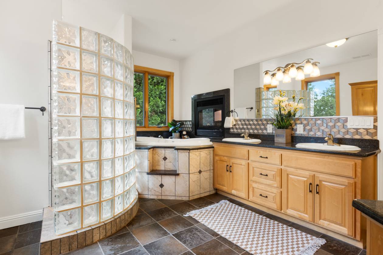 This layout has the best of all worlds with intentionally designed rooms to the open concept kitchen, family room and breakfast nook. Downstairs there are also two large bedrooms, two bathrooms, a huge walk-in pantry and ample storage and closet space. Wait until you walk up the beautiful wood staircase to the stunning primary bedroom retreat! There's a jaw-dropping amount of space upstairs with the massive bedroom and walk-in closet. The primary bathroom is like a spa setting with glass block shower and jetted tub with views of trees and even a two-sided fireplace where you can finally let your shoulders drop and unwind from the stress of the day. The bathroom also includes a large vanity area, separate water closet including a bidet and so much space.