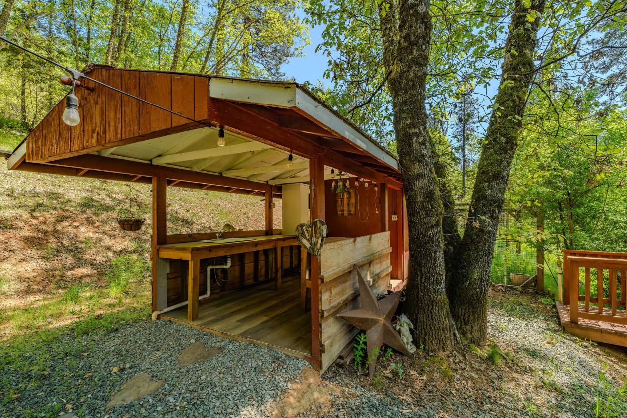 This one has it All!! The property includes 23 Acres of rolling, tree covered land with a Seasonal stream and Pond that flow through late Fall into Spring. This lovely ranch-style home has seen many updates over the past 7 years including a new Roof, Kitchen, bathroom, game room/3rd bedroom, interior flooring, paint and more. A large, cozy Living room with a rock fireplace featuring a woodstove insert and a true timber ceiling offers a Warm Retreat during the Cooler weather. The private master suite is located on the upper level and includes a Walk in Closet and en-suite Bath. Enjoy an abundance of Open decking-perfect for relaxing and taking in Nature at it's Best. Additional features include an attached garage plus a large, detached 30 x 50 Shop. An ideal set up for those who are Handy or wishing to establish their own Horse Barn. For outdoors enthusiasts, the property offers numerous hiking trails, native evergreens, seasonal flowering Trees and plants along with a dedicated area for growing your own Vegetables and fruit. An outdoor kitchen makes cleaning and prepping your harvest more enjoyable . To top it off, the property is on metered county water and has fire hydrants nearby, which can help secure more affordable fire Insurance.