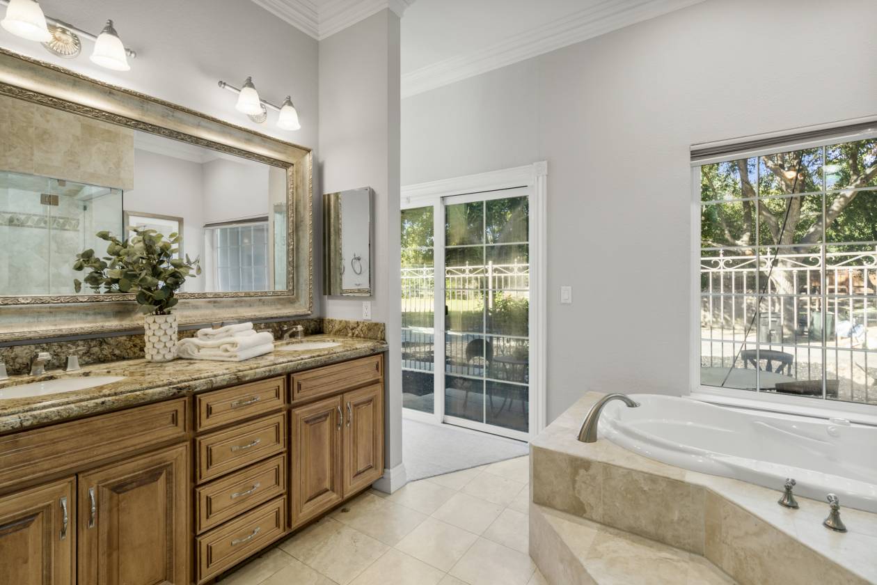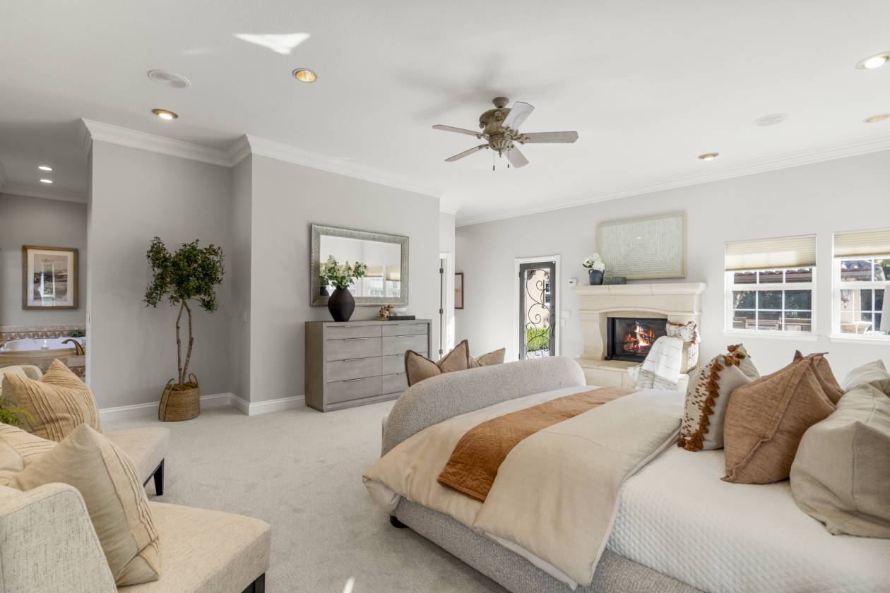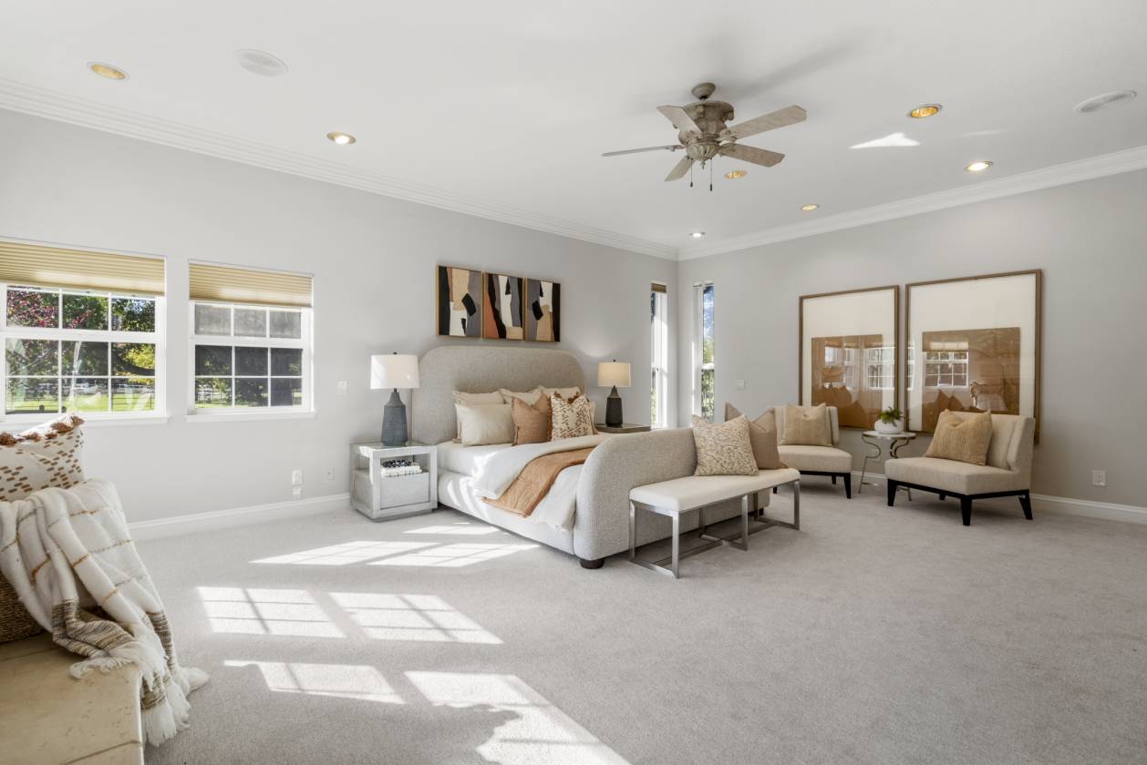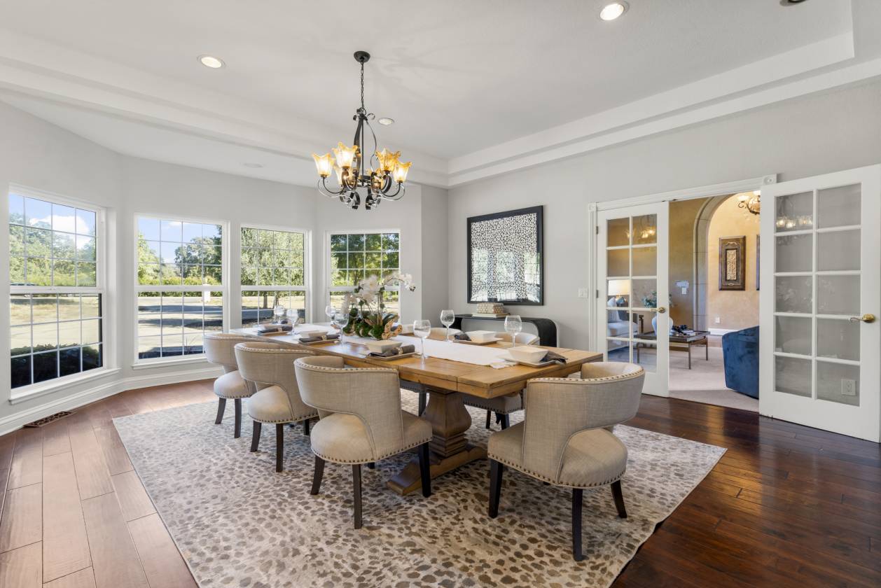 Welcome to Danville’s Tassajara Valley, where 5655 Bruce Drive offers the perfect blend of country serenity and refined living. Set on a flat 5.35-acre lot, this single-story estate spans over 5,373 square feet with six bedrooms, a bonus room, and 3.5 baths — offering flexibility for family and guests alike. The chef’s kitchen is the heart of the home, featuring high-end stainless steel appliances, a spacious center island with seating, walk-in pantry, and large casual dining area. The spacious formal dining room can host large family get togethers and the living room intimate gatherings, while the family room showcases soaring ceilings, a fireplace, wraparound bar, and space for a large media setup. The primary suite and a secondary bedroom sit on one side of the home, with additional bedrooms (including a junior suite) on the other. A mudroom, bonus room, and large laundry area complete the thoughtful floor plan. Outdoors, enjoy resort-style living with a covered pavilion and full outdoor kitchen, pool and spa, and expansive grounds lined with peach, apricot, plum, olive, walnut, and almond trees. Additional features include hardwood flooring, new carpet and paint, dual water heaters, two fireplaces, security system and owned solar with dual Tesla Powerwalls, dramatically reducing energy costs while providing backup power. For the equestrian enthusiast there is a six-stall barn with birthing stall, tack room, storage area, and full bath, plus multiple fenced pastures and space for an ADU or additional outbuildings. Private, and surrounded by natural beauty — all just minutes from top-rated Danville schools, shopping, and dining — 5655 Bruce Drive offers the best of luxury country living in the heart of Tassajara Valley.