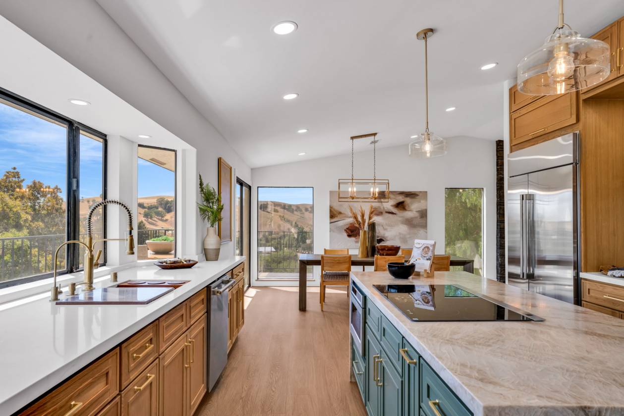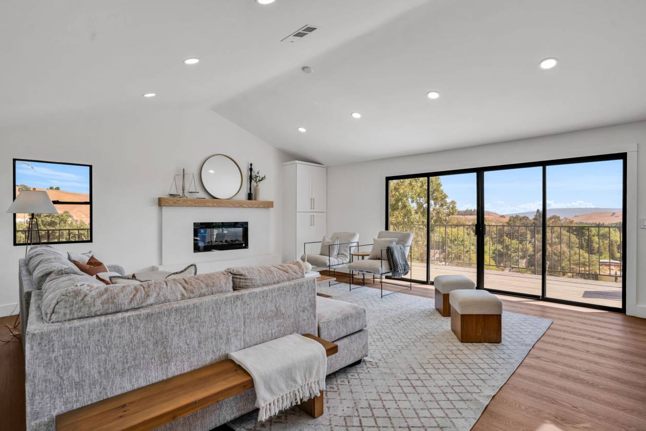Discover your own private retreat in this stunning updated hilltop rancher on 2.16 acres with panoramic hill views, elegant hardwood floors, and a chef’s kitchen designed for entertaining. This home offers open, airy living at its finest an open-concept layout, and high-end finishes. The chef’s kitchen boasts dual islands, waterfall quartz countertops, built-in appliances, coffee and wine bars, and opens to a spacious family room with electric fireplace all with views and sliding glass door to deck. The luxurious primary suite offers a walk-in closet, fireplace, private deck, and a separate spa-like bath with soaking tub and glass-enclosed shower and another private deck - take a cold plug in privacy! Outdoor living includes multiple decks, flat usable areas for a pool or arena, and a large shed. Bonus: ADU- 3 bed/1 bath. Private gated entry, new fencing, riding area, Mt Diablo access — just 10 minutes to shopping! Country living at it's finest!