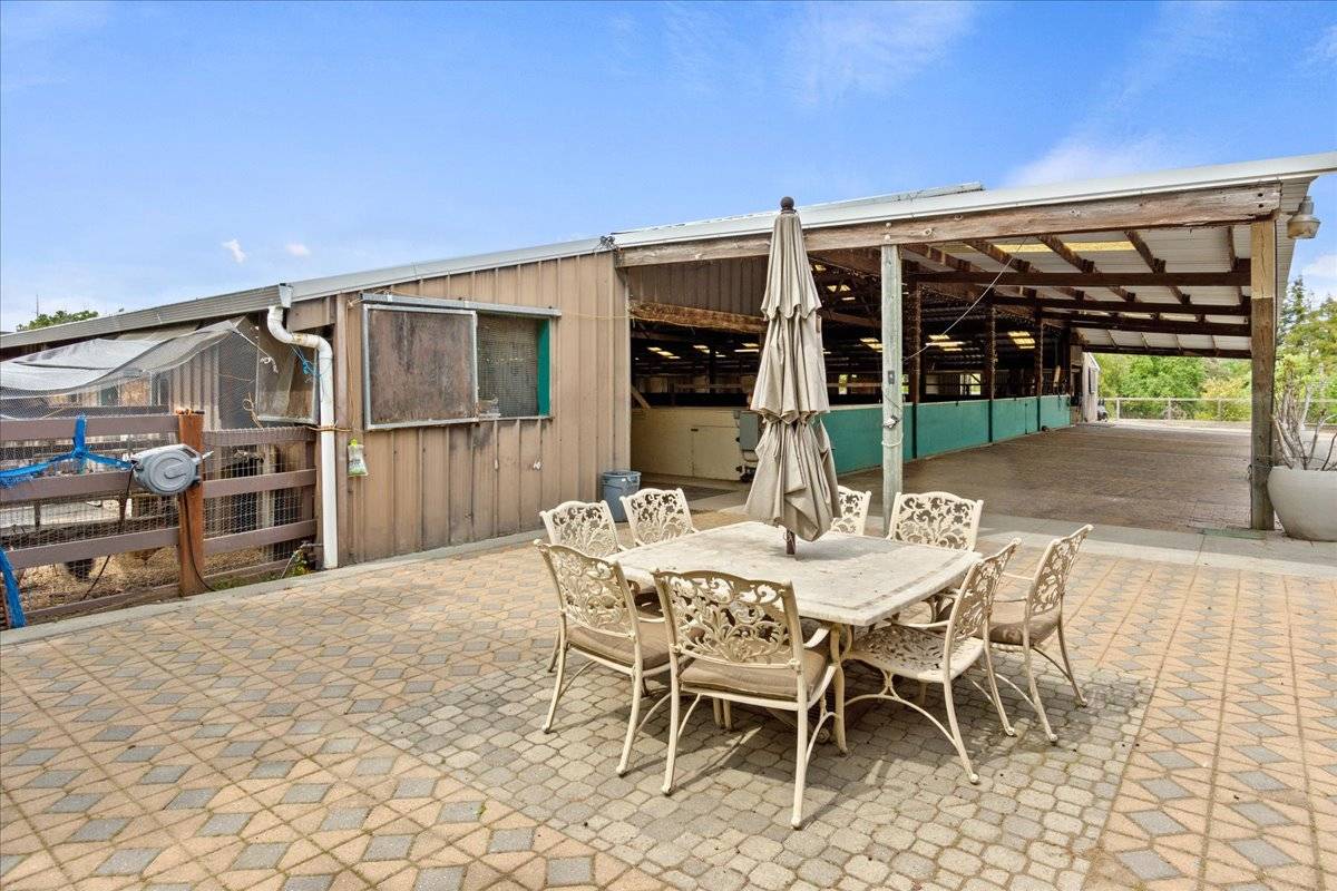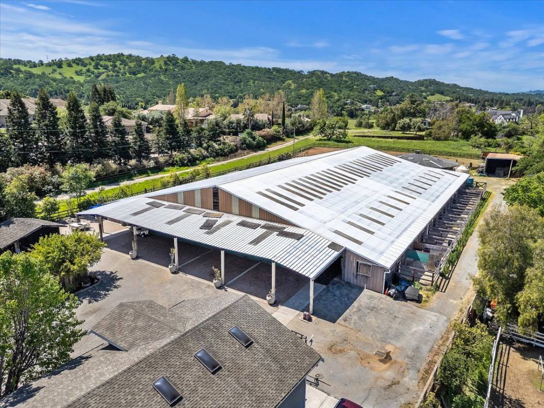 - Enjoy an unbelievable, approximately 23,000 square foot covered arena & barn. The barn is designed for 30 stalls w/paddocks (currently 26), 4 gorgeous tack rooms, exquisite grooming stations/cross ties with hot water, laundry & so much more! Separate covered round pen, hay & manure barn & grain silo. Access Mount Diablo's incredibly groomed trails on horseback, bike or foot. A-2 Agricultural zoning gives you the opportunity to create a lifestyle, with protections for livestock use and the opportunity to run certain types of businesses (see Contra Costa County for details). Enjoy the peace of mind of being connected to city water & public utilities!