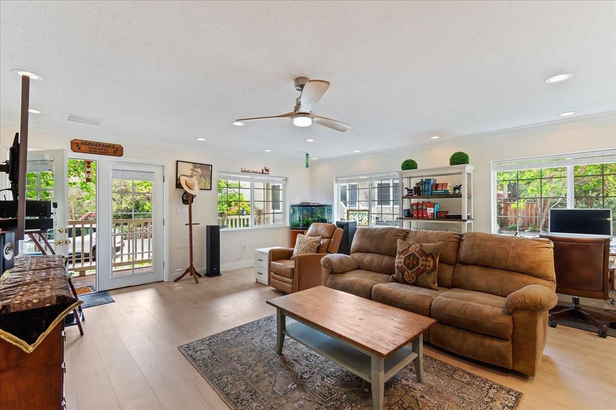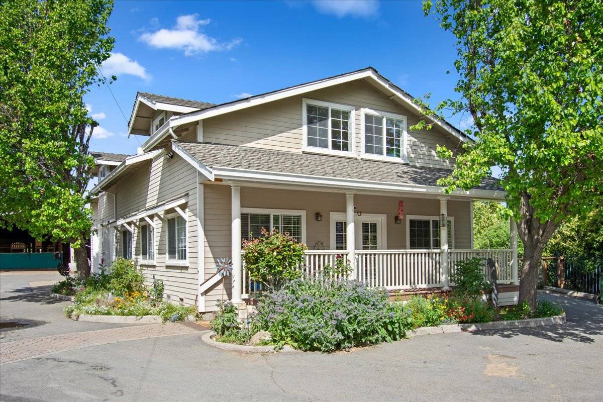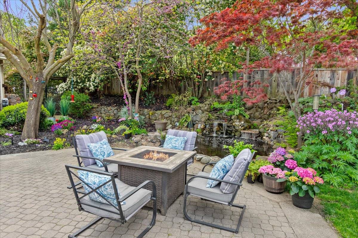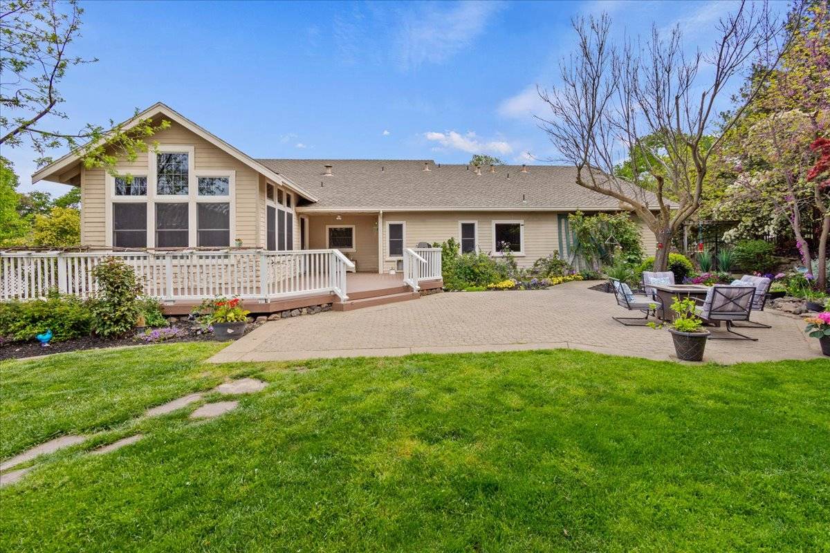 - At approximately 2,627 square feet, the main home offers single story living, with 3 beautiful bedrooms (2 + den) and a spectacular sunroom with vaulted, wood beamed ceiling and of course, an abundance of windows. A spacious great room is the heart of the home, where all can gather around a large center island, in a kitchen fit for a gourmet chef. The front of the home features a welcoming, oversized front porch. It's the perfect spot to sit and take in the natural beauty of the front yard & the view of Mount Diablo. The private backyard area is a gardener's paradise! Exit the sunroom or the primary suite onto an expansive deck that overlooks this amazing outdoor space that offers a huge, paver patio, large lawn areas, a tranquil pond with cascading waterfall, raised garden beds, and all of it is surrounded by artistically placed, mature trees & vines, creating the ultimate backyard setting. The main home features a separate gated entrance with a large paver driveway leading to a 3 car attached garage.