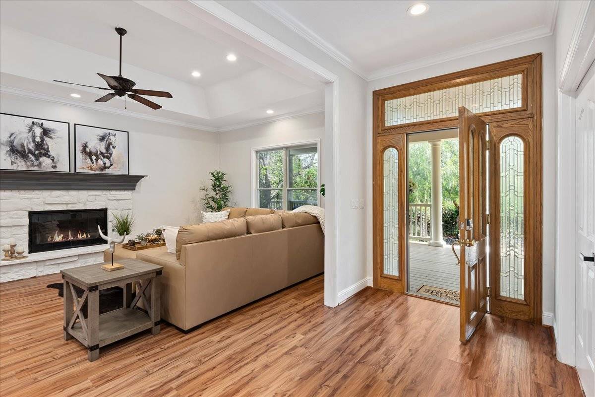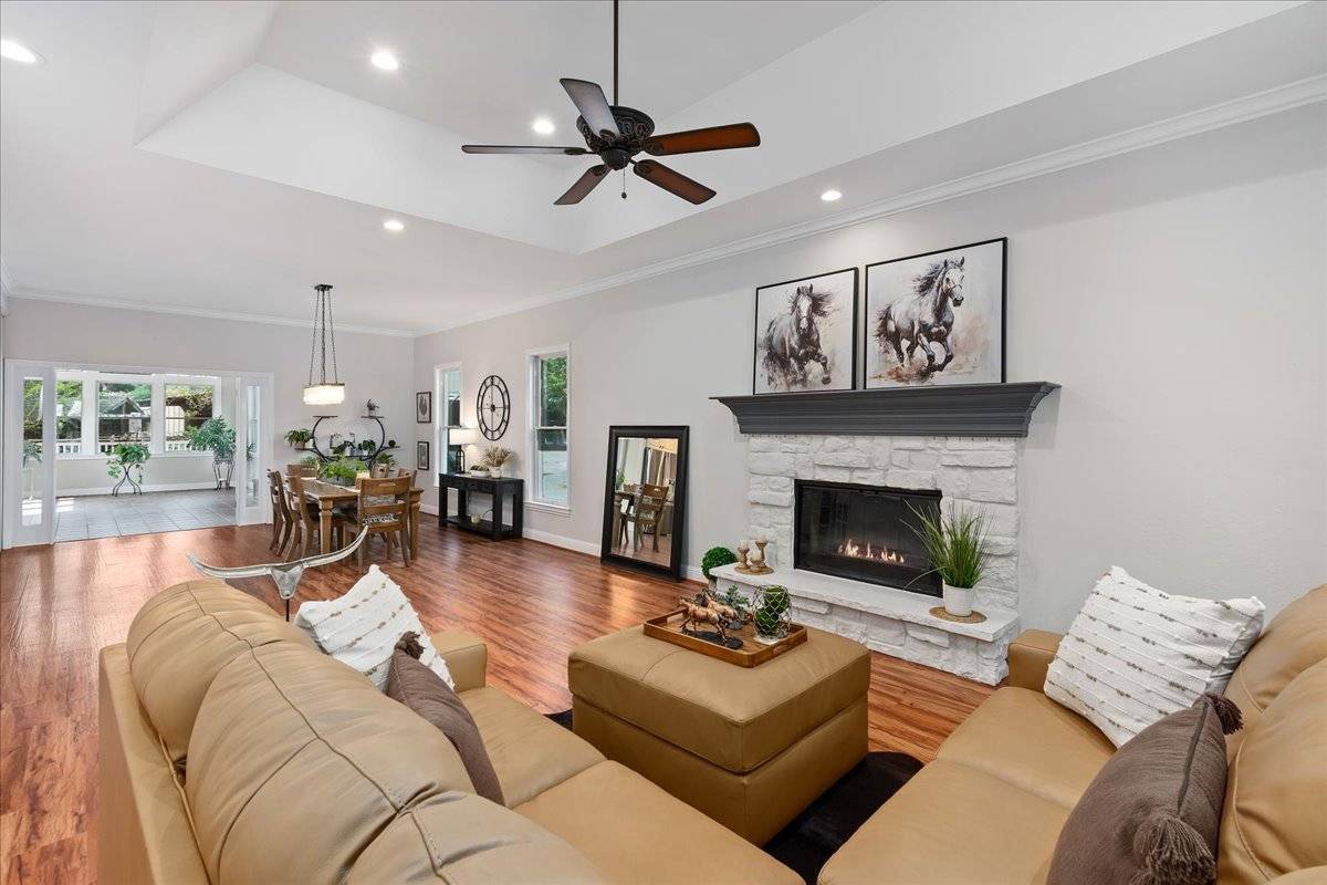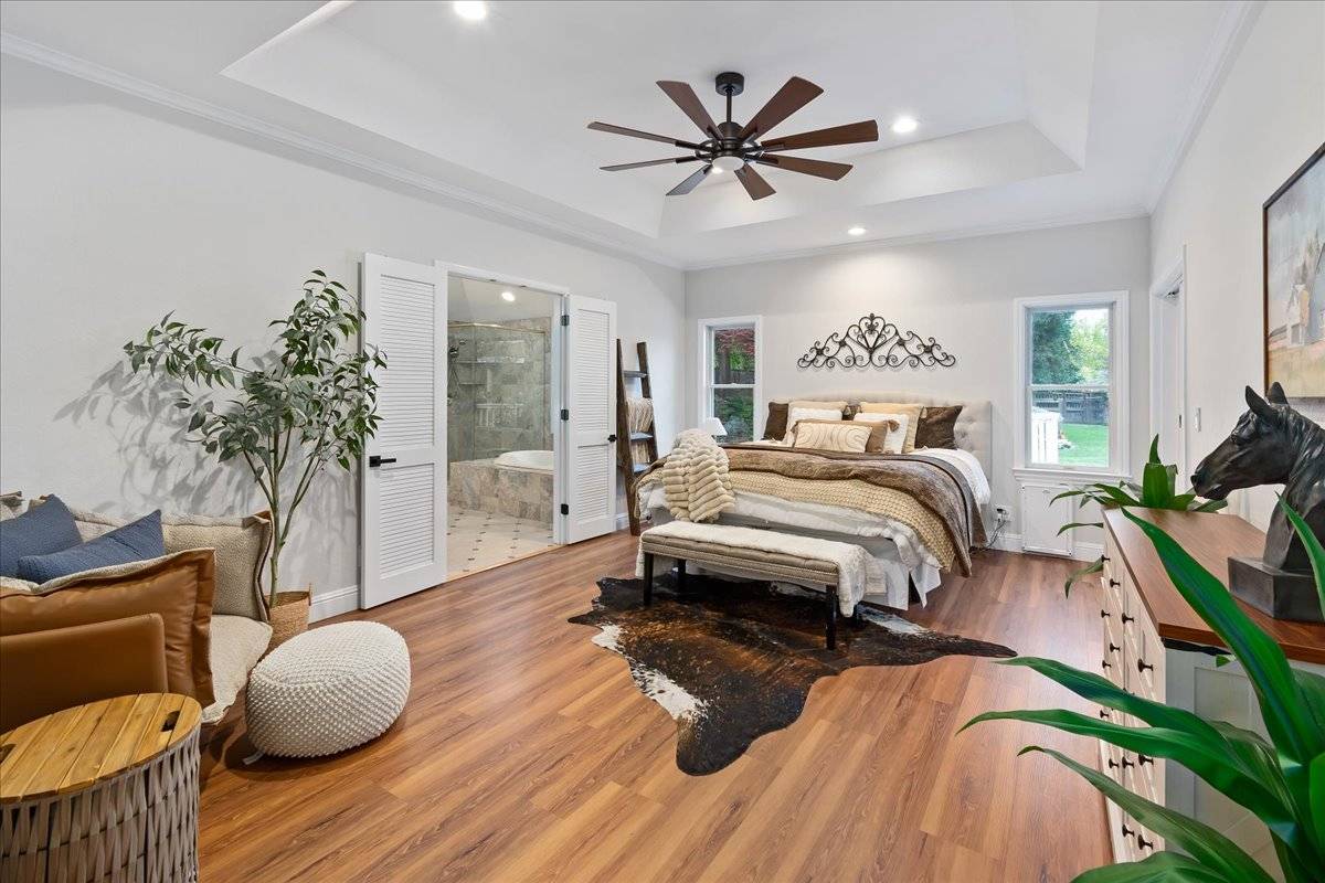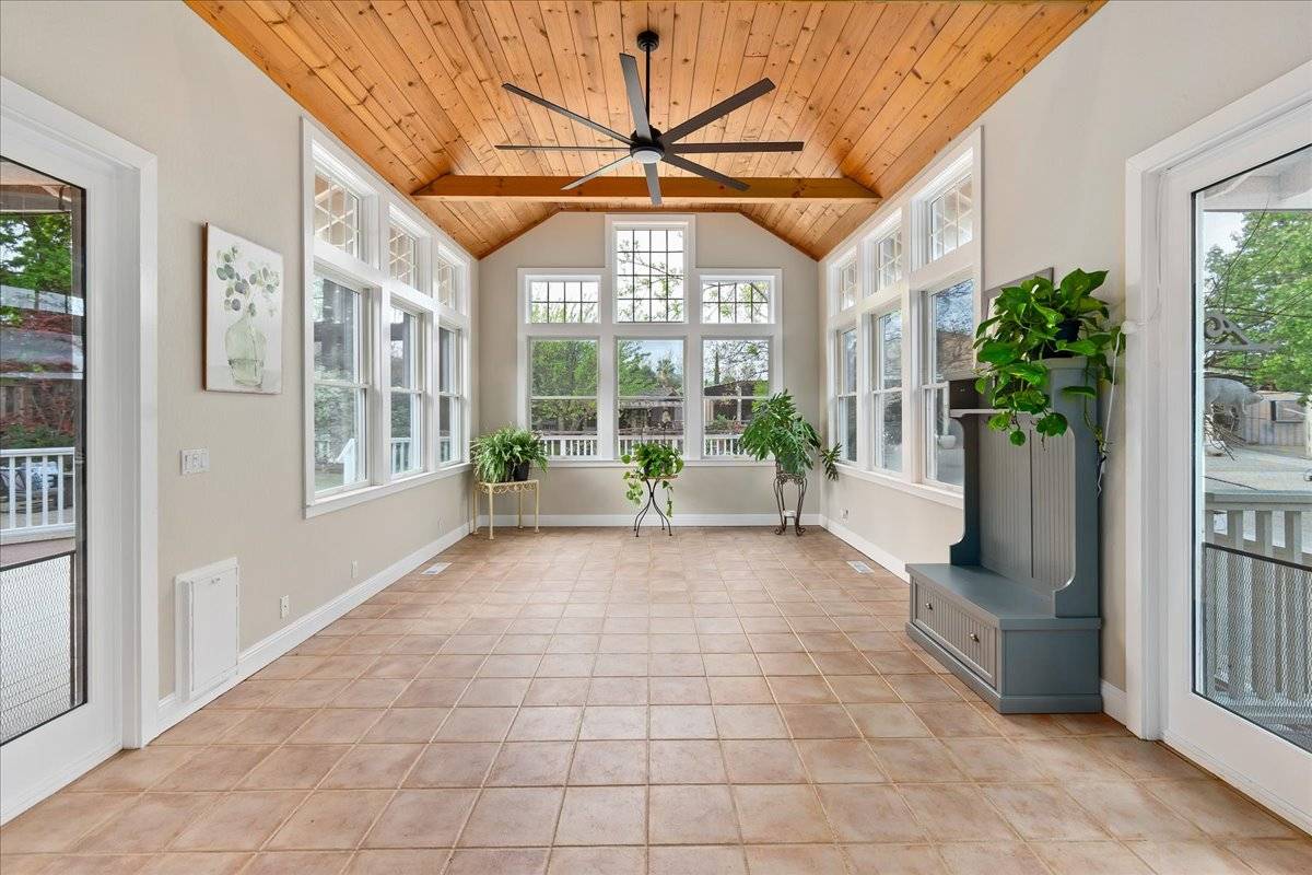 - At approximately 2,627 square feet, the main home offers single story living, with 3 beautiful bedrooms (2 + den) and a spectacular sunroom with vaulted, wood beamed ceiling and of course, an abundance of windows. A spacious great room is the heart of the home, where all can gather around a large center island, in a kitchen fit for a gourmet chef. The front of the home features a welcoming, oversized front porch. It's the perfect spot to sit and take in the natural beauty of the front yard & the view of Mount Diablo. The private backyard area is a gardener's paradise! Exit the sunroom or the primary suite onto an expansive deck that overlooks this amazing outdoor space that offers a huge, paver patio, large lawn areas, a tranquil pond with cascading waterfall, raised garden beds, and all of it is surrounded by artistically placed, mature trees & vines, creating the ultimate backyard setting. The main home features a separate gated entrance with a large paver driveway leading to a 3 car attached garage.