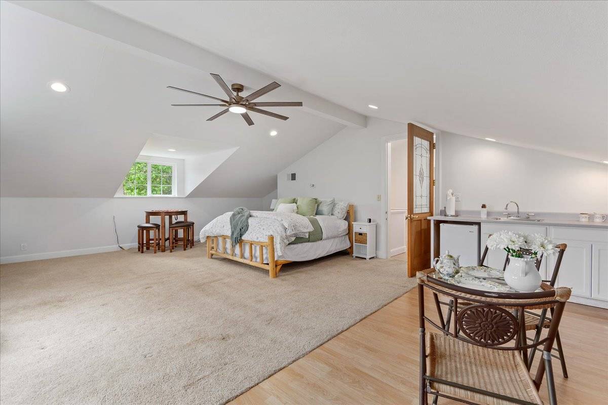 - The secondary structure has an oversized 2 stall garage, a workshop and approximately 1,775 square feet of finished space, currently used as a mix of living & office space. There are 2 very large rooms and a half bathroom on the ground floor, as well as a large studio, full bathroom and huge loft areas, upstairs. Be sure to see the property website with floor plans, video & 3-D tours.