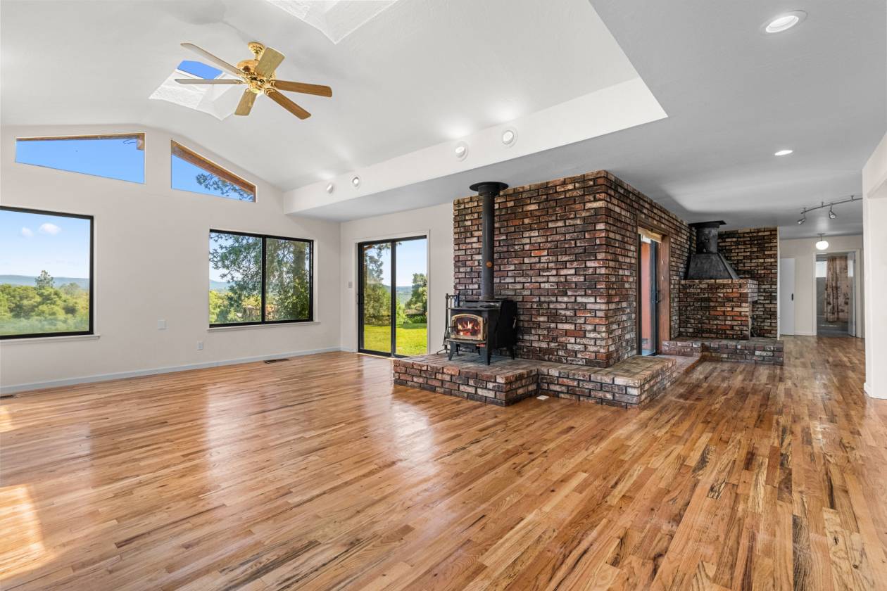 - The charming 3-bedroom, 2-bath main house spans approximately 2,080 sq ft and is filled with natural light. Recent updates include fresh interior paint and beautifully refinished real hardwood floors. Large windows frame stunning views from nearly every room, creating a seamless connection between indoors and the surrounding landscape. Whether you're enjoying a cozy evening by the fireplace or sipping morning coffee on the deck, the home offers comfort and beauty in equal measure.
