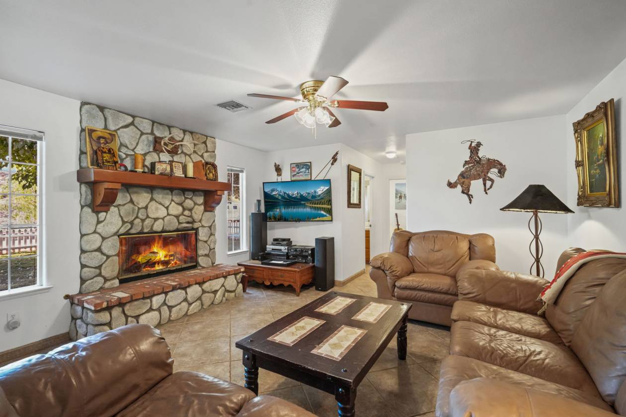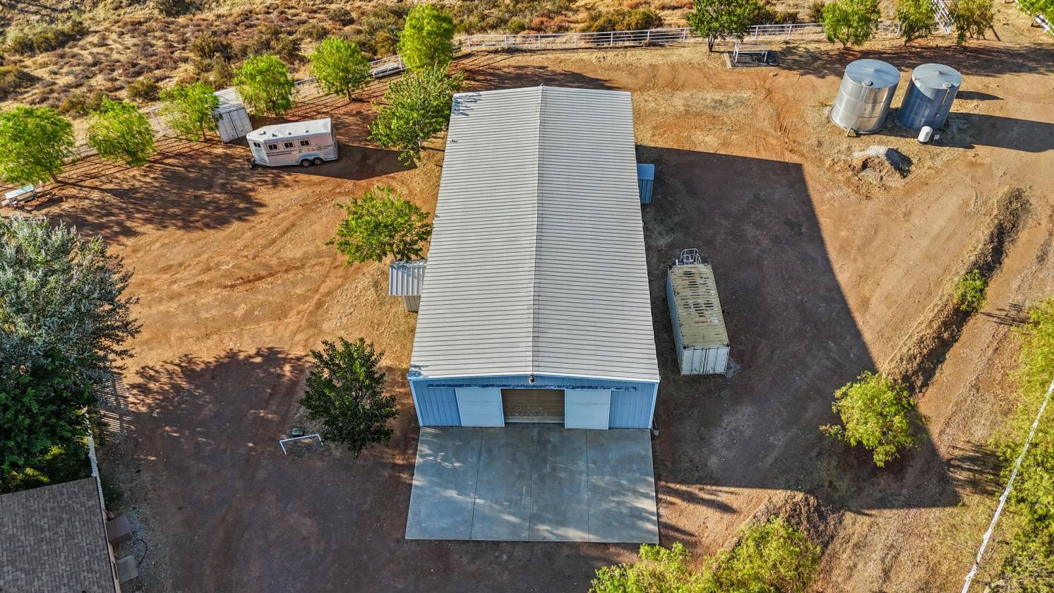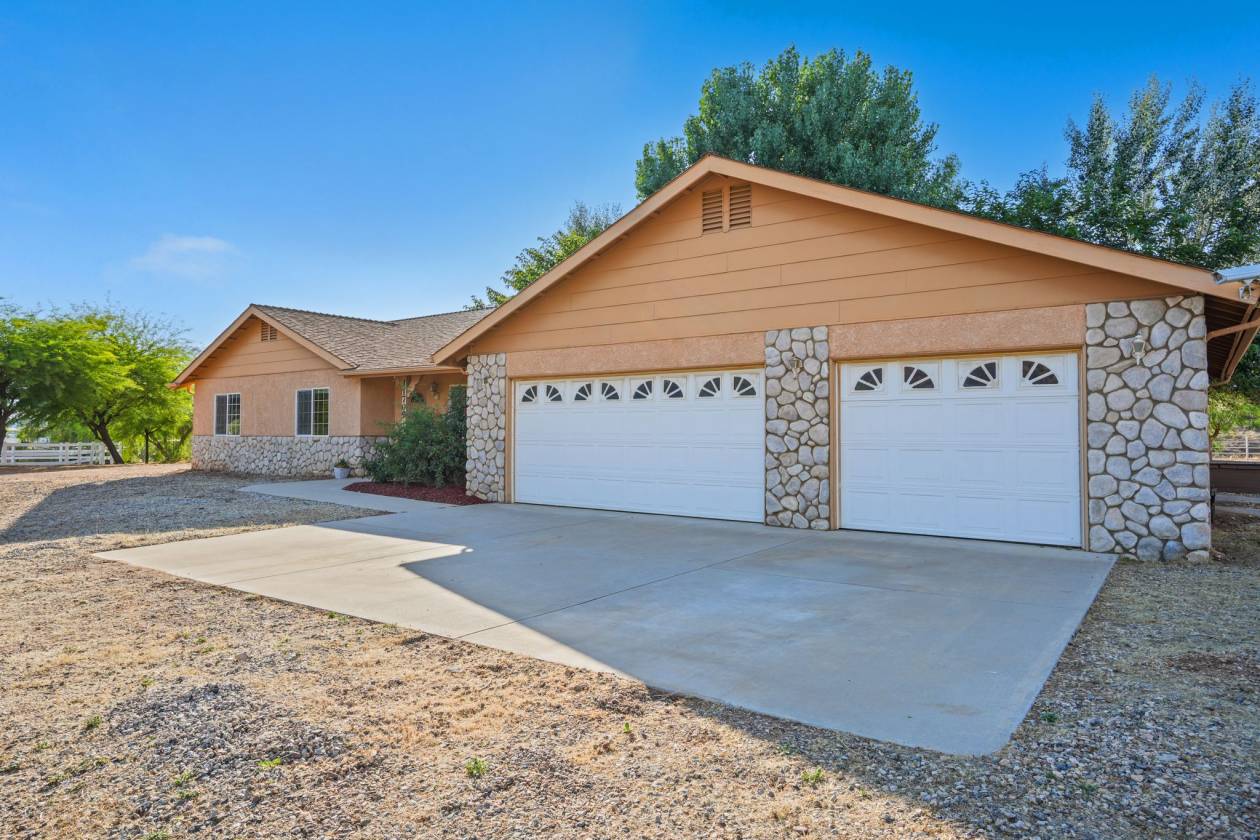 Rare Hilltop, Equestrian Estate with an Industrial-Scale Workshop. This spectacular hilltop estate —comprised of two parcels (APNs: 3214-018-027 & 3214-018-029) totaling over 17.5 acres—combines a spacious custom home, 360-degree panoramic views, a fully permitted industrial-scale workshop, and an adjacent lot, creating a parklike sanctuary with room to grow. A gated, private driveway leads into the approx. 1,800 sq. ft. residence which is designed to maximize privacy while showcasing the stunning natural landscape. It features three bedrooms, three bathrooms, and an office with a private entrance—perfect for working from home. Additional highlights include a 3-car garage, recently serviced septic system, new HVAC, new kitchen appliances, and exterior lighting on the buildings and driveway. The fenced backyard has lush grass, mature shade trees. The crown jewel of this estate is the fully permitted workshop—an incredibly versatile facility ideal for a variety of interests. The building is currently being used as a soundstage and includes two private offices, a bathroom, a spacious second-story storage loft, full 220-amp power, and an oversized RV door. For equestrian enthusiasts, the property features a riding arena, paddock, and ample space for horses to roam. Water resources include two 7,500-gallon storage tanks and a private well. This remarkable property is more than a home—it’s a park, ranch, equestrian facility, hobbyist playground, film location with soundstage, and business opportunity. A rare offering where space, nature, and opportunity come together to support the lifestyle you've been looking for. Saddle up and let’s go. Make your dreams come true.