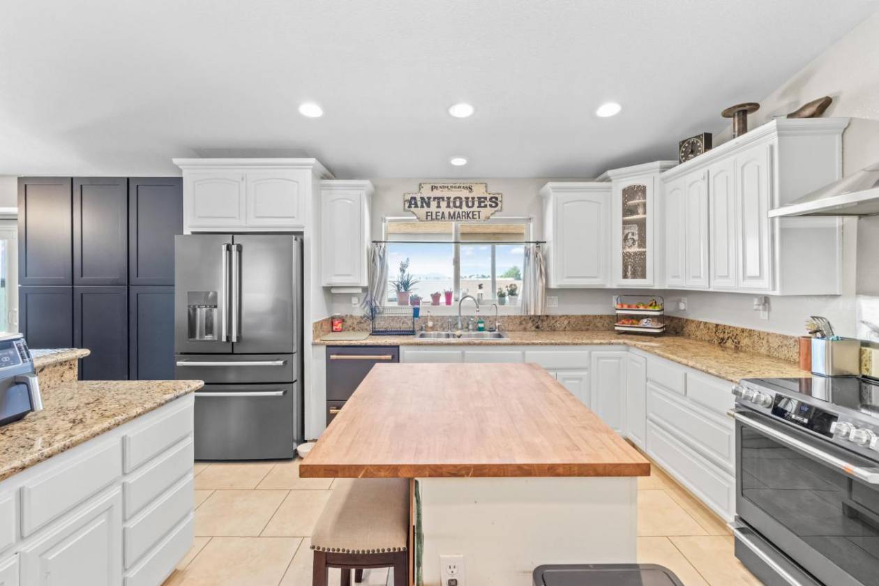 BEYOND ESTATES PRESENTS: PRIVATE RANCH RETREAT WITH SOLAR, RV ACCESS, AND A HUGE LOT! Set on a fully fenced, oversized lot, this beautifully updated single-story home blends comfort, space, and outdoor freedom. Inside, enjoy vaulted ceilings, tile flooring, and an inviting open-concept layout with a cozy fireplace and natural light throughout. The remodeled kitchen features white cabinetry, granite counters, stainless steel appliances, and a spacious breakfast bar, ideal for gatherings or daily meals. Step outside to a covered patio with string lighting and lounge space, perfect for relaxing or entertaining. The expansive backyard offers endless possibilities with RV access, solar panels, storage sheds, and room to build, expand, or create your dream setup. Whether you're into gardening, toys, animals, or extra workspaces, there's room for it all here. With a 3-car garage, gated driveway, and space to roam, this unique property delivers flexibility and function in one. See it in person and imagine the lifestyle it offers; schedule your tour today!