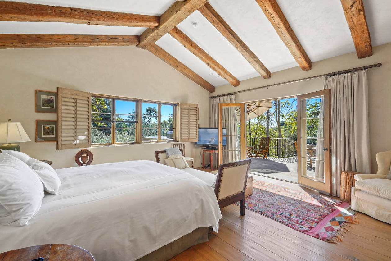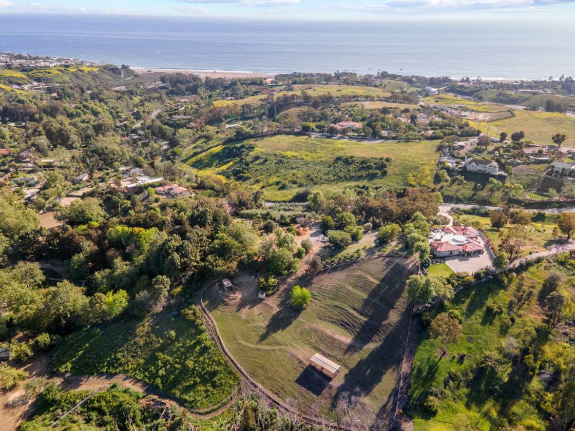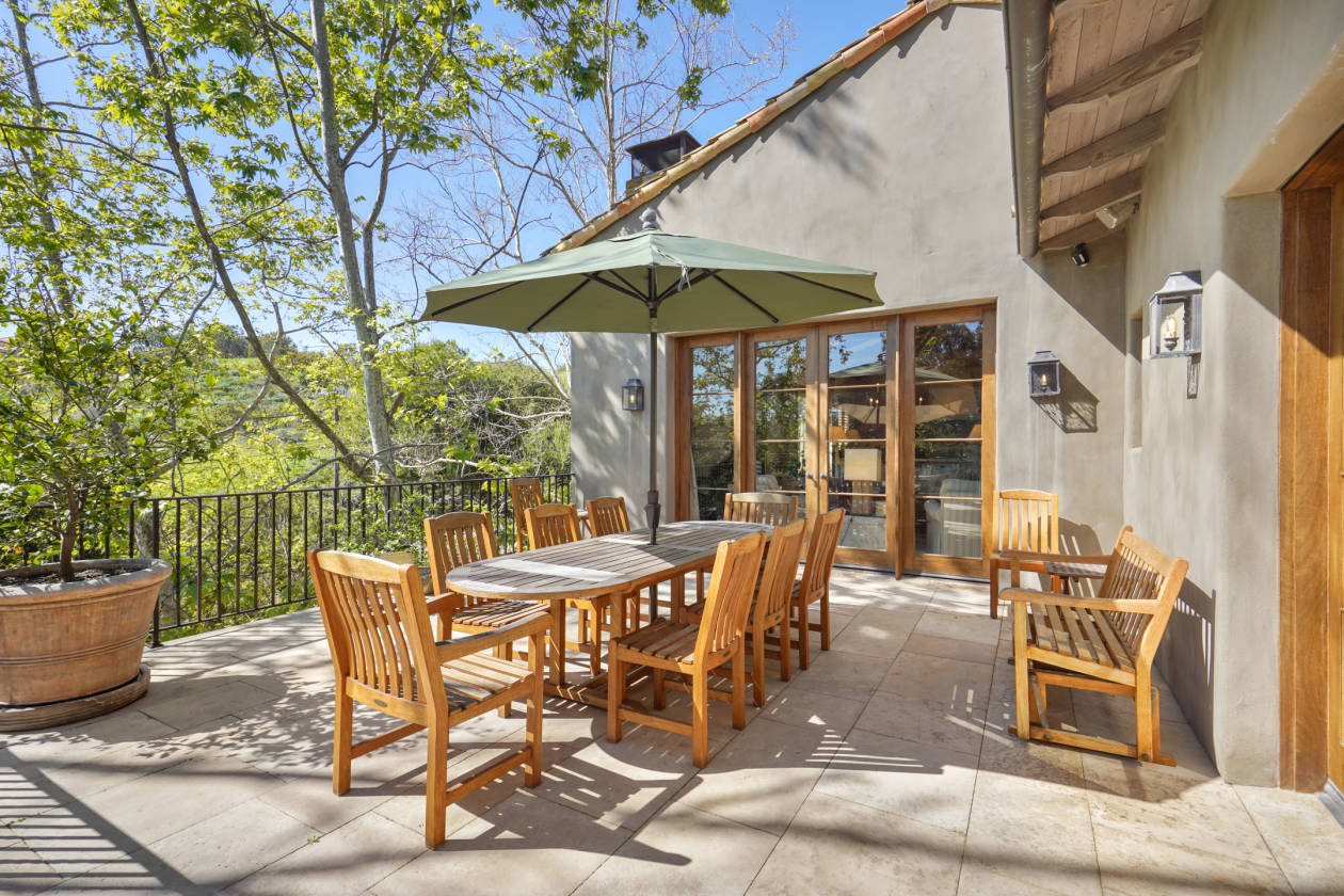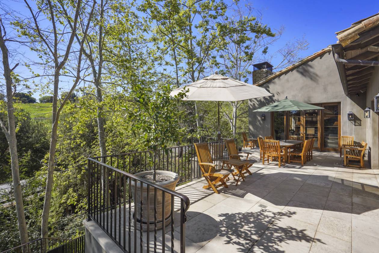 Rural Tuscany meets Malibu! This completely custom Italian Farmhouse and adjacent olive grove total 2.63 acres moments from Zuma beach while feeling worlds away. Designed by Appleton Partners LLP with the finest materials imported from Italy and exquisite craftsmanship that is displayed in every detail. Enter through wooden gates to a garden-like center courtyard and large auto court with 5 garage spaces that provide ample room for cars, tractors, livestock trailers, or a custom workshop. Luxury interior finishes include plank hardwood floors, hand-hewn wood beams, gates and cabinets made from old barn siding, and hand-plastered stucco walls throughout. The great room has oversized windows that capture the mature sycamore and pine trees, allowing for beautiful natural light while maintaining privacy. The living room features a Limestone wood-burning fireplace and gently flows into a dining area and Chef’s kitchen with a Wolf range, Sub-Zero fridge, and Miele oven with an adjoining butler’s kitchen. French doors draw you out onto a terrace with custom Italian tile and a built-in barbecue overlooking the olive grove and serene backyard. The entry-level primary suite features a fireplace, peaceful views, terrace access, and an en-suite bathroom with a soaking tub. Downstairs, the second primary suite has access to a ground-level terrace with a water fountain. There are two additional en-suite guest bedrooms, a gym with a sauna, and a den with a kitchenette, all with access to tranquil outdoor spaces surrounded by mature trees. In the courtyard, there’s a detached wine cellar tower made of hand-laid stone with a climate-controlled wine fridge, powder room, and a bonus room on the second level perfect for an office or studio. The adjoined parcel features an olive grove next to the home and a flat pad, currently used as a vegetable garden, with a peaceful ocean view. This property is ideally situated minutes from sandy beaches, local markets, and schools. Don’t miss your chance to purchase an extraordinary custom home in one of Malibu’s most coveted neighborhoods.