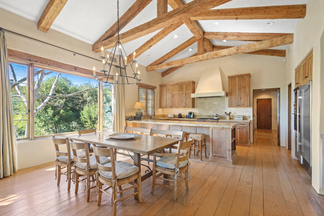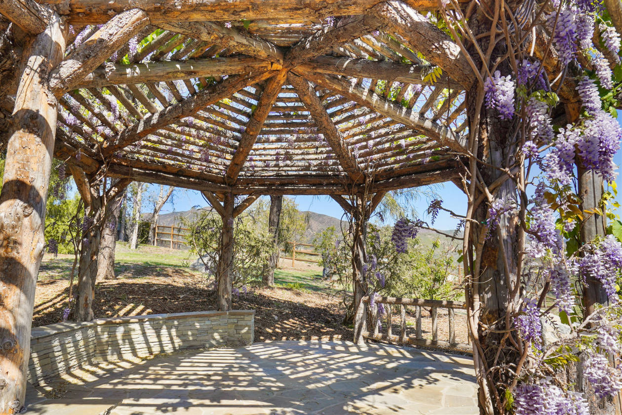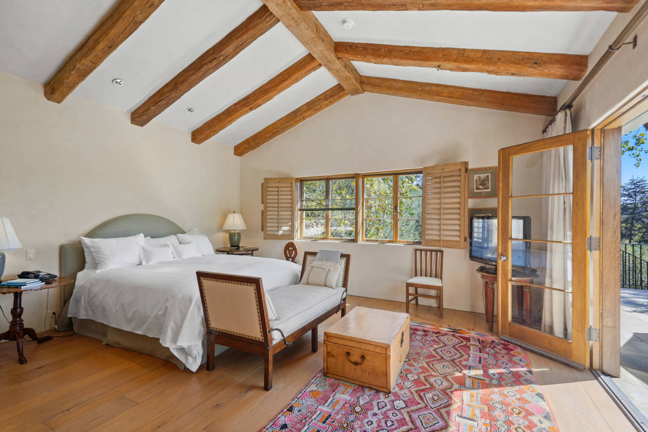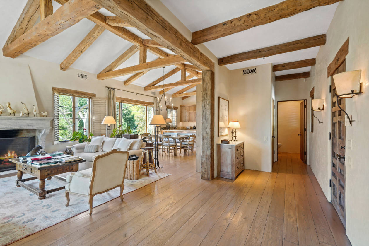 Rural Tuscany meets Malibu! This completely custom Italian Farmhouse and adjacent olive grove total 2.63 acres moments from Zuma beach while feeling worlds away. Designed by Appleton Partners LLP with the finest materials imported from Italy and exquisite craftsmanship that is displayed in every detail. Enter through wooden gates to a garden-like center courtyard and large auto court with 5 garage spaces that provide ample room for cars, tractors, livestock trailers, or a custom workshop. Luxury interior finishes include plank hardwood floors, hand-hewn wood beams, gates and cabinets made from old barn siding, and hand-plastered stucco walls throughout. The great room has oversized windows that capture the mature sycamore and pine trees, allowing for beautiful natural light while maintaining privacy. The living room features a Limestone wood-burning fireplace and gently flows into a dining area and Chef’s kitchen with a Wolf range, Sub-Zero fridge, and Miele oven with an adjoining butler’s kitchen. French doors draw you out onto a terrace with custom Italian tile and a built-in barbecue overlooking the olive grove and serene backyard. The entry-level primary suite features a fireplace, peaceful views, terrace access, and an en-suite bathroom with a soaking tub. Downstairs, the second primary suite has access to a ground-level terrace with a water fountain. There are two additional en-suite guest bedrooms, a gym with a sauna, and a den with a kitchenette, all with access to tranquil outdoor spaces surrounded by mature trees. In the courtyard, there’s a detached wine cellar tower made of hand-laid stone with a climate-controlled wine fridge, powder room, and a bonus room on the second level perfect for an office or studio. The adjoined parcel features an olive grove next to the home and a flat pad, currently used as a vegetable garden, with a peaceful ocean view. This property is ideally situated minutes from sandy beaches, local markets, and schools. Don’t miss your chance to purchase an extraordinary custom home in one of Malibu’s most coveted neighborhoods.