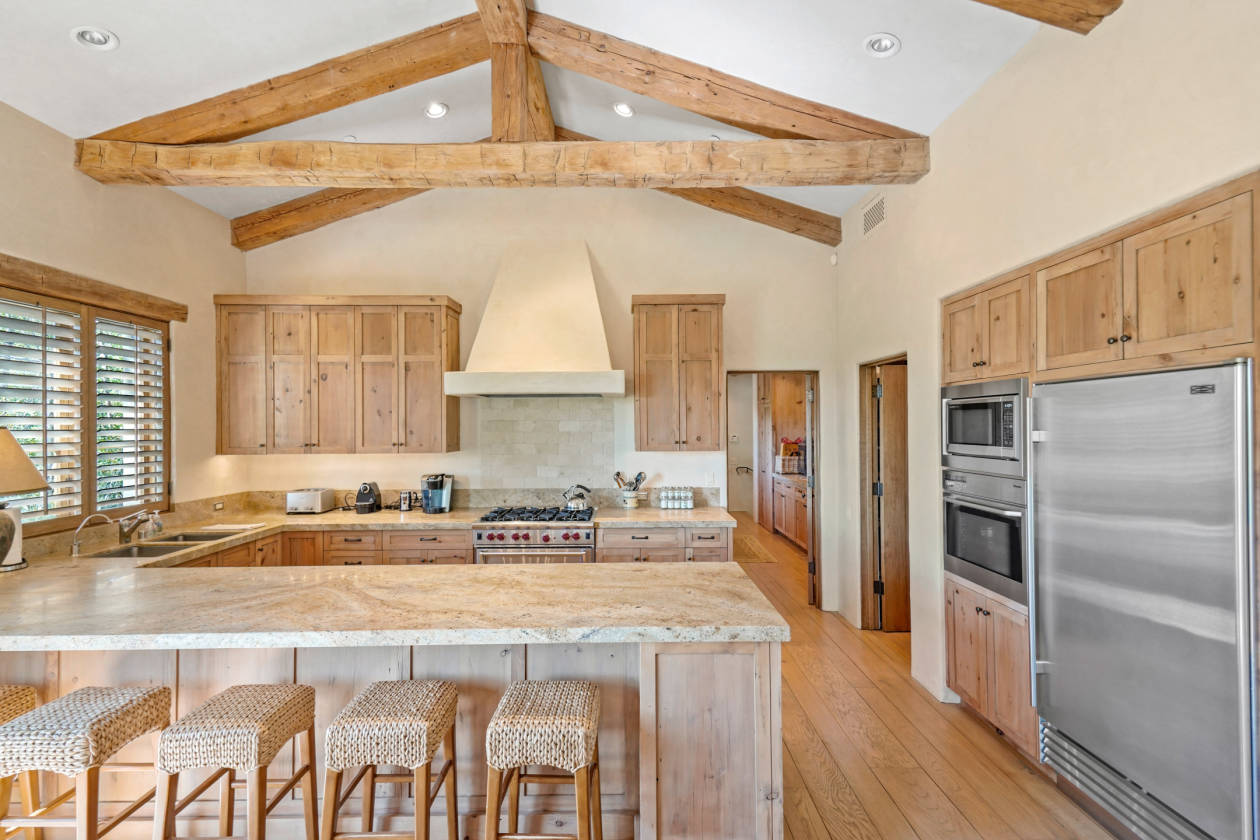 - Chef’s kitchen with a Wolf range, Sub-Zero fridge, and Miele oven with an adjoining butler’s kitchen.