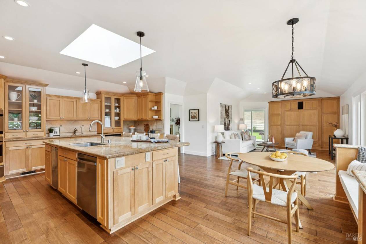 Experience a relaxed lifestyle in this tastefully remodeled 4,641 sq ft farmhouse property on one of Novato's most desirable & peaceful lanes. A circular drive welcomes you offering ample parking for 15+, while a second driveway provides access to the barn area. Designed for easy indoor-outdoor living, the mostly single-level layout features 4 bedrooms & 4.5 baths, inc. a separate wing with a private entrance, ideal for extended family, guests, or a potential JR ADU. The fabulous living room, with 17' ceilings, has been a host for live concerts, offering incredible acoustics. Natural light fills the living spaces with large, picturesque windows. The chef's kitchen creates a true great-room experience with an oversized island and generous entertaining space. The primary suite is a bright, peaceful retreat with a custom walk-in closet and spa-inspired bath with a connecting mudroom (possible 2nd laundry room option). Step outside to take in sweeping views, a sparkling pool, expansive lawn, multiple patios, a pergola - perfect for a magical evening gathering under the stars. The property is equestrian-ready with a 2+ stall barn/pasture, but the space also has endless possibilities, such as guest house, sport court, or additional garage space. Just minutes to Hwy 101/37.