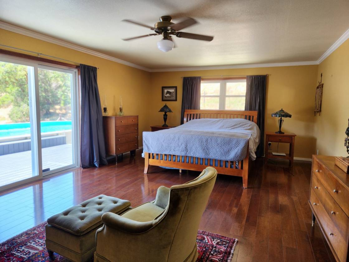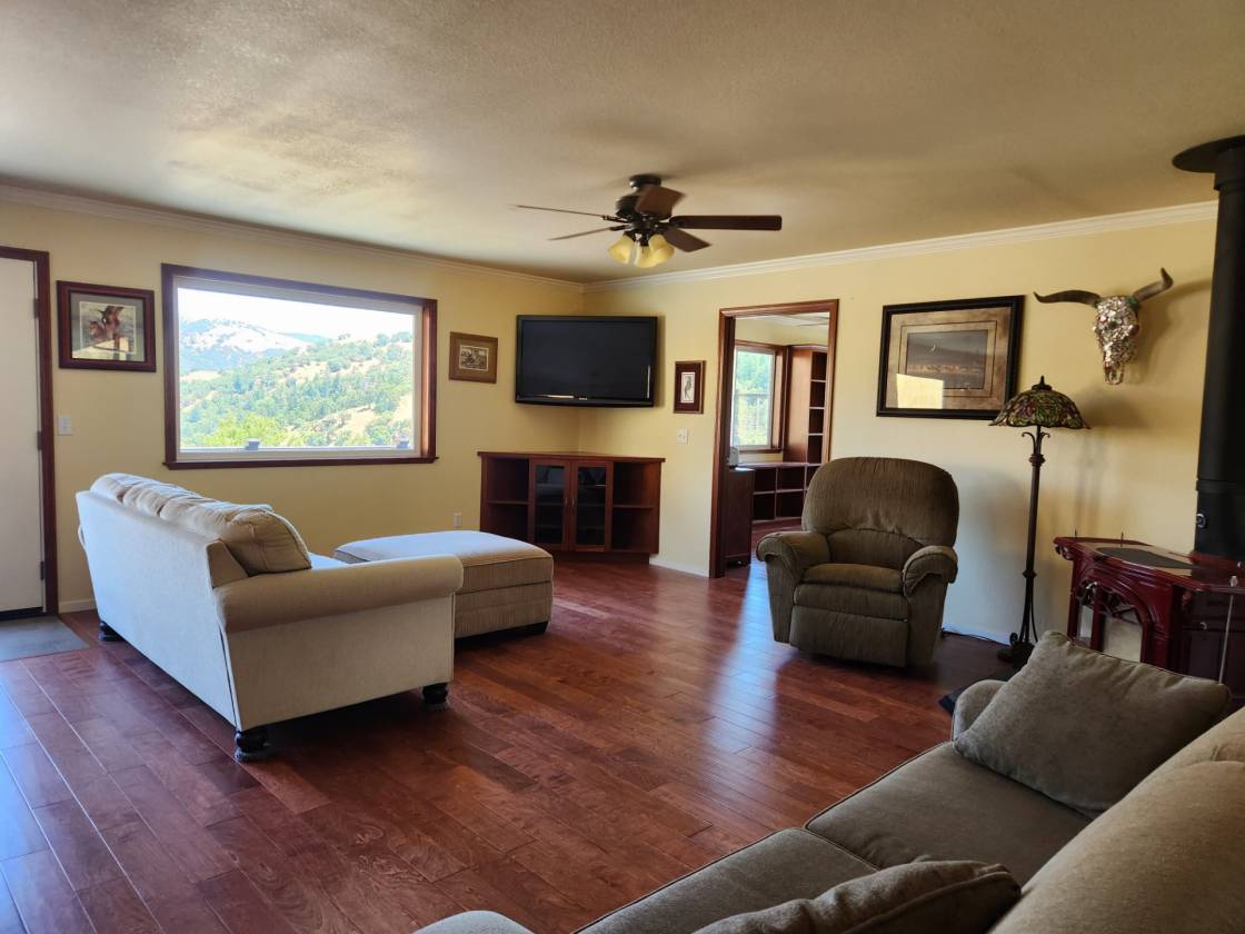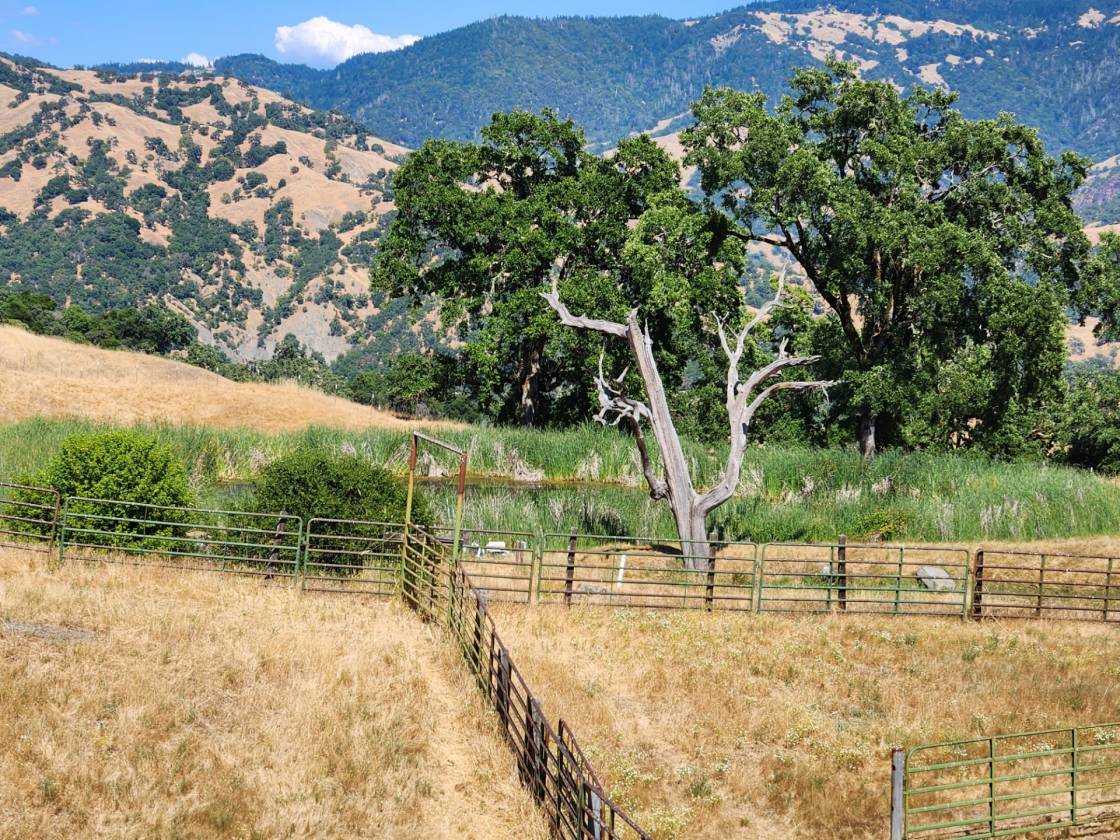 550+/- Acre Ranch Property. Panoramic big mountain and Eel River Canyon views. Cattle/Horse and Hunting Ranch maintained to perfection. Come ride here. Lovely 2 bedroom 2 bath custom built home featuring a swimming pool and wrap around deck. All of the cabinets are custom maple cherry stained. The open floor plan runs through the kitchen and living room, stainless appliances, lots of cabinet space in the kitchen, island counter with a sink and custom lighting fixtures. There is pretty laminate flooring throughout. There is an office with built in shelves. The master bedroom suite has a private bathroom with double sinks, shower and built in cabinets. The sliding glass door opens onto the deck, pool and all the awesome views. There is a second bedroom with laminate floors and a guest bath. The sunroom is an entrance to the home, stores, shoes and clothing similar to a utility room. Also there is a laundry room with cabinets and tile floor. The yard is fenced around the house. There are barns for equipment, horses, hay storage and shop. This property is set up for cattle and horses. There are holding corrals, pens, chutes powder river panels, water tanks in pastures, pond and spring water. The power is run by 72 very efficient solar panels with battery backup and generator if needed. All top of the line design and professionally installed. Excellent hunting area, wildlife abounds here.