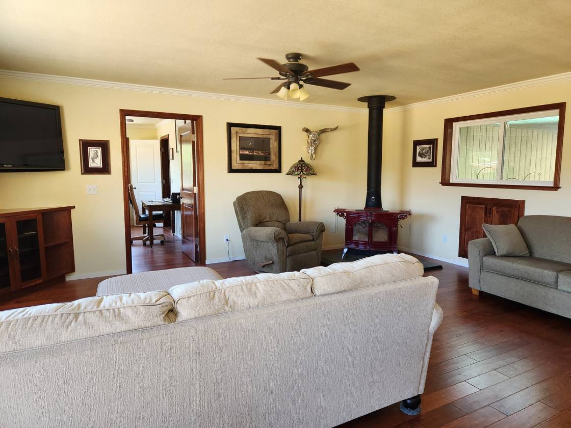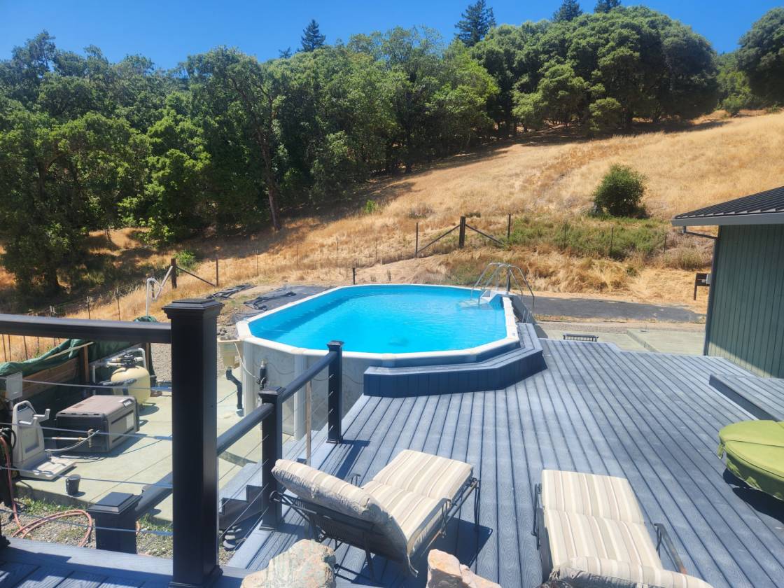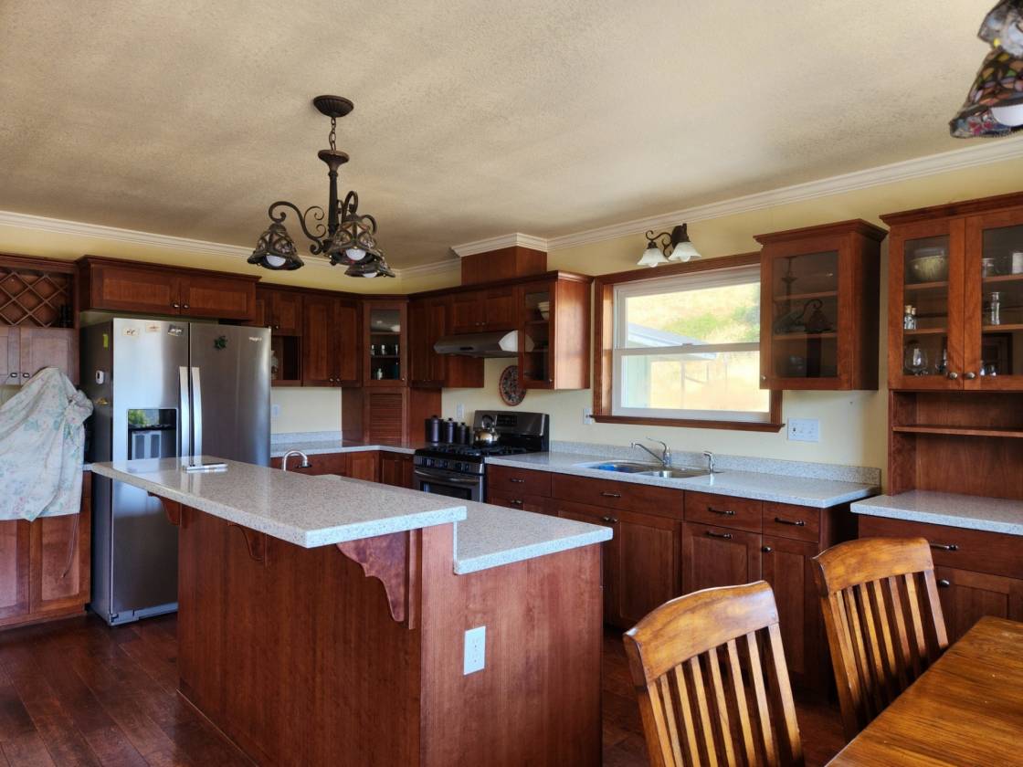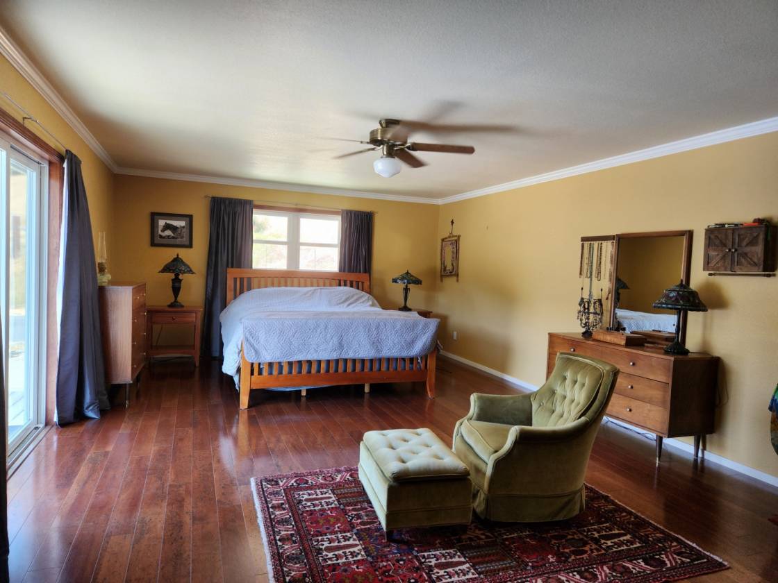 550+/- Acre Ranch Property. Panoramic big mountain and Eel River Canyon views. Cattle/Horse and Hunting Ranch maintained to perfection. Come ride here. Lovely 2 bedroom 2 bath custom built home featuring a swimming pool and wrap around deck. All of the cabinets are custom maple cherry stained. The open floor plan runs through the kitchen and living room, stainless appliances, lots of cabinet space in the kitchen, island counter with a sink and custom lighting fixtures. There is pretty laminate flooring throughout. There is an office with built in shelves. The master bedroom suite has a private bathroom with double sinks, shower and built in cabinets. The sliding glass door opens onto the deck, pool and all the awesome views. There is a second bedroom with laminate floors and a guest bath. The sunroom is an entrance to the home, stores, shoes and clothing similar to a utility room. Also there is a laundry room with cabinets and tile floor. The yard is fenced around the house. There are barns for equipment, horses, hay storage and shop. This property is set up for cattle and horses. There are holding corrals, pens, chutes powder river panels, water tanks in pastures, pond and spring water. The power is run by 72 very efficient solar panels with battery backup and generator if needed. All top of the line design and professionally installed. Excellent hunting area, wildlife abounds here.