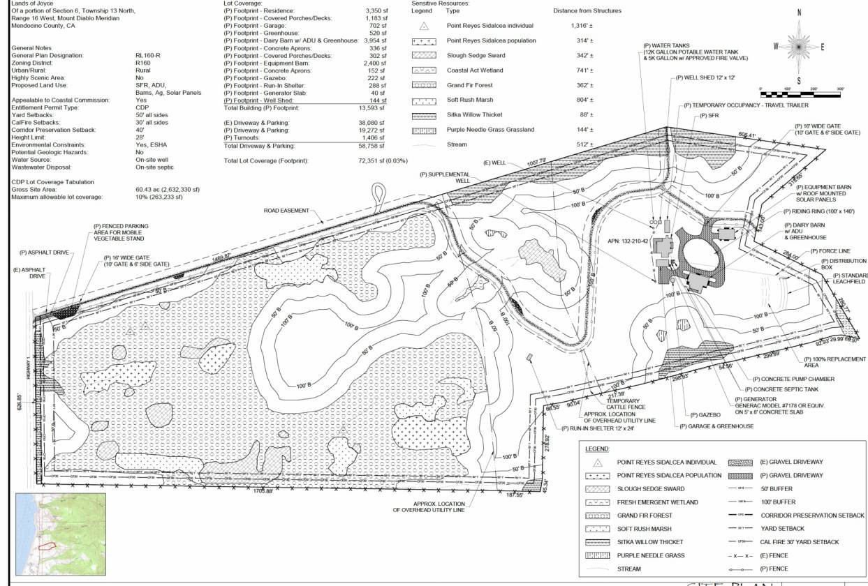 Ready to build your dream home along the Pacific Coast Highway? Now is your chance on this 60+- acres of oceanview land with a conditionally approved Coastal Development Permit for a 3 bedroom/3 bath home with 4,300 sq.ft. of living space, 1,200 sq.ft. accessory dwelling unit, 2,700+ sq.ft. equestrian barn and 2,400 sq.ft. equipment barn. Build part of it or build it all, your option! Enjoy panoramic views that stretch to the Point Arena Lighthouse and ocean beyond. A prime property for horses or livestock with large pasture areas. Close to Alder creek and beach for fishing, the town of Manchester and fine restaurants in Elk. Once your home is built sit, relax, and enjoy the wildlife from passing whales, great blue heron, deer, red hawks and so much more! The property has the option to be part of the Irish Beach HOA for $250/annually which will give the owners easy access to the private beach access offered in Irish Beach.