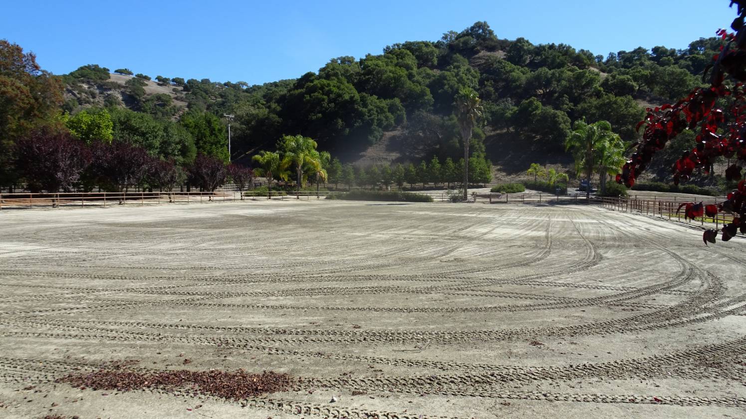- Large and well-groomed arena (approx. 260' x 150') with river sand