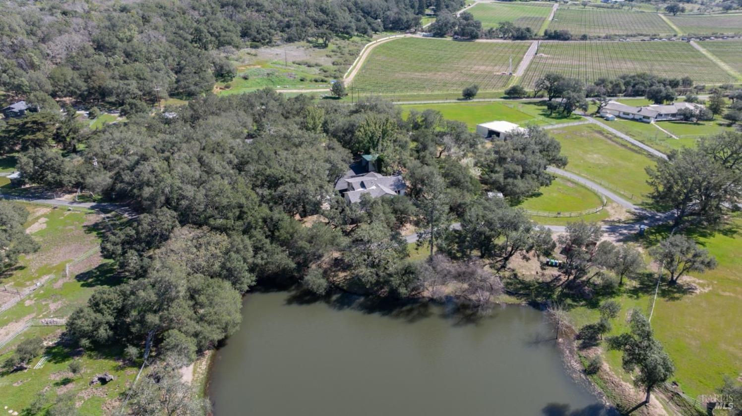 - Extensive rural acreage surrounded by views of neighboring vineyards, mountains, pastures & seasonal pond. A majority of the surrounding properties are premiere vineyards from estates such as Kenzo and Palmaz. Lovely bridal trail encircles the pasture and pond. Hiking trails to a viewpoint overlooking Napa Valley and the San Francisco Bay.