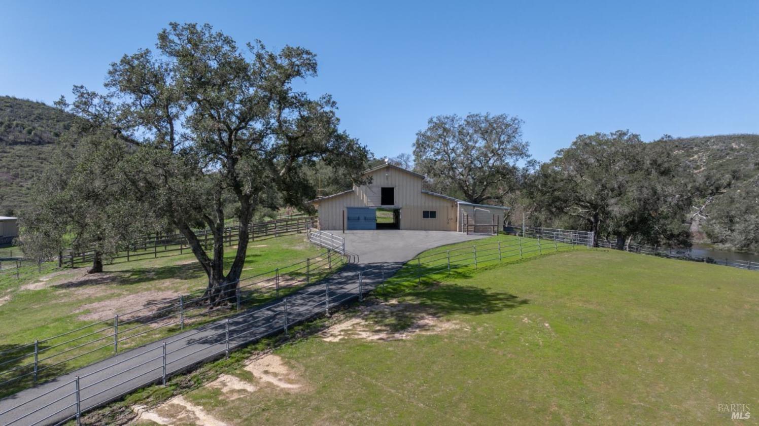 - The property features a state-of-the-art indoor arena (approx. 25,000 sq ft), outdoor arena, round pen, large barn, small barn & hay shed situated on a nearly 30-acre lot.