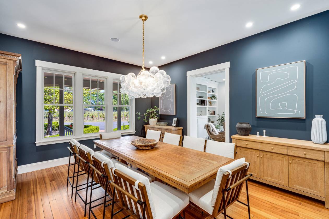 Tucked away on the valley floor just minutes from downtown Napa, the 16 acre Milliken Creek Vineyard Estate offers privacy and a welcoming place for friends and family to be together. The primary residence spans more than 5,300 sq.ft with 6 bedrooms and 5 bathrooms, a grand entrance and soaring ceilings. The newly restyled living and dining rooms blend style and panache, offering numerous inviting places to dine and gather. A 1,000-bottle wine cellar, spacious pantry with a backup refrigerator and deep freeze provide ease of entertainment and daily organization. The second story primary suite enjoys expansive views over the vineyard with sunrise on one side and sunset on the other. Radiant floors and radiators allow for zoned warming with forced air cooling. The large swimming pool/spa form the heart of the outdoor entertaining areas, complimented by a sport court, disc golf course, pizza oven and dining pergola. A two-car garage with a charming guest suite above complete the living areas of this gorgeous home. The vineyard is cared for by Vine Dresser and has 12 total acres of vineyard including 2 acres of Chardonnay grafted to Old Wente Clone in 2025, 2 acres of Sauvignon Blanc Clone 2 planted in 2018 and 8 acres of Sauvignon Blanc Clone 2 planted in 1998.