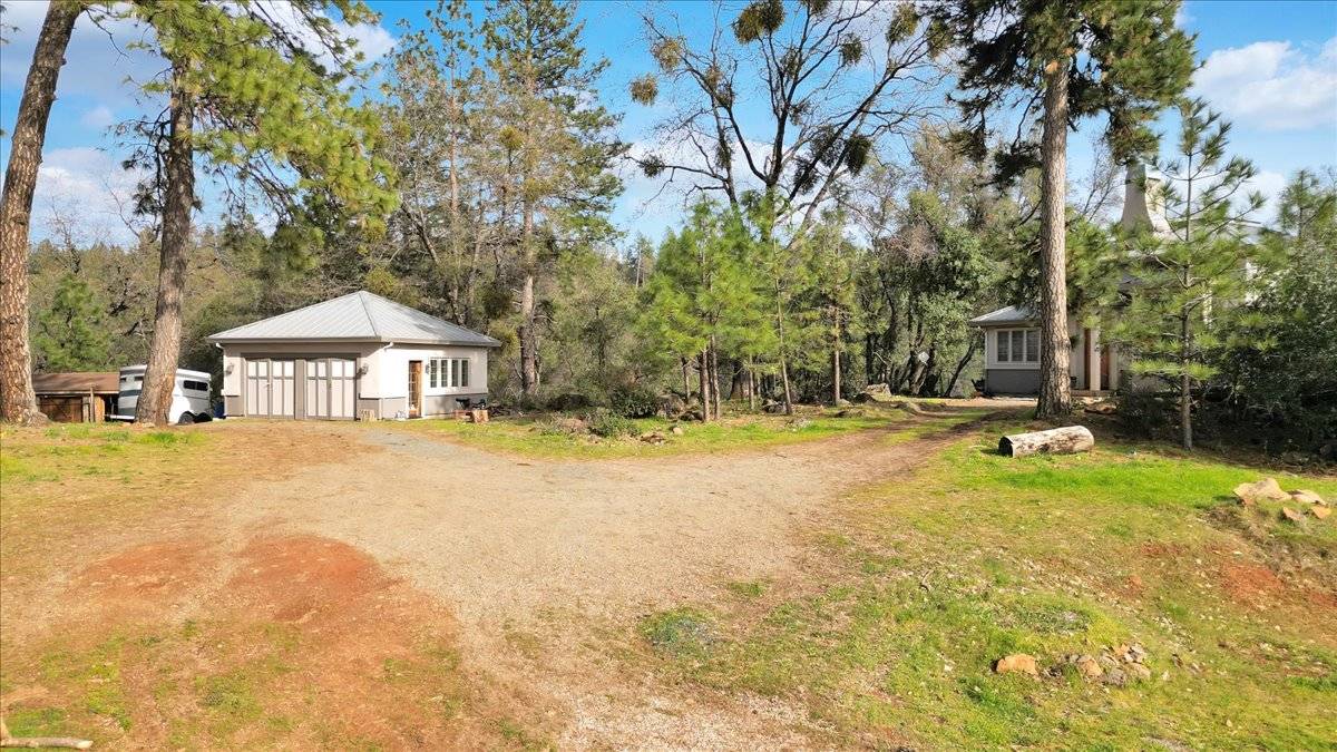 - Giddy'up to blaze the trails on this 40 beautiful acres with a cottage full of artistic details. This charming residence exudes a fairy tale feel and feels larger than its square footage suggests. The cottage was originally intended as a guest house & the property is ready for expansion with a 4-bedroom septic system, water holding tanks, a 5.34 KW solar system, & 440-amp electrical service. The 40 acres offer potential for a family compound with at least 4 sites with views! Explore hiking paths, relax on the gravel patio with tree round stepping stones, enjoy the picnic area, or tend to the large garden. Built with 2x6 construction, two-tone stucco, and a standing seam metal roof, this home is fire-resilient. The upgraded dual-pane windows & abundant natural light fill this open floor plan. The 2-car garage is partially designed for office use. The barn includes two 12 x 12 stalls & a 10 x 12 tack/feed room, with additional plans available. Just a few miles from schools, shopping, services, & dining, the possibilities are endless, including land division, ranching, a vineyard & more. Assumable loan with your large down. 1031 exchange buyers welcome.