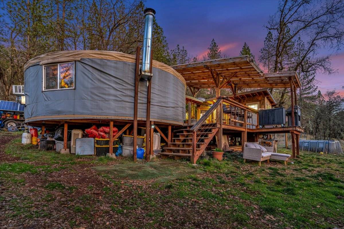 This property is a rare gem! Nestled in a convenient location in Gold Country, history meets so many opportunities! This expansive 263-acre property features a charming historic barn, fully fenced, an agricultural well, and an additional well with a pump house connected to three different potential living spaces on the property. This is a unique opportunity for homesteaders, ranchers, or visionary developers seeking their ideal retreat. With established yurts, and infrastructure this property is perfect for those looking to enjoy a glamping experience, permanent living, or a temporary residence while crafting their dream home. It offers endless possibilities! Fully fenced and ready for use, the land is well-suited for livestock, new home development, or as a peaceful sanctuary to immerse yourself in nature's beauty. Enjoy the tranquility and serenity that this picturesque Northern California landscape has to offer. Conveniently located just minutes from the Bear River, this property also boasts significant investment potential. The ability to split parcels opens the door to even more investment options! With abundant wells and springs available, this property is truly a treasure trove of opportunity ready for someone to stay, build, and make it their dream compound!