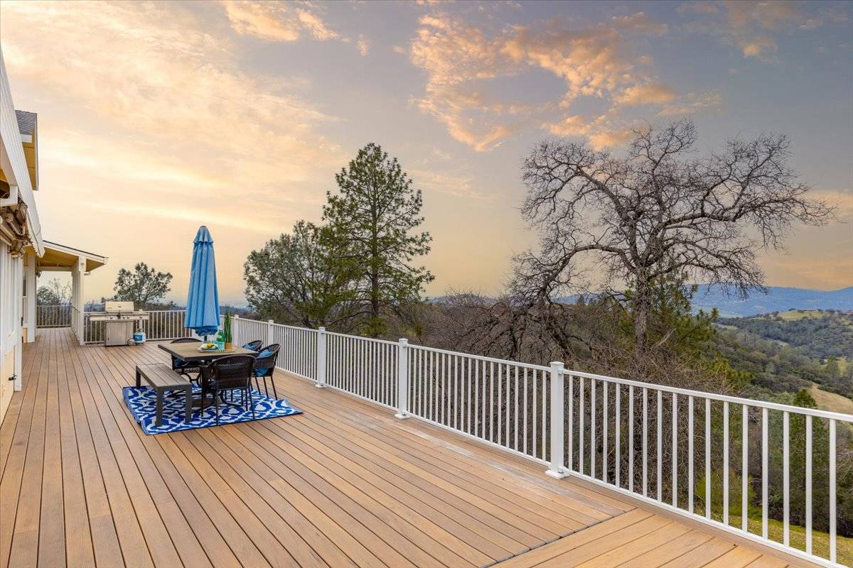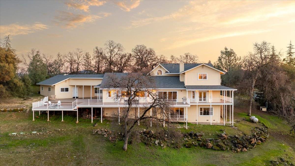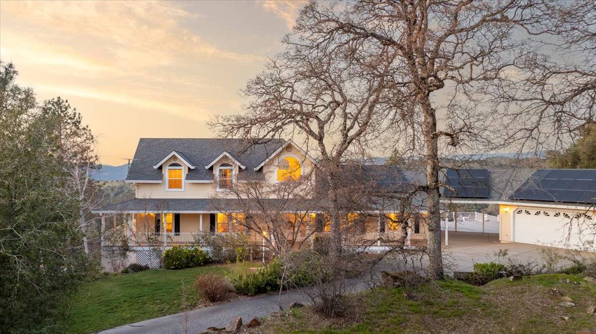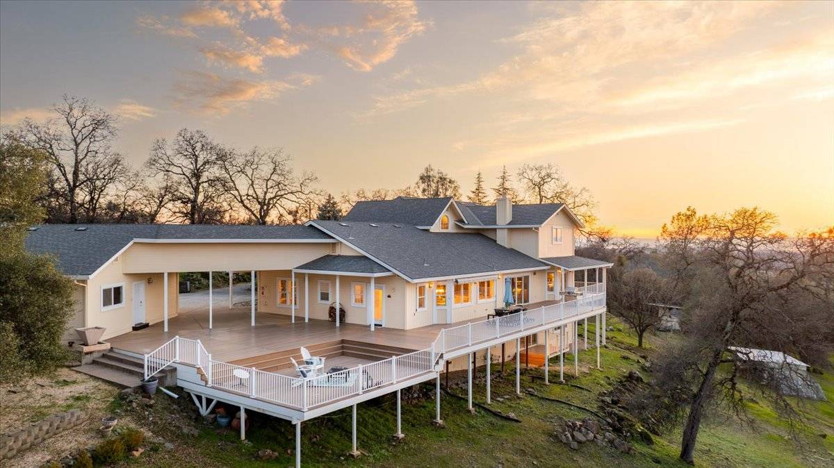 Impressive Gated Estate: Nestled within 20 private acres, this exquisite hilltop estate offers an unparalleled blend of elegance, natural beauty, and cutting-edge amenities. Modern features include a 60-panel solar system, 4 Tesla Powerwalls, Tesla charger, high-speed fiber internet wired throughout the home, and smart home technology. Sweeping views of Lake Wildwood, the Sierra Mountains, Sutter Buttes, and the Coastal Range, this home is a serene sanctuary. The spacious kitchen, featuring granite countertops, upgraded appliances, breakfast area, and a center island, flows into a cozy family room with panoramic vistas. Formal living and dining rooms, a large office, and an extra room/guest area provide abundant space, while the main-level primary suite offers a peaceful retreat with direct deck access. Enjoy breathtaking sunrises, sunsets, and starry nights from the expansive composite decking. A covered breezeway leads to an oversized 3-car garage and outdoor spaces with horse stalls, a round pen and fenced pastures to add to the charm. A cleared walking/riding trail to Deer Creek makes this property a rare gem. 1 Hr to Sac. International Airport, 90 Min to Lake Tahoe. Enjoy this peaceful country setting within minutes to shopping. Paved road access.