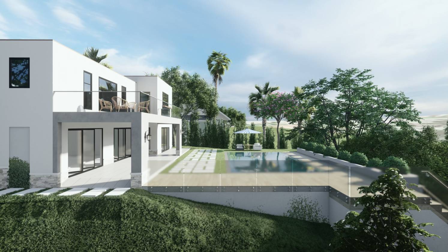 - Infinity-edge pool with panoramic hillside views