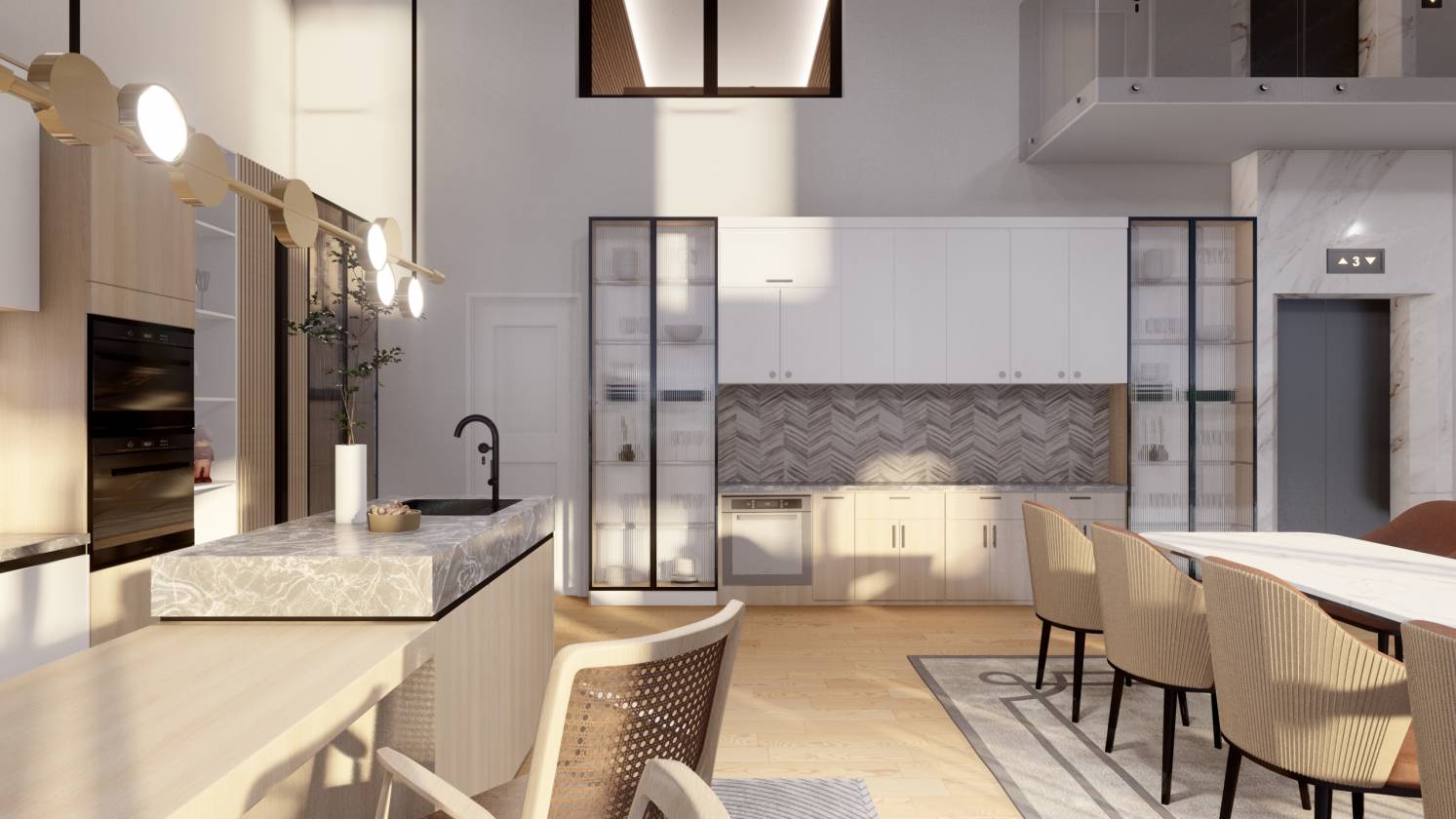 - Open-concept floorplan with modern, elegant design